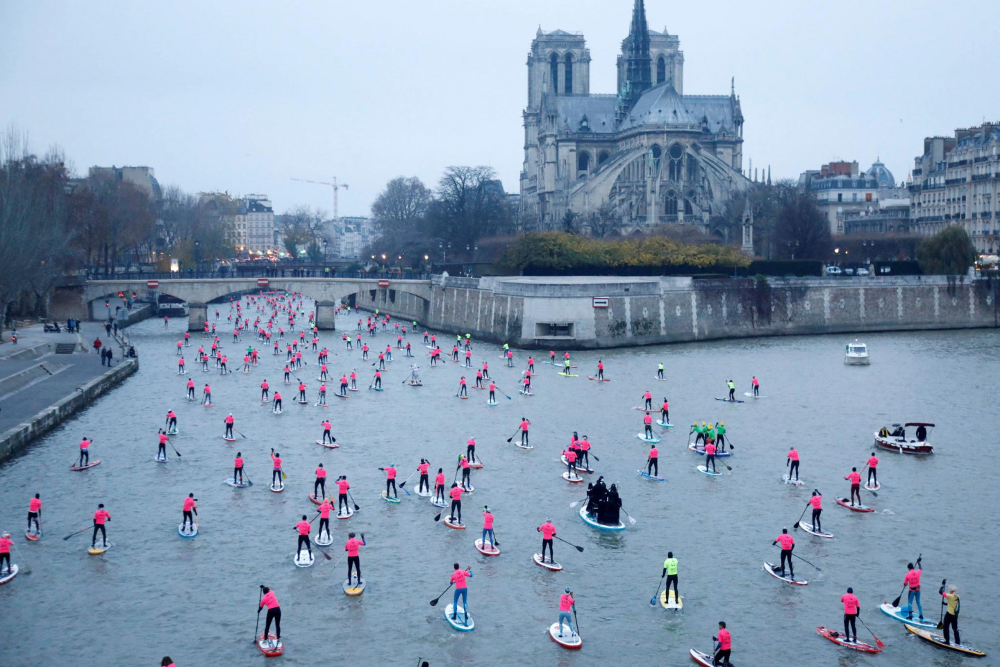 Svētdien, 3.decembrī, desmitiem amatieru un profesionāli supotāji piedalījušies "Nautic Sup Paris crossing" sacensības Parīzē.