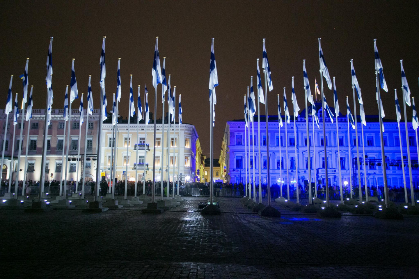 Somija šogad svin savu simtgadi. Daudzviet pasaules valstīs to slavenākās apskates vietas tiek iedegtas Somijas karoga krāsās. Arī Rīga.