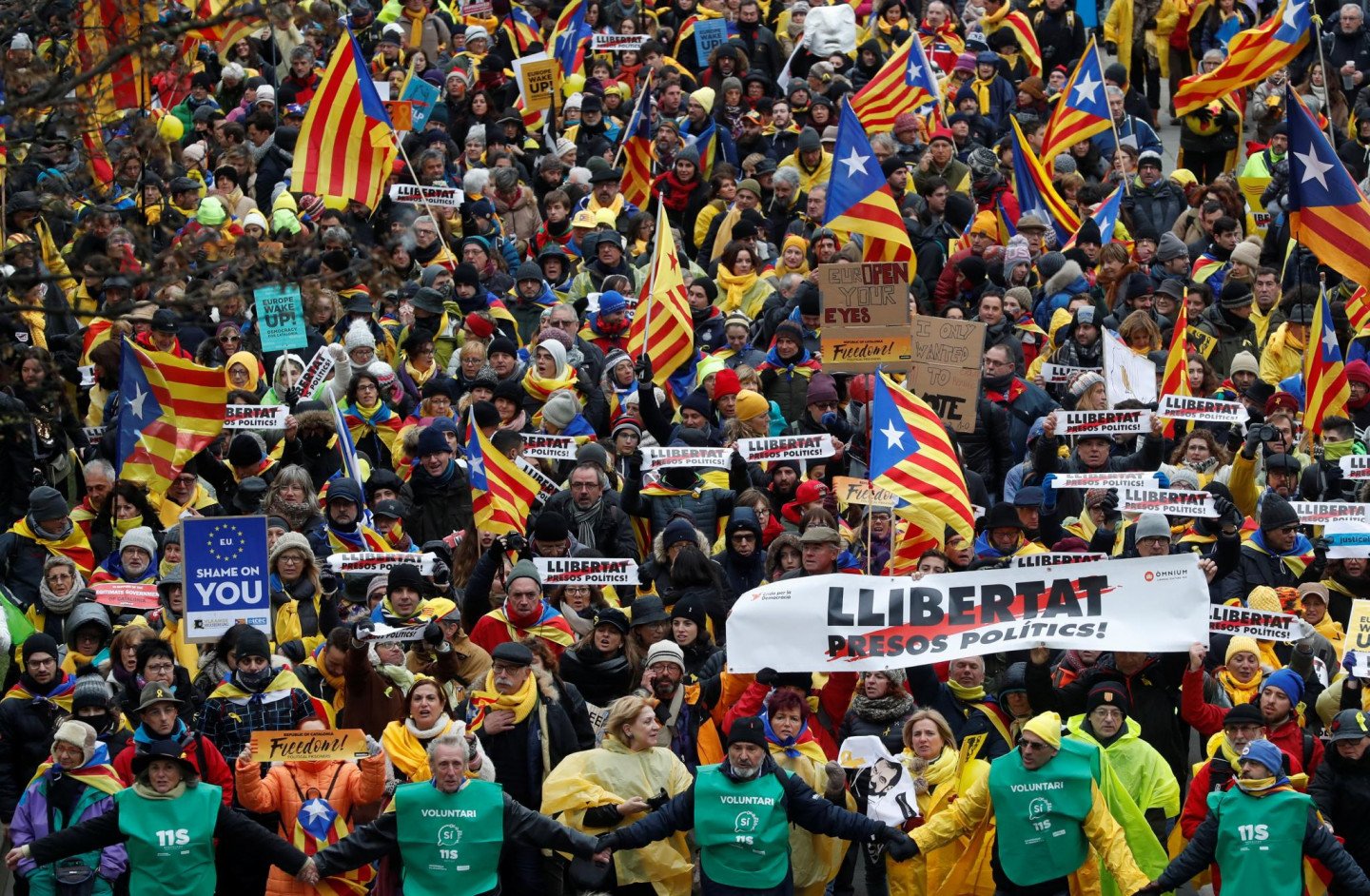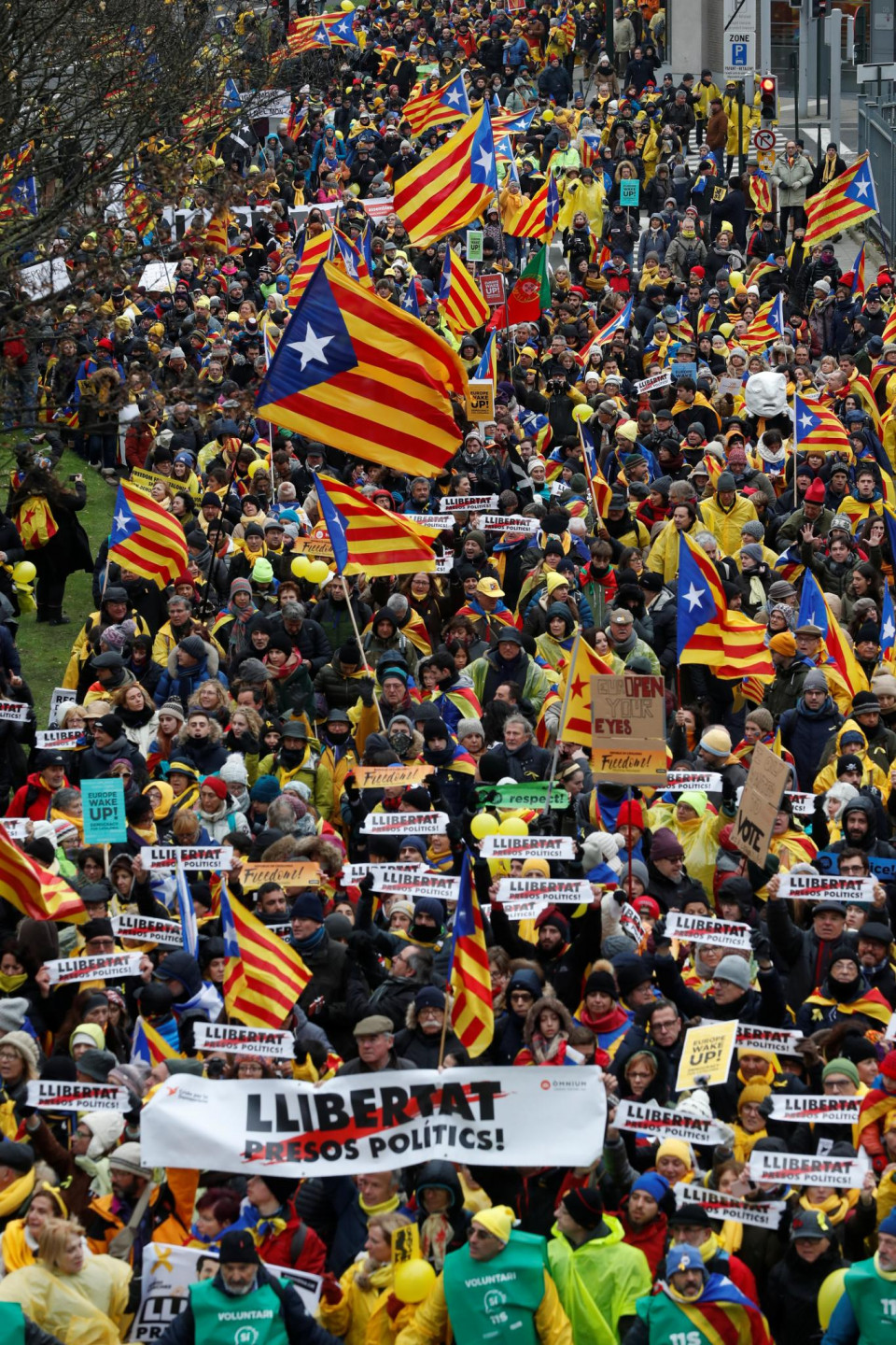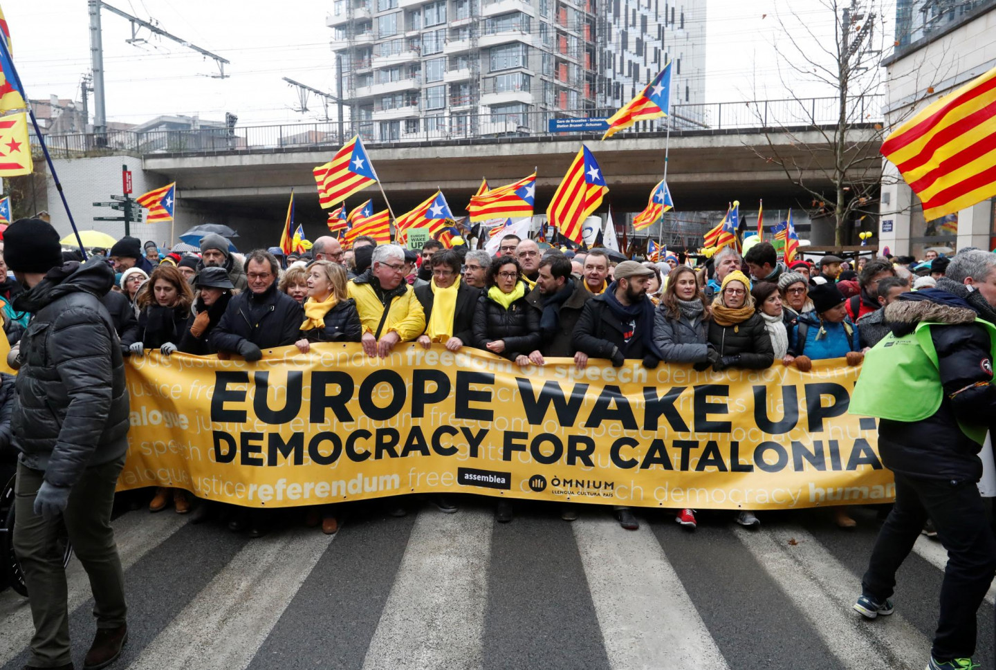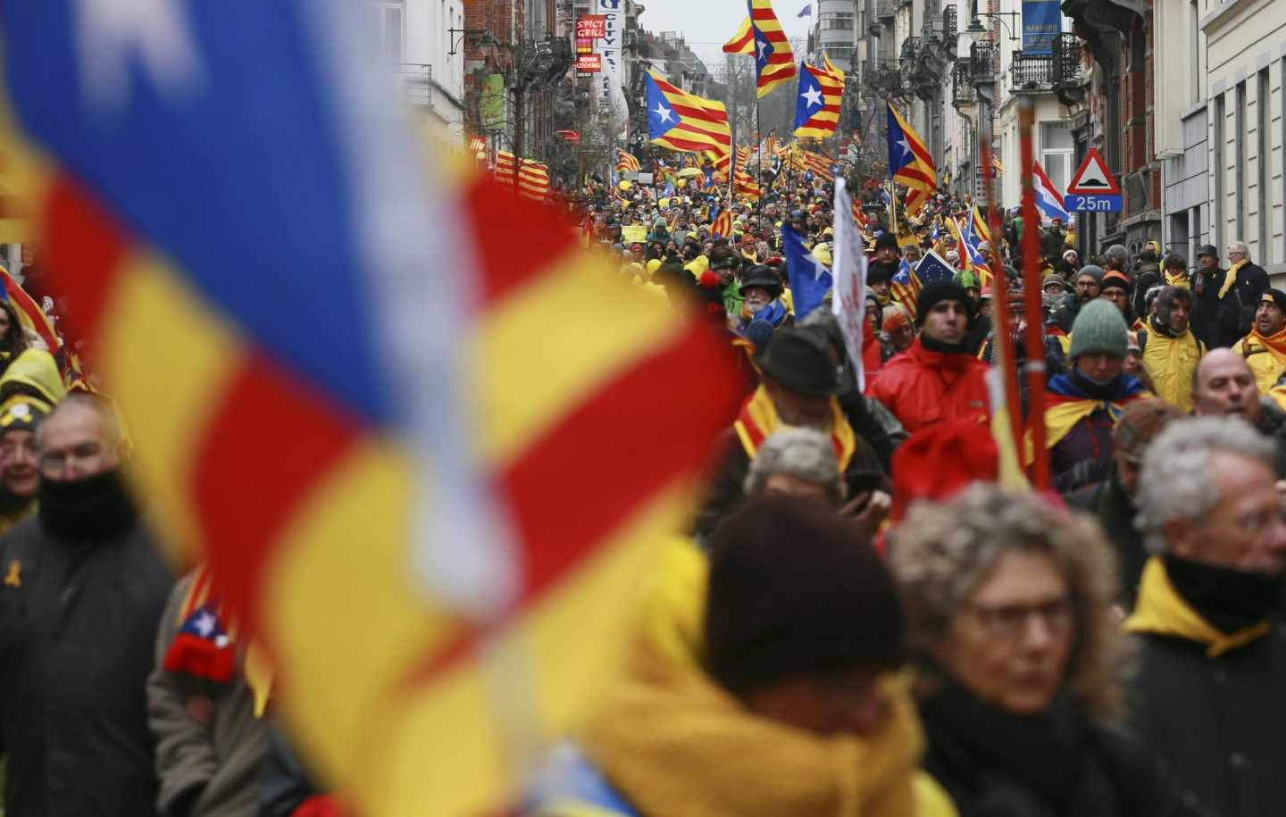 Briseles ielās iznākuši 45 000 Katalonijas atbalstītāju