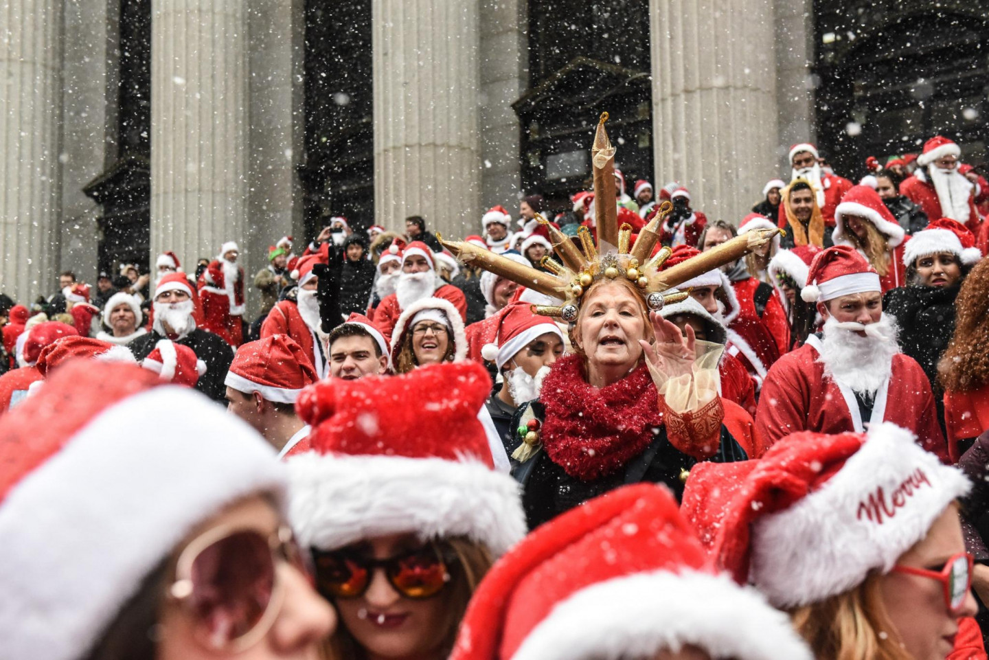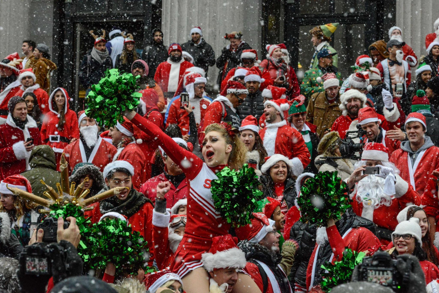 Sestdien, 9.decembrī, Ņujorkā noticis ikgadējais pasākums, kurā vienuviet pulcējās simtiem Ziemassvētku vecīšu.