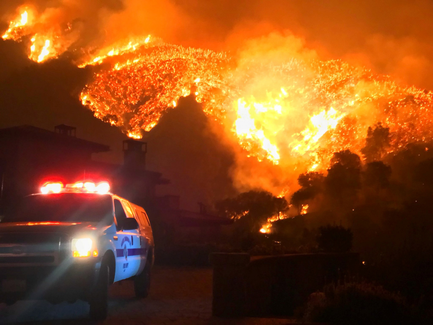 Kalifornijas savvaļas ugunsgrēks Tomass aizvadītajā diennaktī skāris Santa Barbaru.