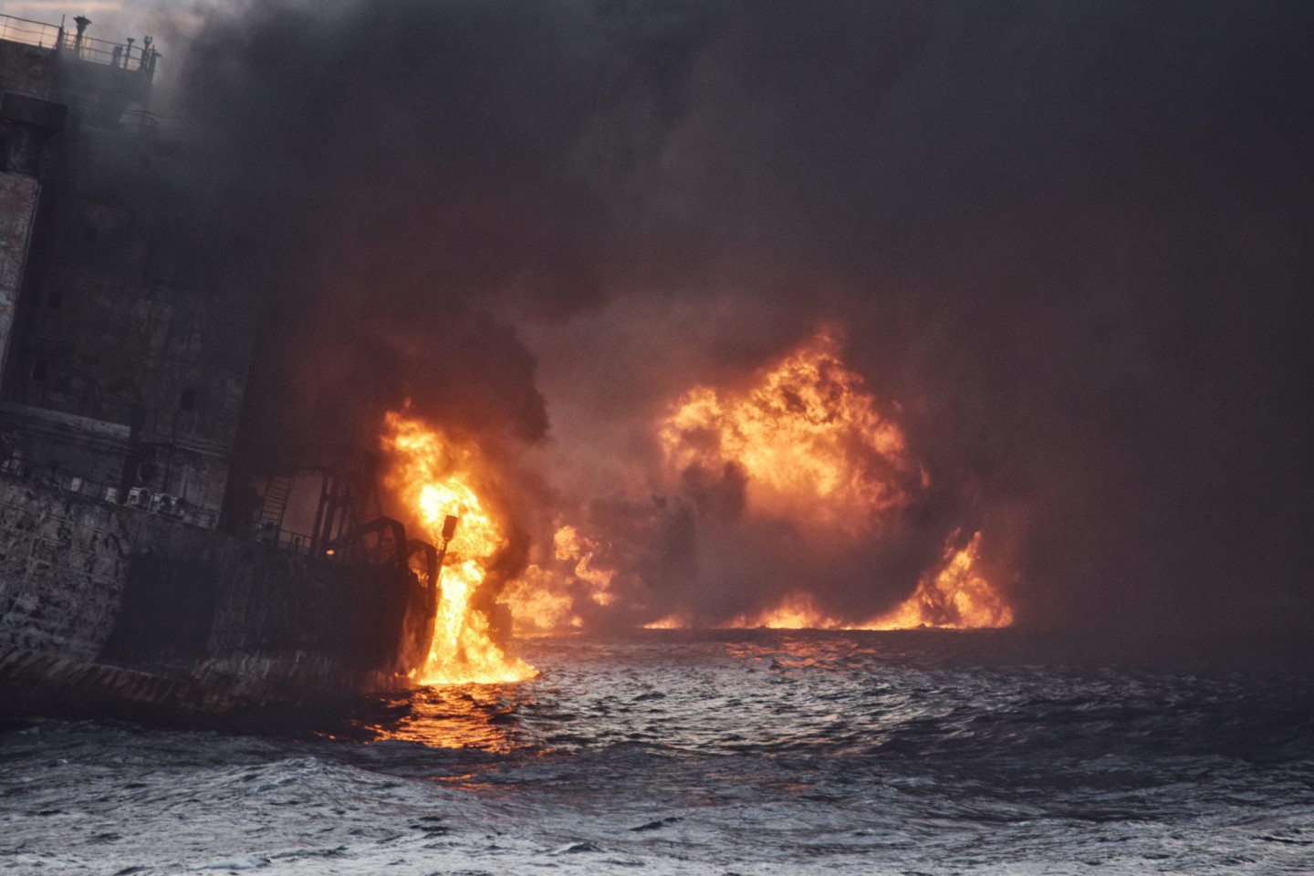 Austrumķīnas jūrā vietā, kur nogrima tankkuģis "Sanchi", konstatēti vairāki naftas plankumi, kas ir daudz lielāki, nekā sākotnēji domāts, paziņojušas Ķīnas varasiestādes. "Sanchi" nogrima svētdien pēc tam, kad aptuveni nedēļu bija dedzis pēc sadursmes ar preču kuģi "Crystal" 6.janvārī. Uz tankkuģa atradās 32 komandas locekļi - 30 Irānas un divi Bangladešas pilsoņi. Pēc avārijas izdevās atrast tikai trīs bojāgājušo līķus. Pēc "Sanchi" nogrimšanas liels naftas pleķis izdega, taču izveidojušies jauni. Tankkuģa radītais piesārņojums videi vēl nav novērtēts. Sākotnēji mediji ziņoja, ka "Sanchi" transportēja naftu, taču kuģis pārvadāja 136 000 tonnu viegli uzliesmojoša dabasgāzes kondensāta, kas ir ļoti toksisks, bet ātri sadeg vai iztvaiko. Taču, nokļūstot zem ūdens, tas var nodarīt nopietnu kaitējumu jūras videi.