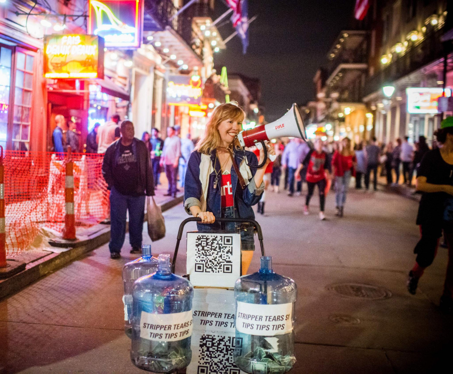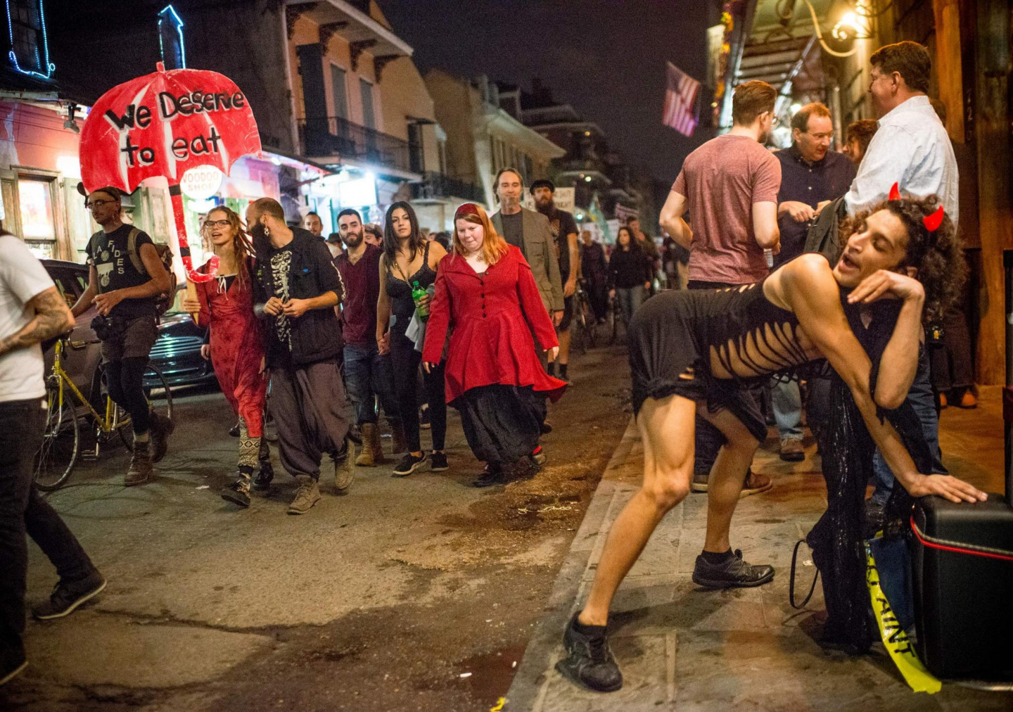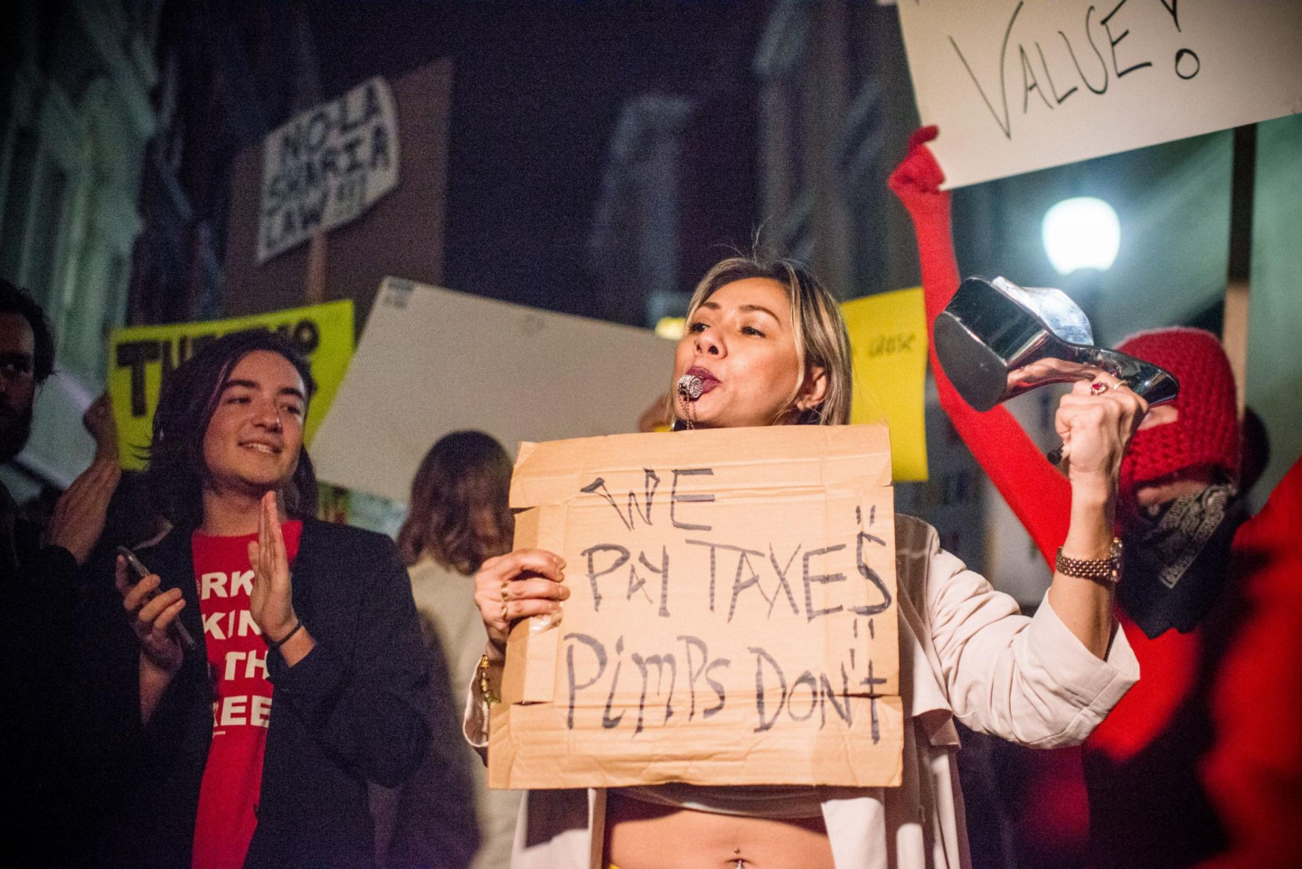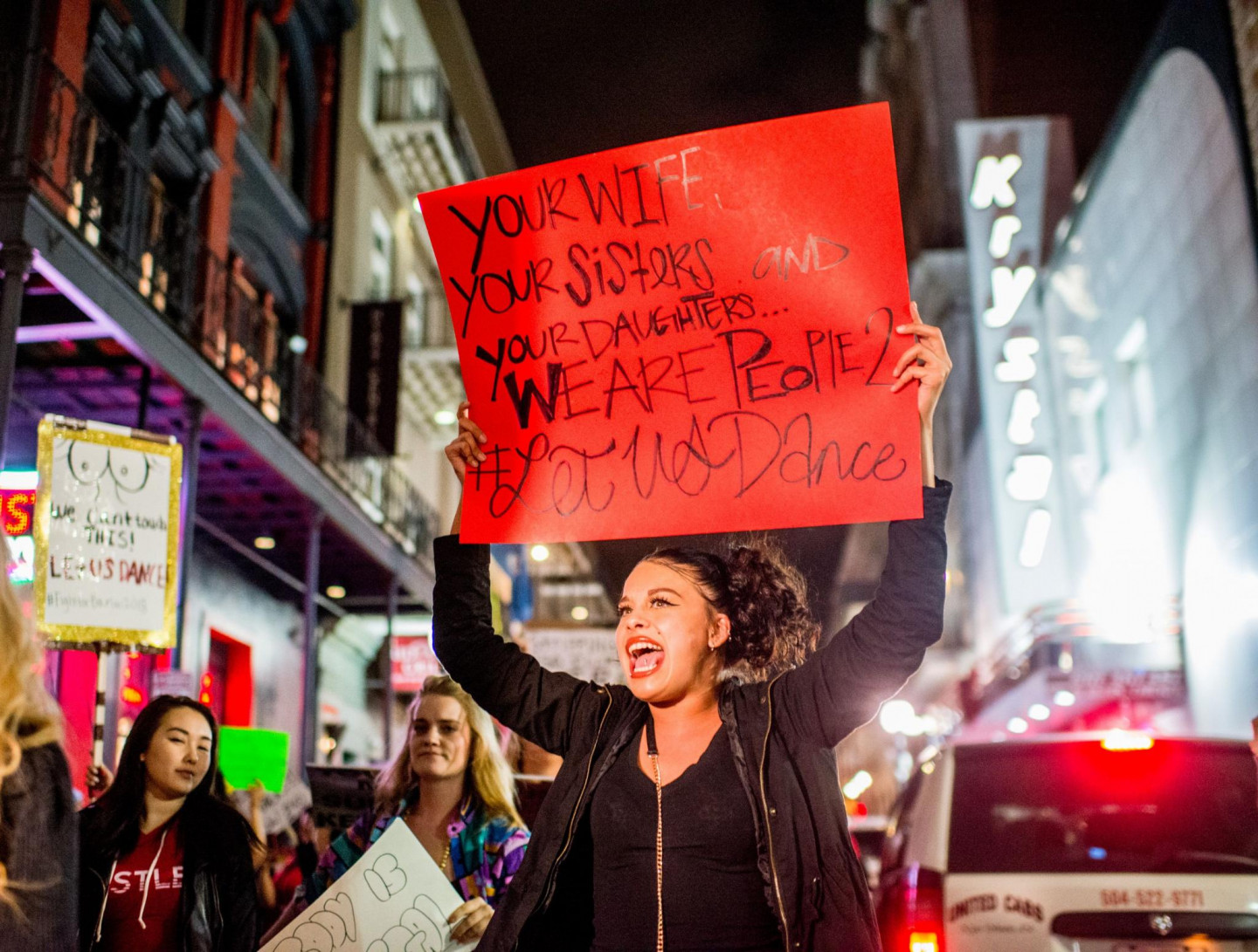 "Mēs protestējam, jo viņi mēģina slēgt lielāko daļu klubu Burbonu ielā, lai padarītu to par kaut kādu Disnejlendas kruīza kuģa ostu," sacīja viena no eksotiskajām dejotājām, kura bija ieradusies uz demonstrāciju.
