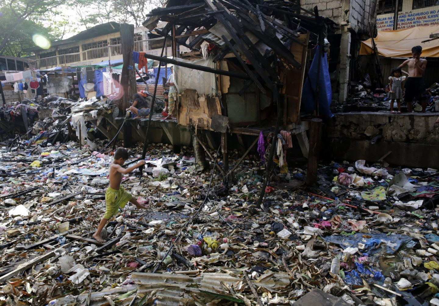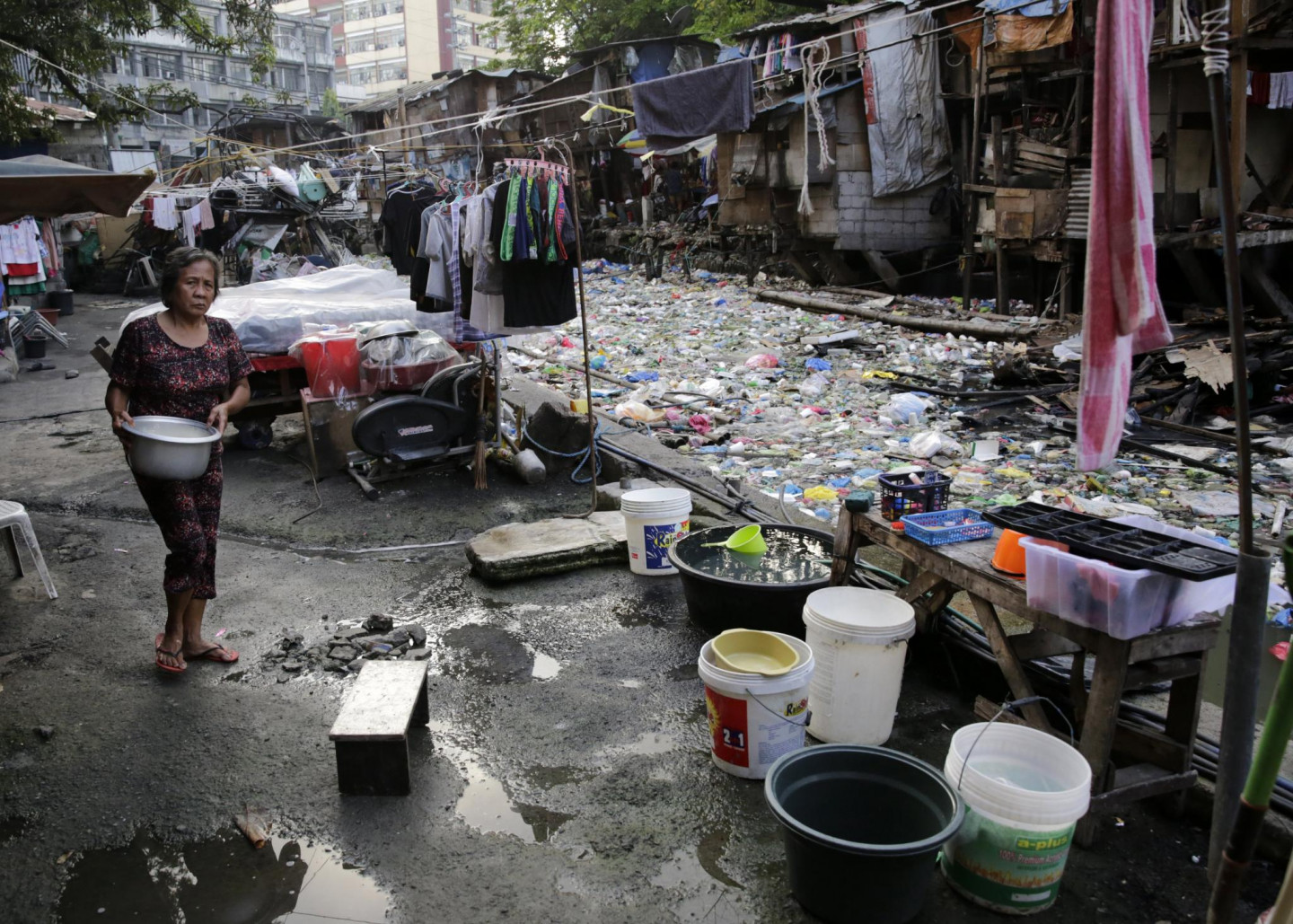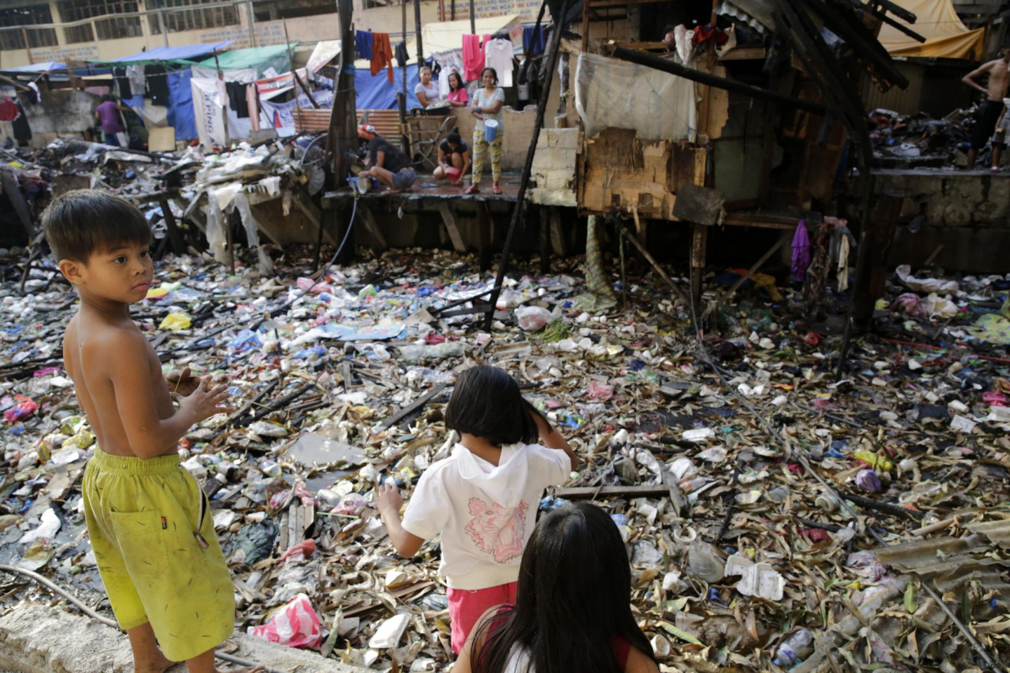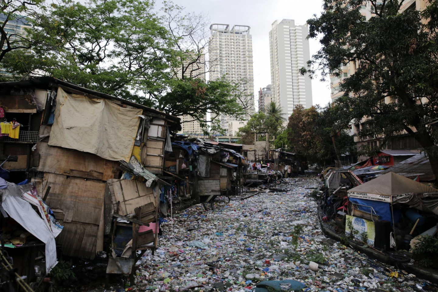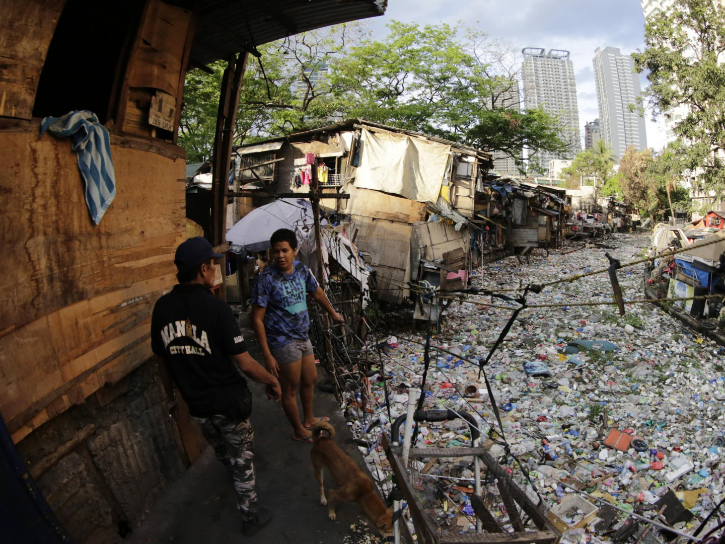 Filipīnu galvaspilsētā Manilā turpat zem augstceltnēm plūst kanāls, kas pildīts ar atkritumiem.