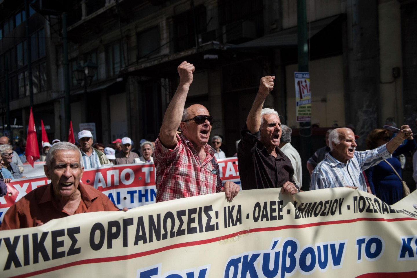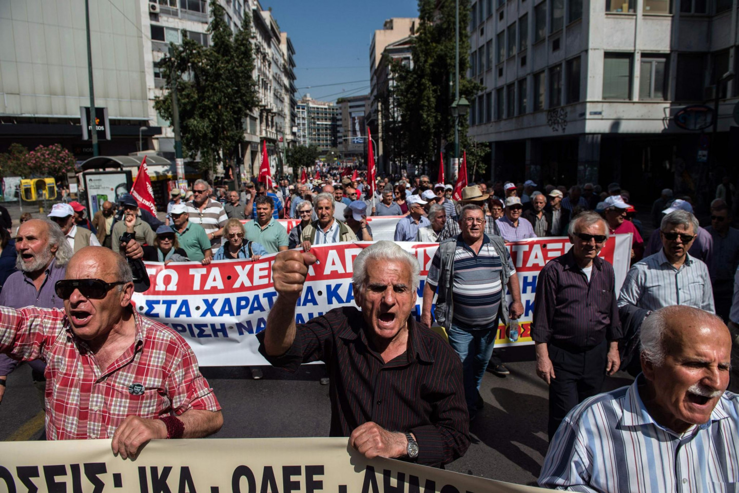 Tūkstošiem cilvēku trešdien izgājuši Atēnu ielās, lai protestētu pret valdības īstenotajiem taupības pasākumiem, kas saistīti ar starptautiskajiem aizdevumiem, tostarp iespējamo pensiju samazināšanu un personāla finansējuma samazināšanu valsts slimnīcām. Atēnās noorganizētas vismaz trīs demonstrācijas pie parlamenta, Finanšu ministrijas un Nodarbinātības ministrijas. Streiko arī valsts slimnīcu darbinieki, pieprasot lielāku finansējumu veselības aprūpei un protestējot pret problēmām, ar ko saskaras slimnīcas. Protestē arī Valsts Enerģētikas korporācijas darbinieki, iebilstot pret gaidāmo brūnogļu spēkstaciju pārdošanu. Viņi nobēra uz parlamenta kāpnēm brūnogļu maisus. Atēnu ielās izgājuši arī pensionāri, protestējot pret pensiju samazināšanu.