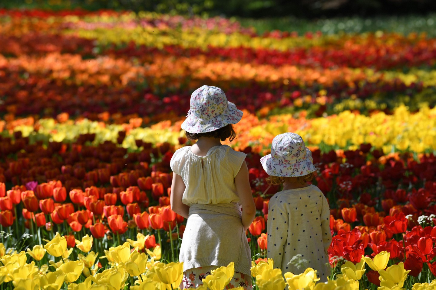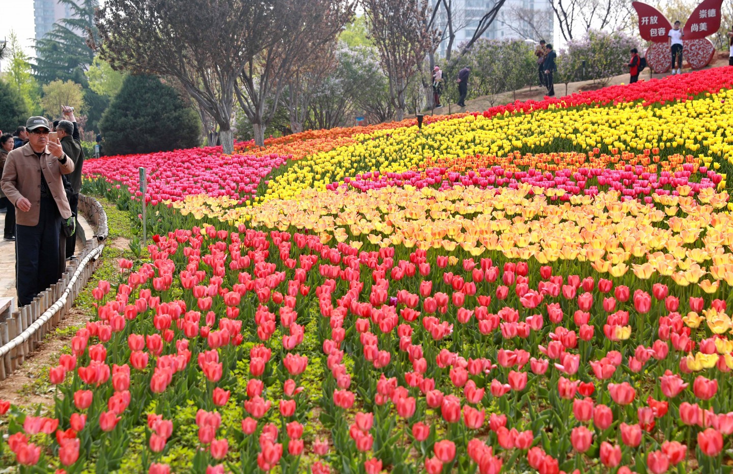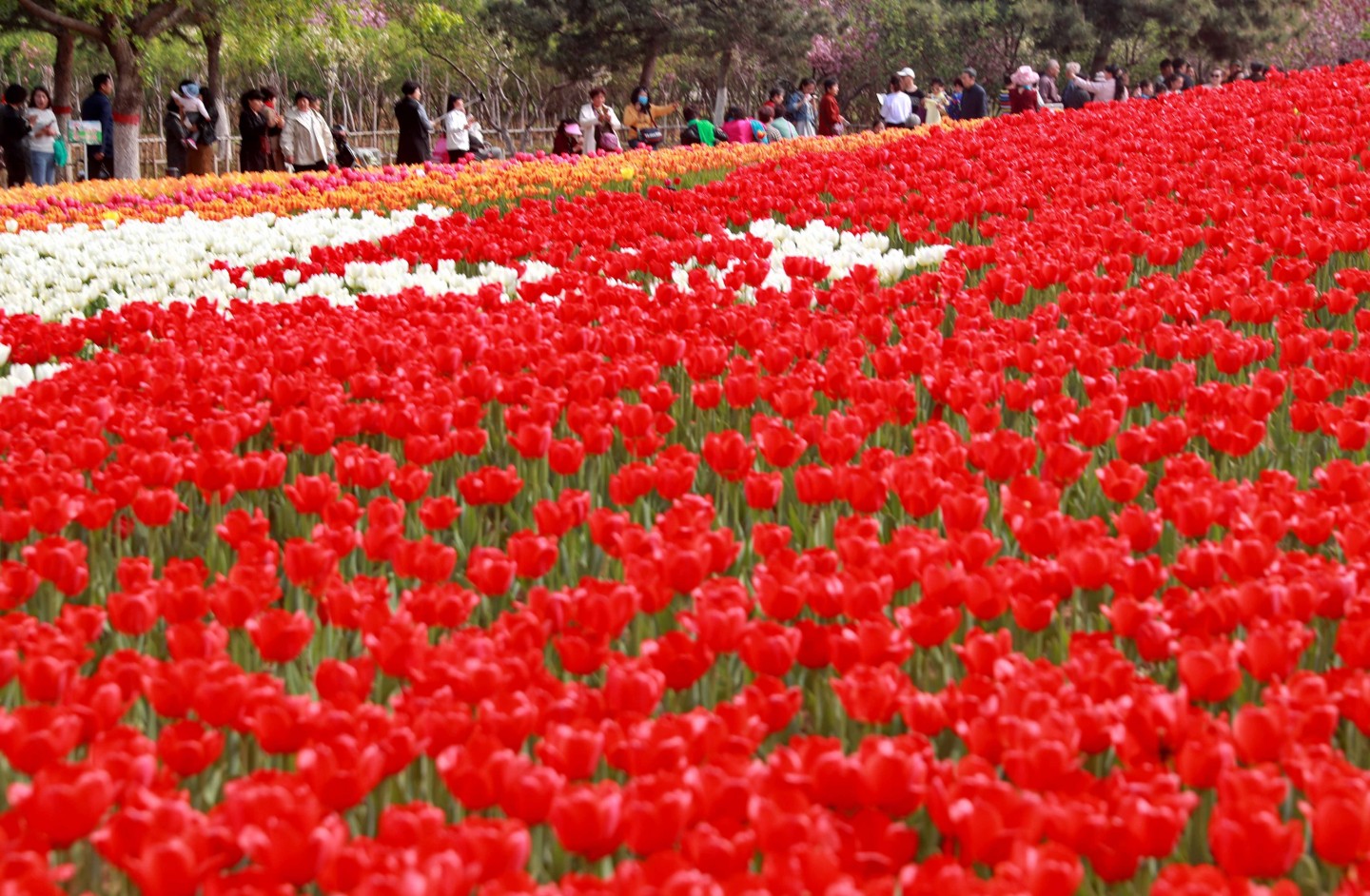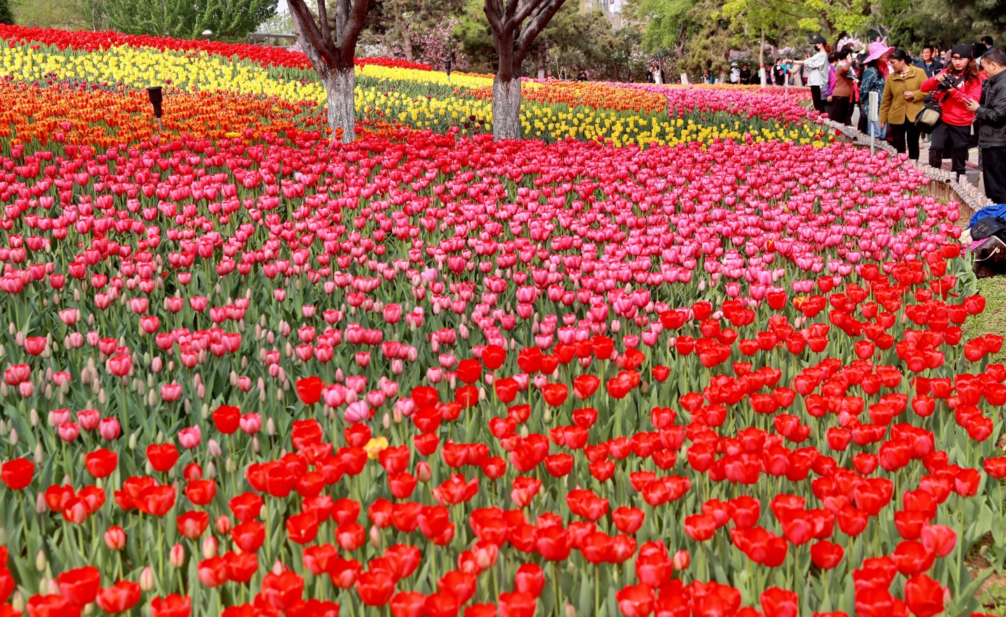 Šajā nedēļas nogalē vairāki desmiti cilvēku steiguši iemūžināt, kā izskatās krāšņie tulpju lauki Ķīnā.
