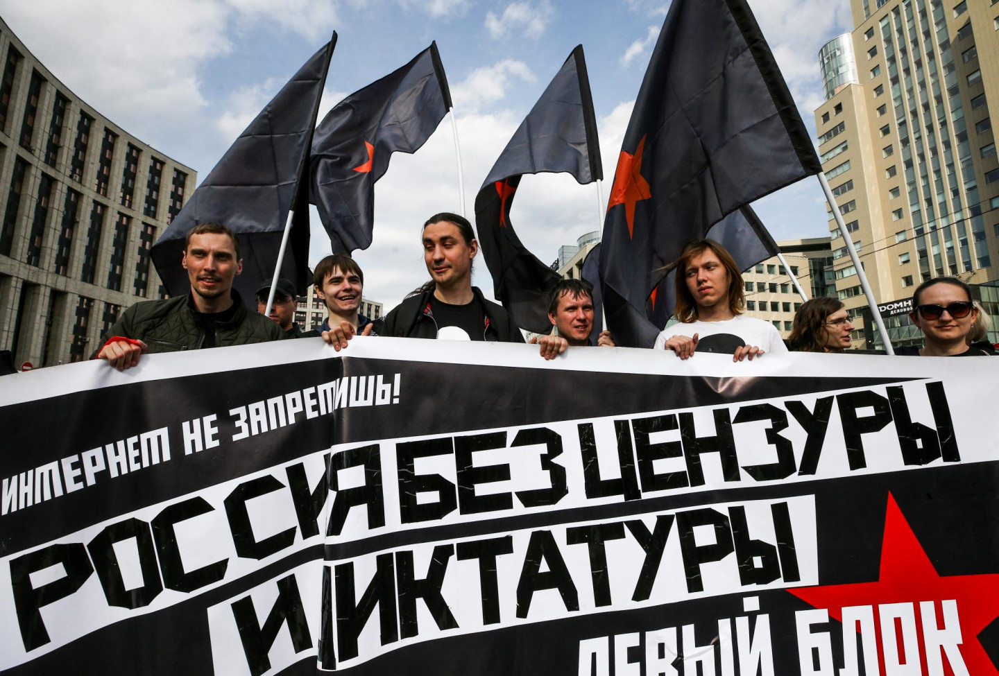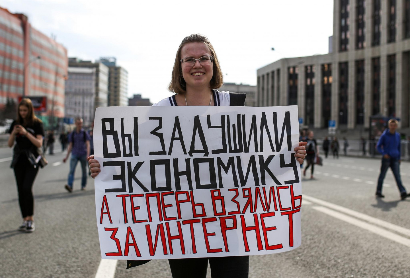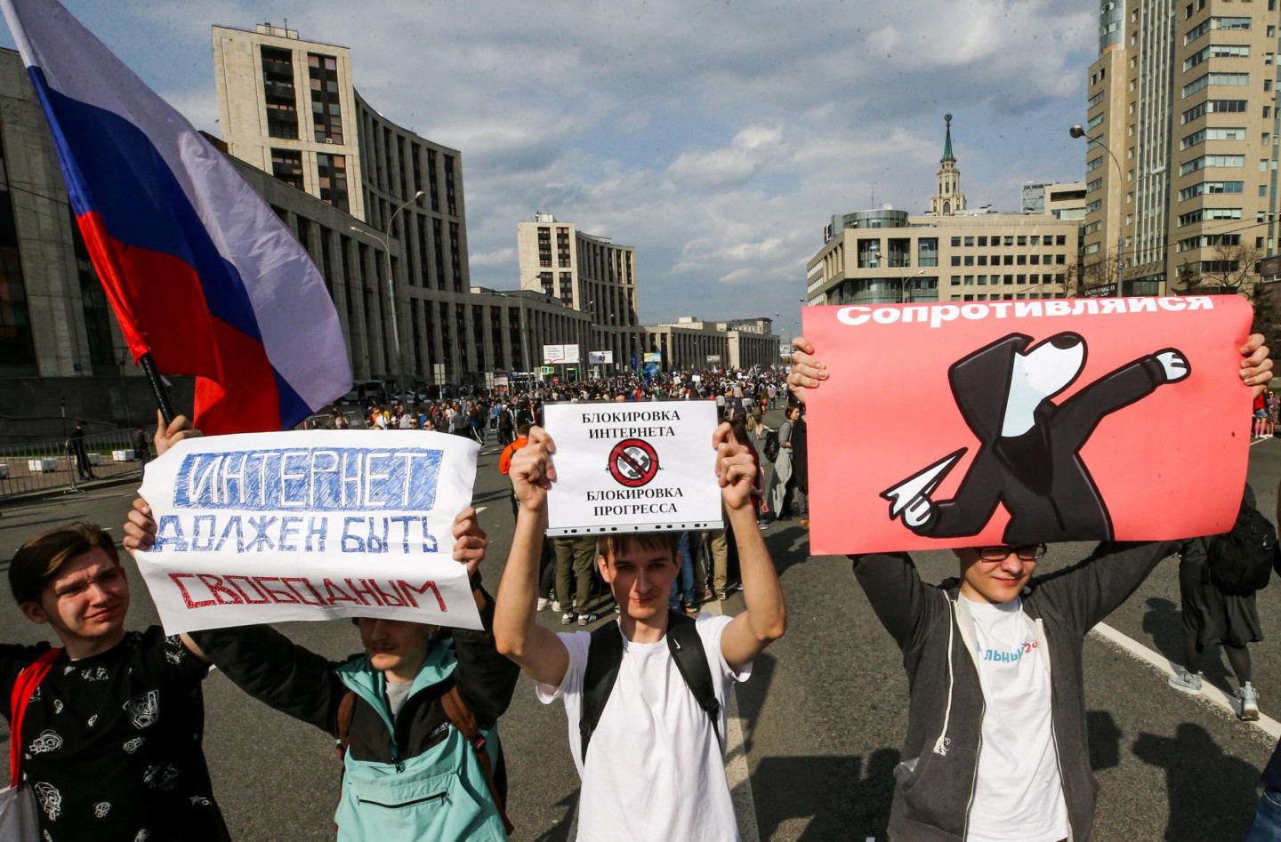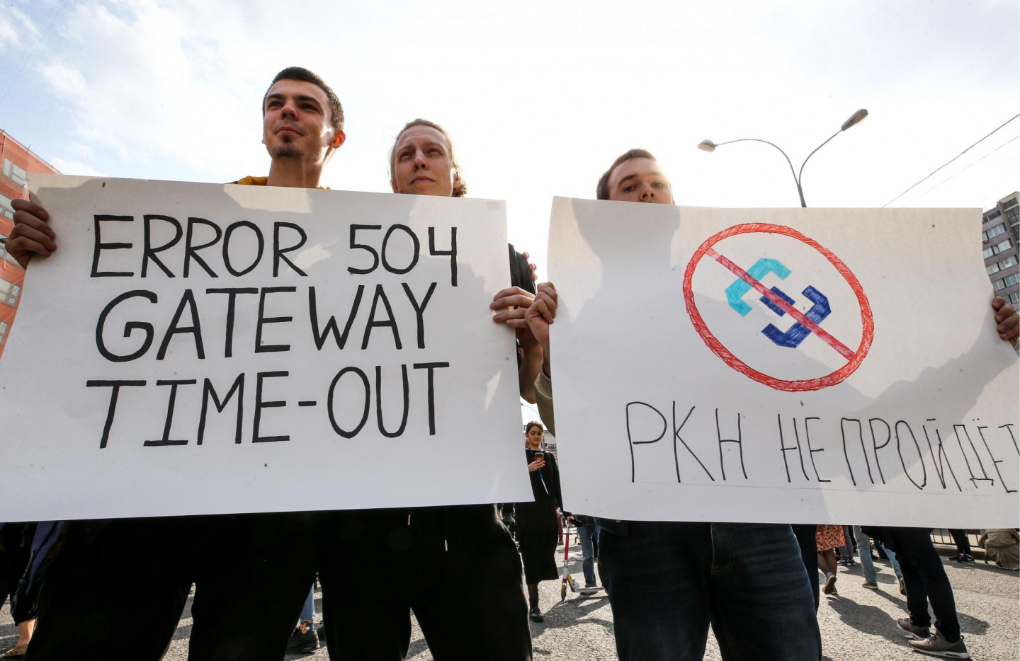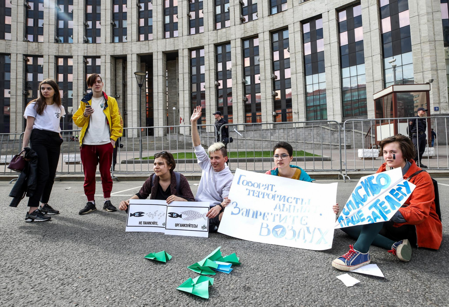 Tūkstošiem cilvēku pirmdien pulcējās mītiņā Maskavā, lai paustu atbalstu interneta brīvībai un protestētu pret Krievijas varasiestāžu centieniem apturēt populārās ziņapmaiņas lietotnes "Telegram" darbību. Mītiņš pulcēja neparasti lielu dalībnieku skaitu - vairāk nekā 10 000. Daudziem bija rokās plakāti, citi gaisā lidināja papīra lidmašīnas, kas ir "Telegram" simbols. Daudzi pieprasīja Krievijas prezidenta Vladimira Putina demisiju. Mītiņa dalībniekus uzrunāja opozīcijas līderis Aleksejs Navaļnijs. Politiķis nosodīja varasiestādes un uzraudzības dienestus, kas nobloķējuši "Telegram". Navaļnijs paziņoja, ka policija aizliegusi viņam aicināt cilvēkus uz varasiestāžu neatļauto mītiņu Maskavas centrā 5.maijā, un, izsakoties sarkastiski, viņš klātesošos "neaicināja" uz šo protesta akciju. Aktīvisti un IT biznesa pārstāvji, kas uzstājās mītiņā, pauda nosodījumu "Telegram" bloķēšanai, pauda atbalstu interneta brīvībai un vārda brīvībai. Skanēja arī tādi saukļi kā "Krievija būs brīva!" un "Nost ar caru!". Krievijas federālais mediju uzraudzības dienests "Roskomnadzor" 16.aprīlī sāka mēģinājumus bloķēt "Telegram" un kopš tā laika interneta lietotāji Krievijā ziņo par ievērojamiem traucējumiem tīmekļa darbībā. Maskavas Tagankas rajona tiesa šomēnes deva rīkojumu bloķēt "Telegram", jo tās uzturētāji atteikušies nodot Federālajam Drošības dienestam (FDD) lietotāju privātās sarakstes atšifrēšanas atslēgas. Bezmaksas ziņapmaiņas lietotne, kas ļauj lietotājiem apmainīties ar rakstiskiem vēstījumiem, fotogrāfijām un videoierakstiem, kopš izveidošanas 2013.gadā piesaistījusi vairāk nekā 200 miljonus cilvēku.