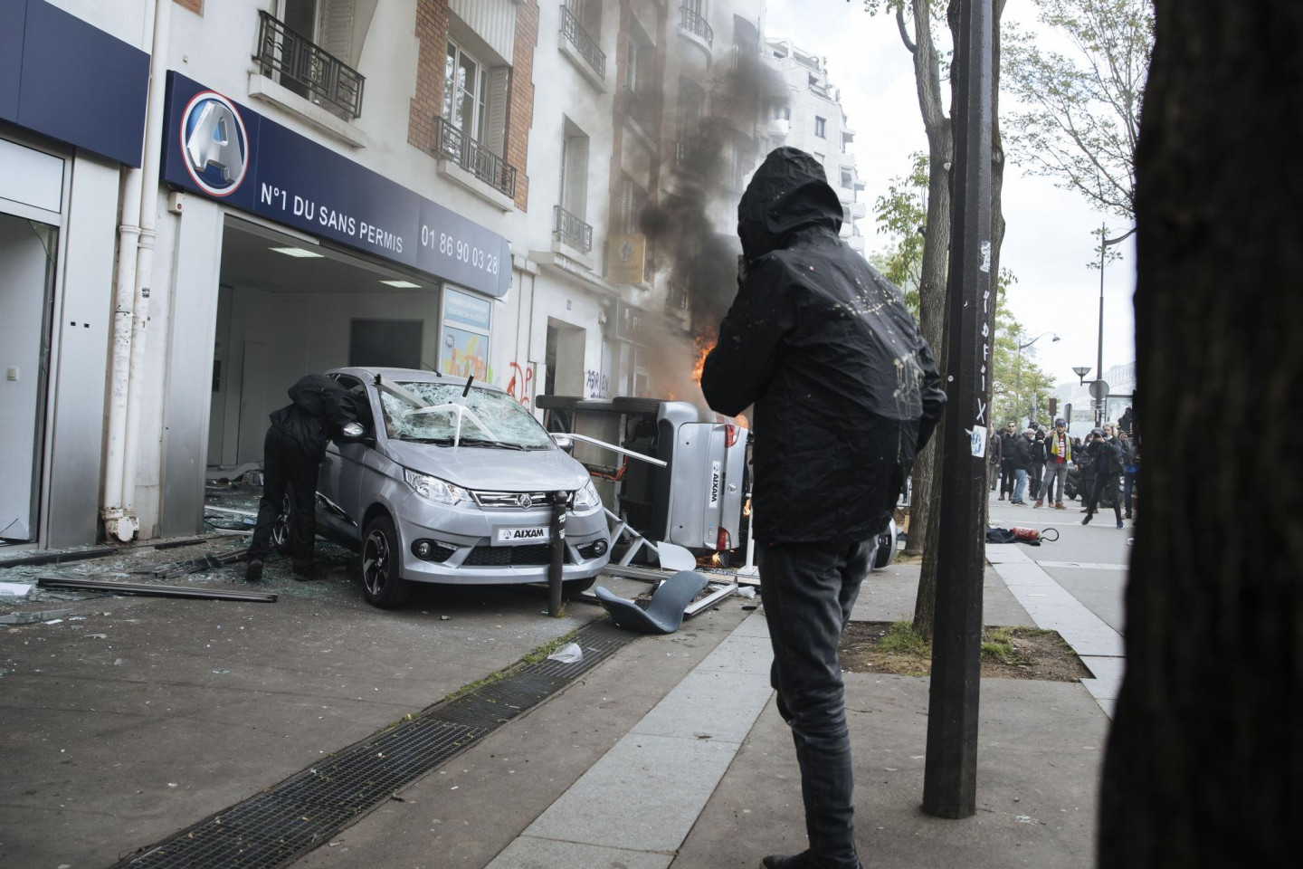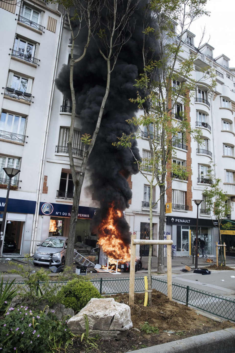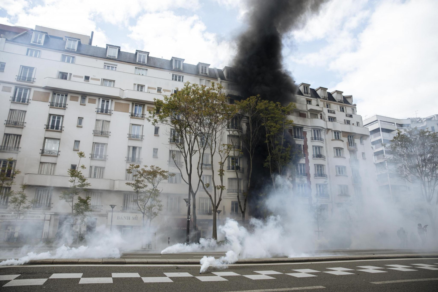 Parīzes centrā otrdien tika aizturēti gandrīz 300 cilvēku 1.maija demonstrācijā, kuras laikā jaunieši kapucēs aizdedzināja "McDonald's" restorānu un vairākas automašīnas, protestējot pret Francijas prezidenta Emanuela Makrona reformām valsts sektorā.Policija lietoja asaru gāzi un ūdens lielgabalu, lai izklīdinātu demonstrantus. Policija informēja, ka no tās 276 aizturētajiem demonstrantiem 102 palikuši apcietinājumā, un piebilda, ka nekārtībās "tika nodarīti postījumi 31 uzņēmumam, no kuriem divi tika aizdedzināti, kā arī tika aizdedzinātas sešas automašīnas un sabojātas vēl 10".