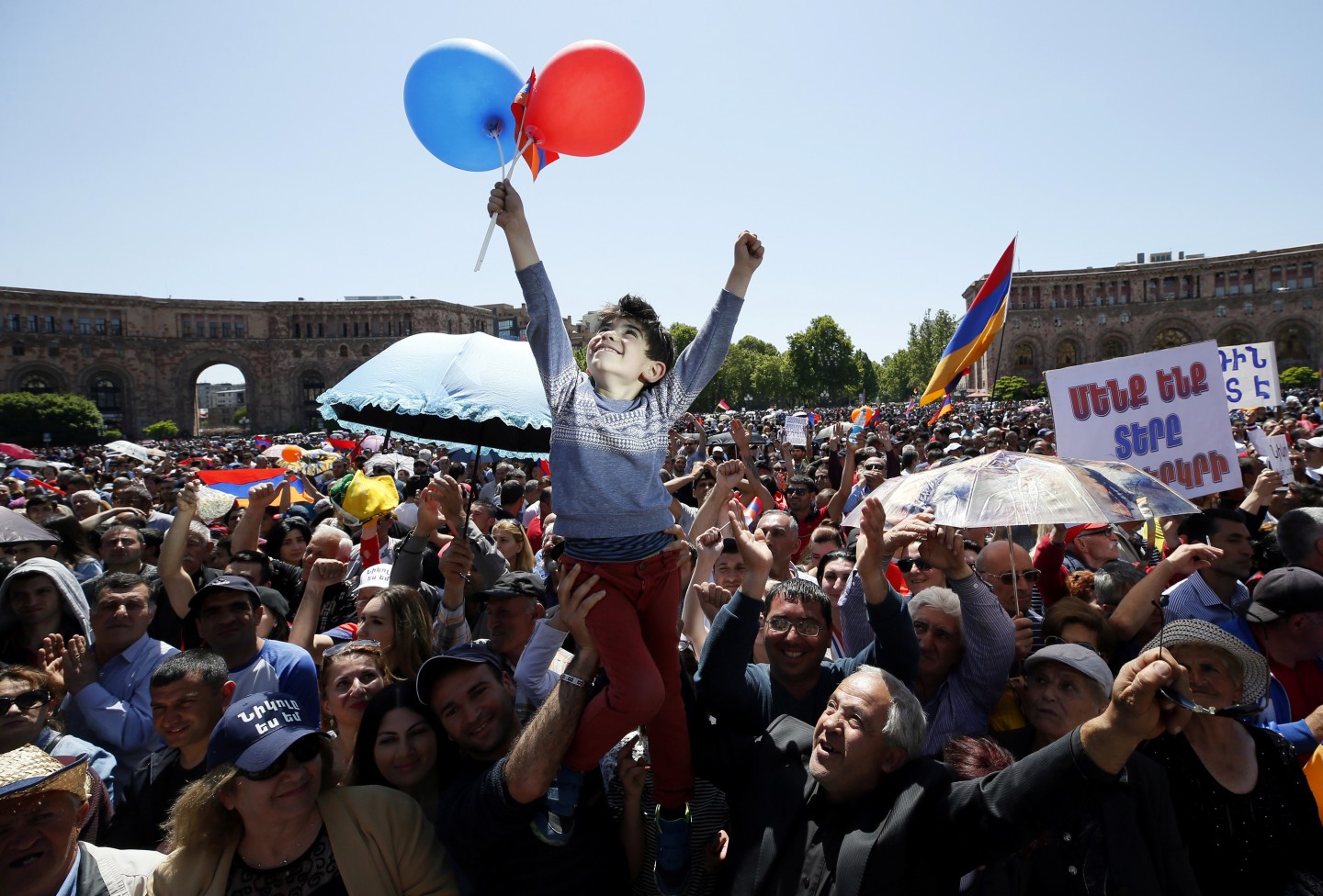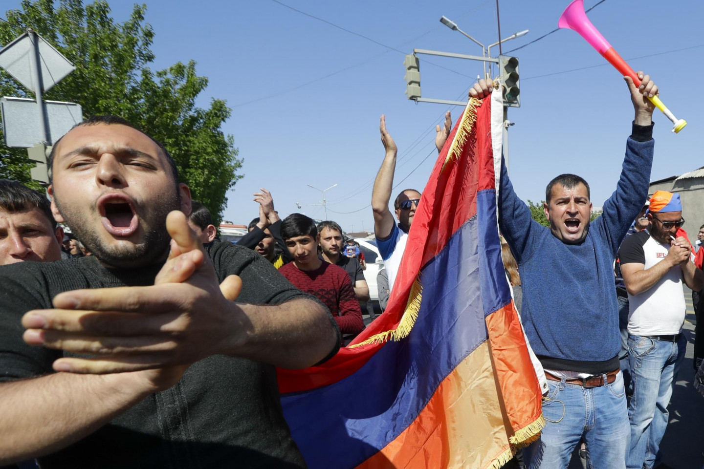 Desmitiem tūkstoši cilvēku trešdien izgājuši Erevānas ielās, paužot neapmierinātību ar to, ka Armēnijas parlaments neapstiprināja opozīcijas līderi Nikolu Pašinjanu premjerministra amatā. Protestētāji, tostarp daudzi pensionāri un mājsaimnieces, paralizējuši satiksmi teju visā pilsētā. Amatpersonas ziņo, ka traucēta arī piepilsētas vilcienu satiksme un nobloķēts ceļš, kas saista Erevānu ar lidostu. Slēgti arī daudzi veikali. Protestus izraisījis Armēnijas parlamenta otrdienas balsojums, kurā valdošās Republikāņu partijas atbalsta trūkuma dēļ Pašinjans netika apstiprināts premjerministra amatā. Opozīcijas atbalstītāji solījuši turpināt protestus tik ilgi, cik būs nepieciešams, lai panāktu valdošās elites gāšanu un Pašinjana apstiprināšanu premjera amatā.