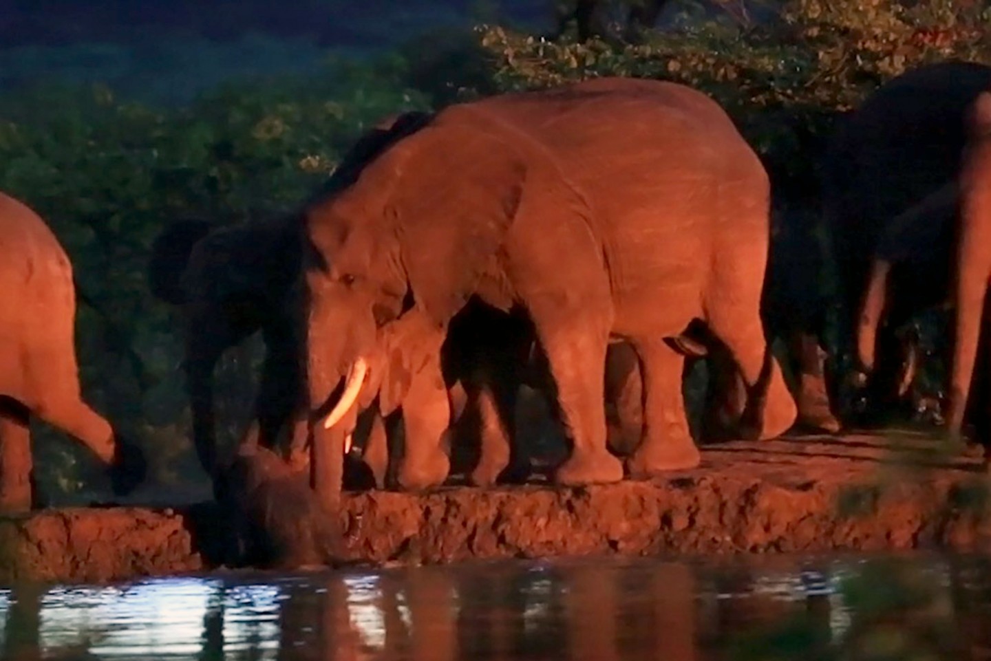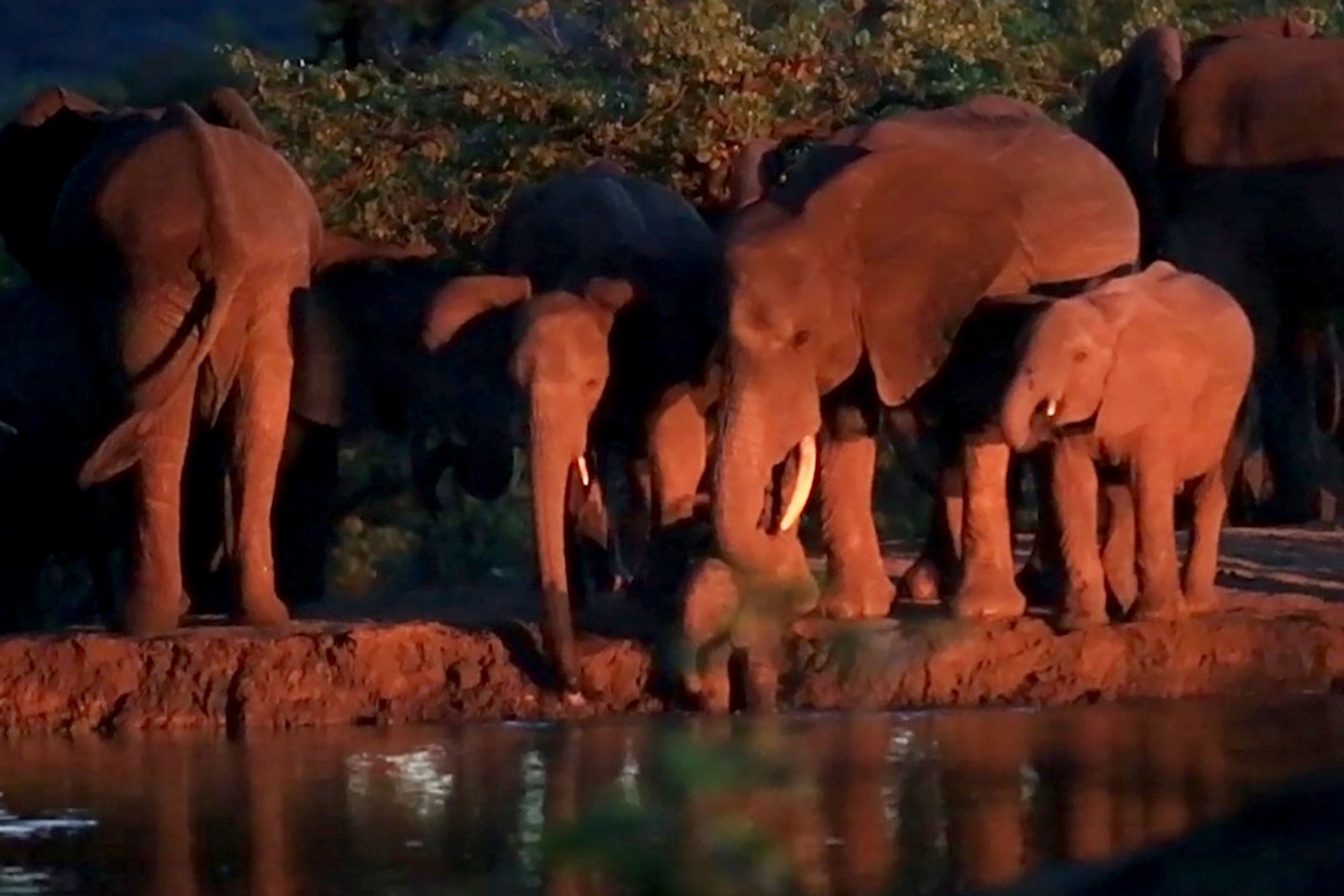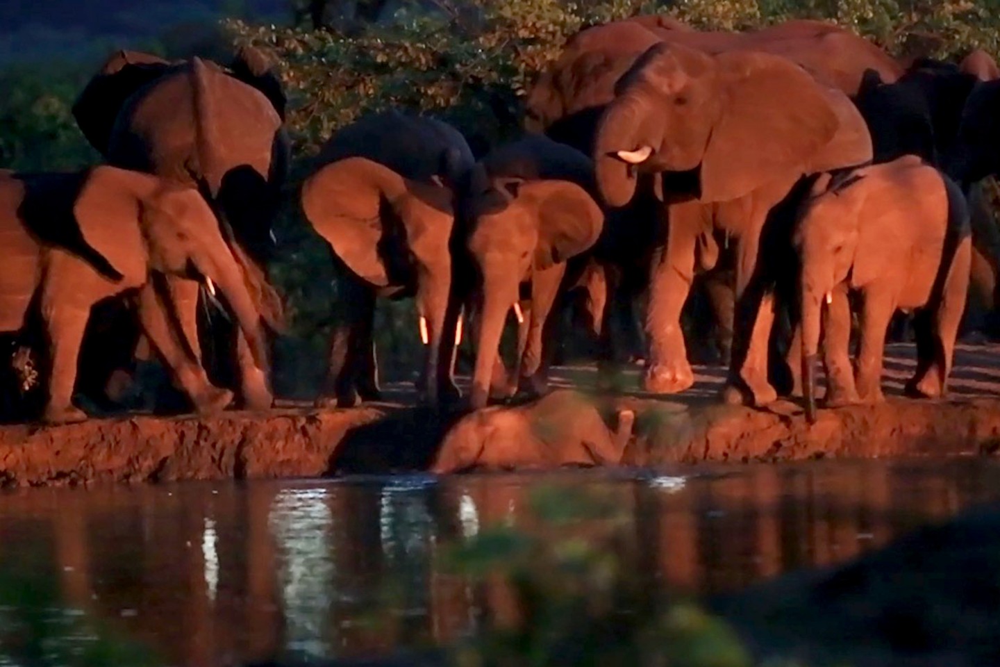 Nacionālajā parkā Dienvidāfrikā fotogrāfiem izdevies iemūžināt, kā vairāki pieauguši ziloņi glābuši mazu upē iekritušu zilonēnu.