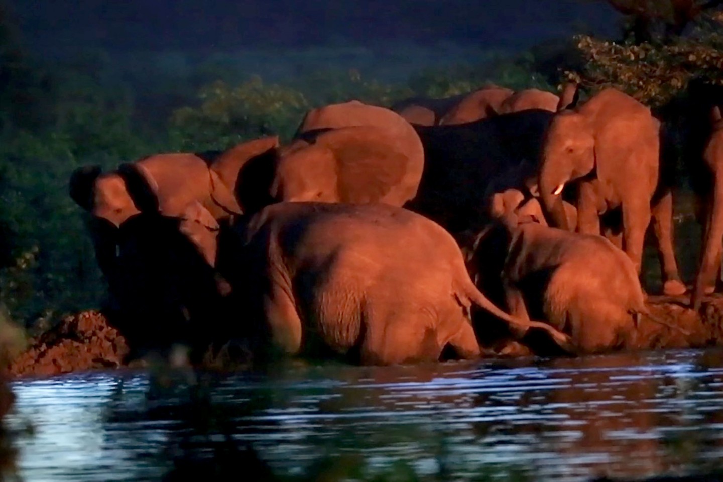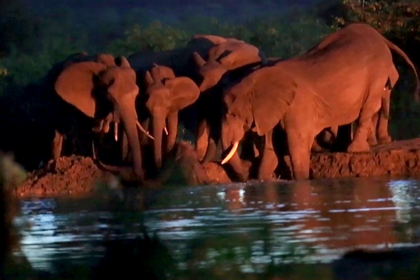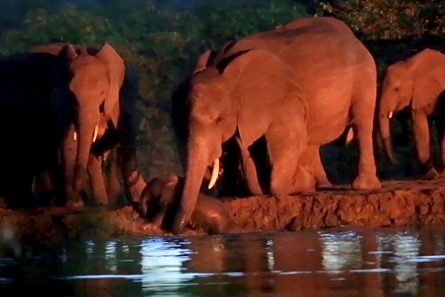 Nacionālajā parkā Dienvidāfrikā fotogrāfiem izdevies iemūžināt, kā vairāki pieauguši ziloņi glābuši mazu upē iekritušu zilonēnu.
