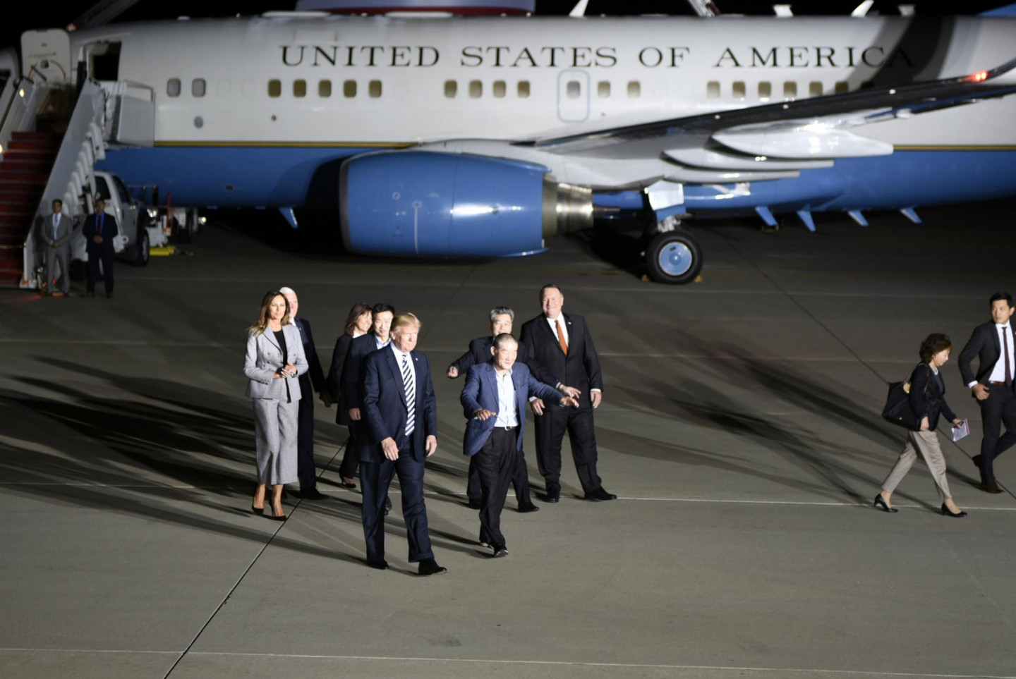 Kā iepriekš ziņots, trīs ASV pilsoņi, kas līdz šim atradās ieslodzījumā Ziemeļkorejā, ir atbrīvoti un kopā ar valsts sekretāru Maiku Pompeo atstāja komunistu pārvaldīto valsti. ASV prezidents Donalds Tramps ar sievu Melāniju sagaidīja atbrīvotos ASV pilsoņus.