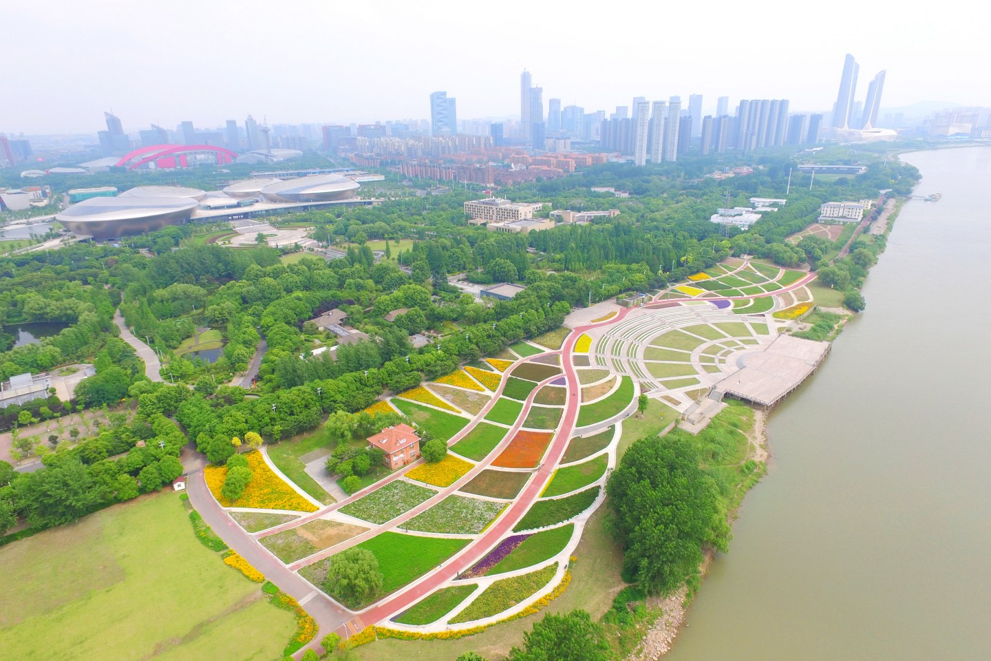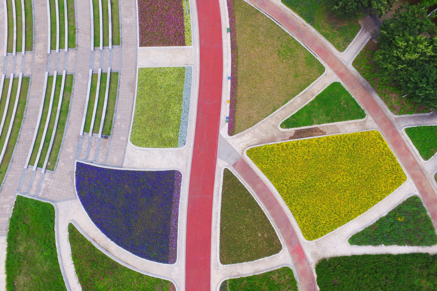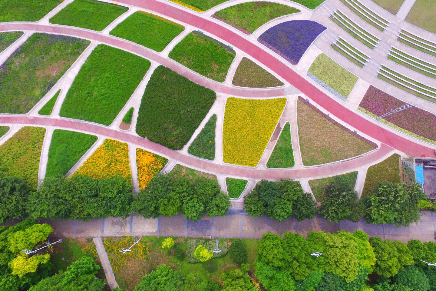 Naņdzjinas pilsētā Ķīnā radīts skaists parks, kur ziedi izkārtoti brīnišķīgos rakstos.