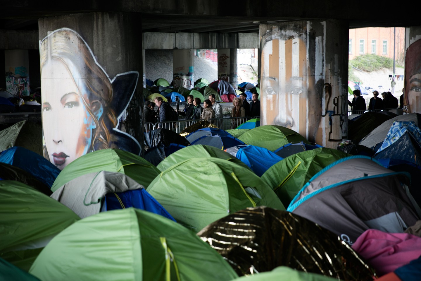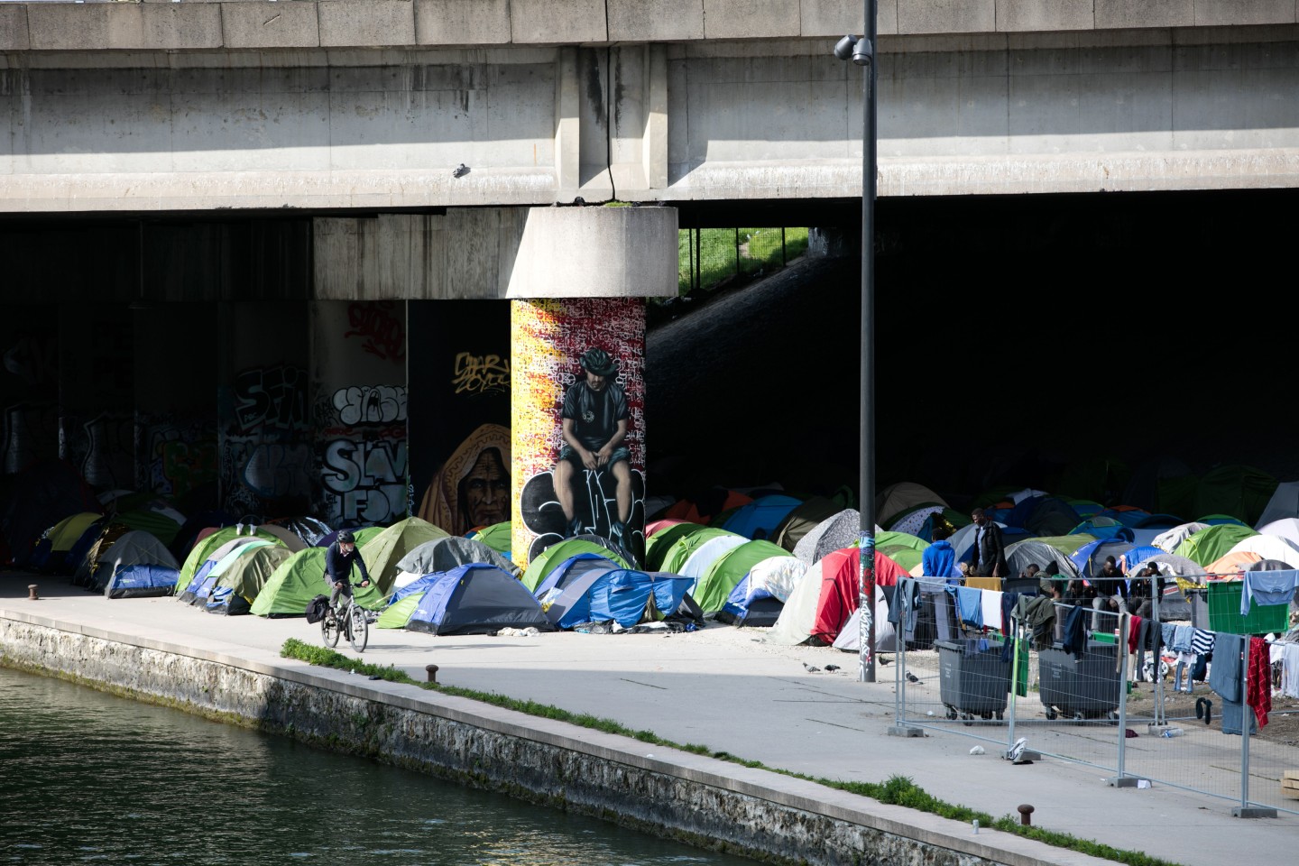 Parīzē aptuveni 2000 migranti jau trešo nedēļu spiesti dzīvot zem tilta kanāla malā, jo Francijas varasiestādes nesniedz naktsmāju alternatīvas.