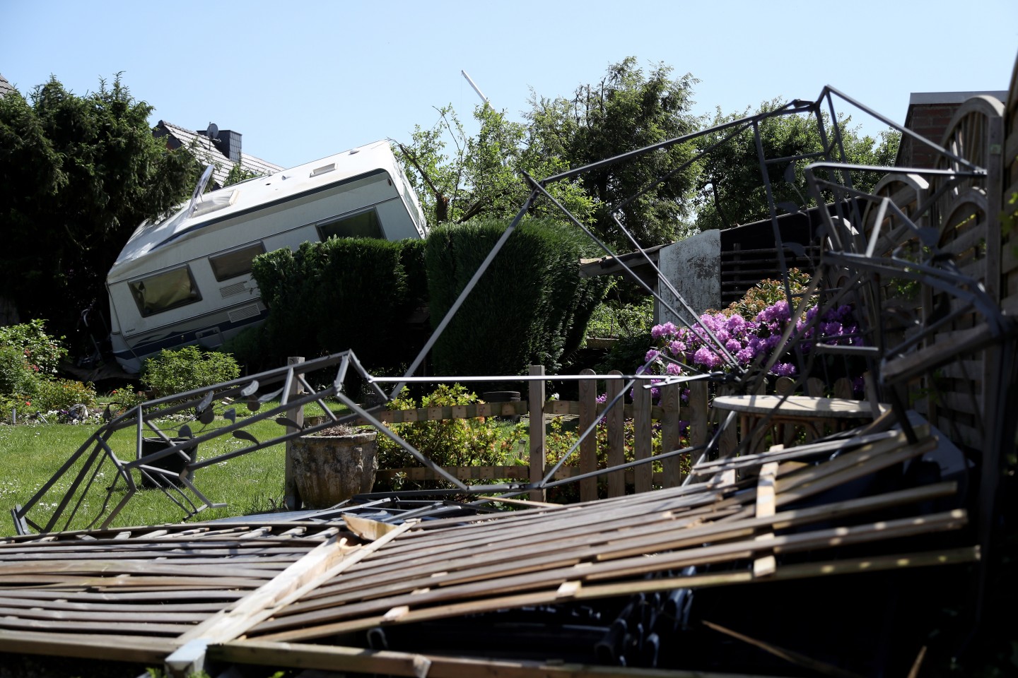 Lai arī tornado plosījies tikai apmēram 10-15 minūtes, tas, netālu no Diseldorfas, spējis veikt milzīgus postījumus.