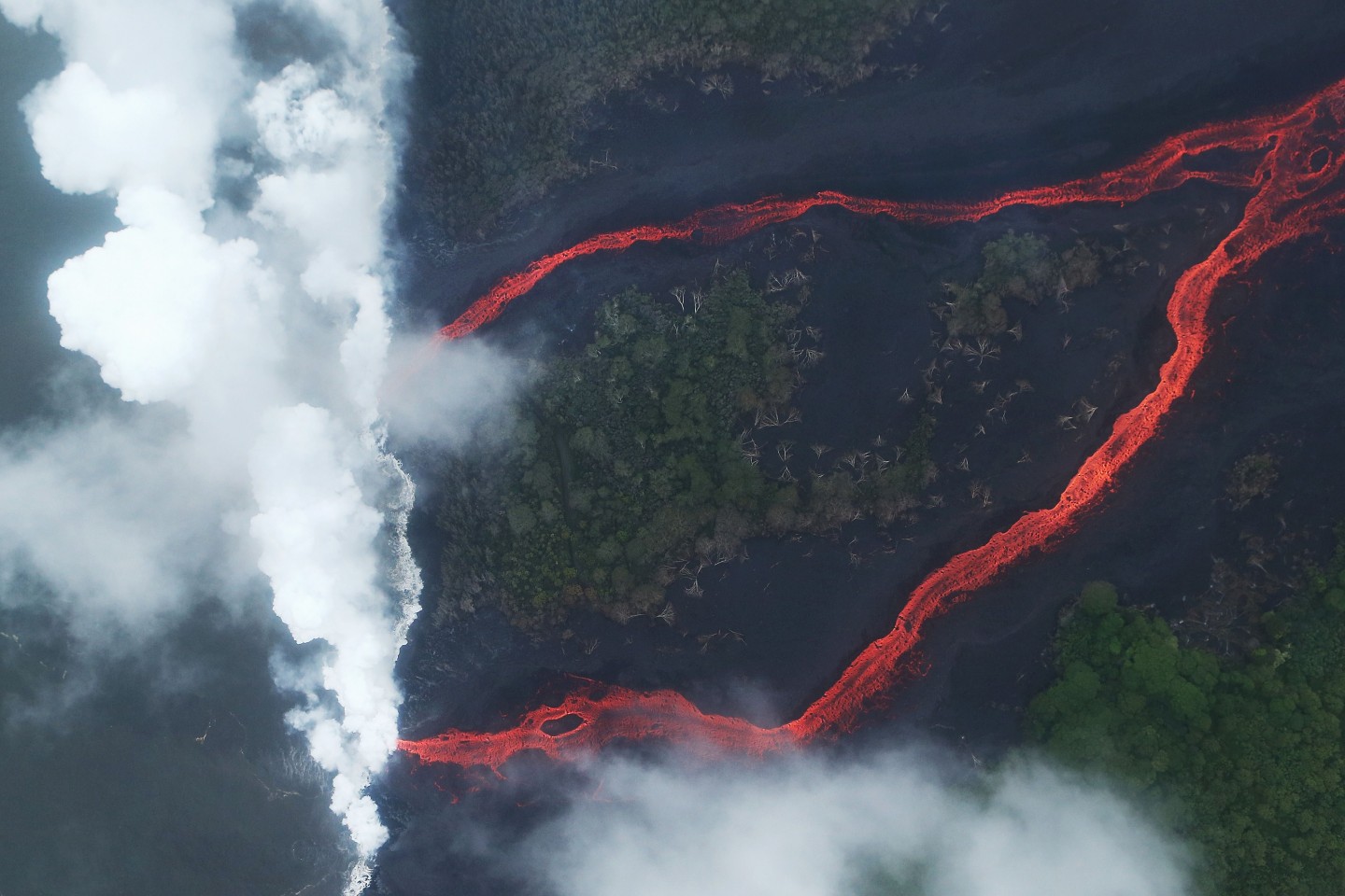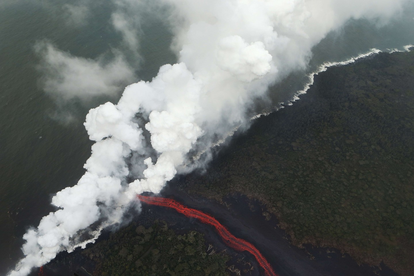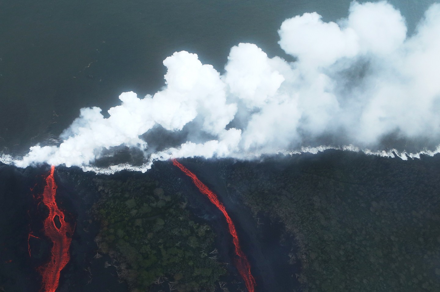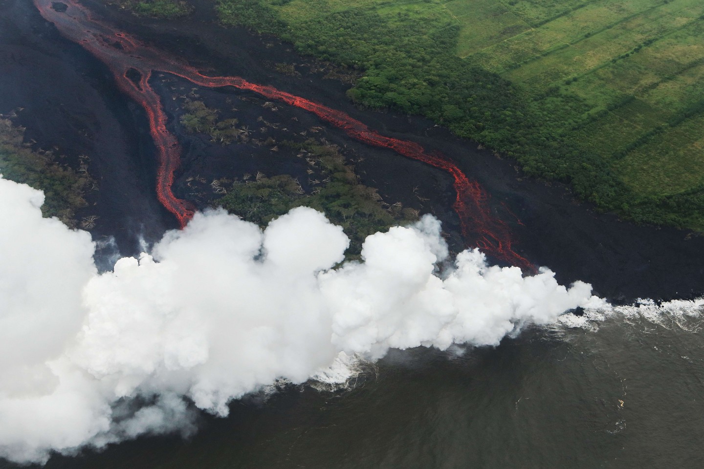 Havaju salās lavas straume sasniegusi Kluso okeānu, radot milzīgus tvaika mākoņus. Tiesa, šie izdalījumi gaisā esot kaitīgi cilvēkiem...