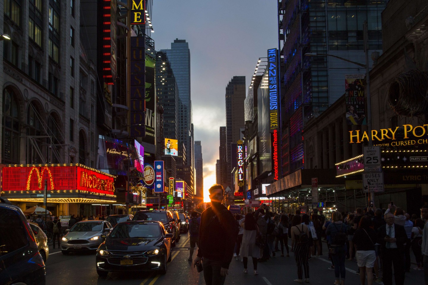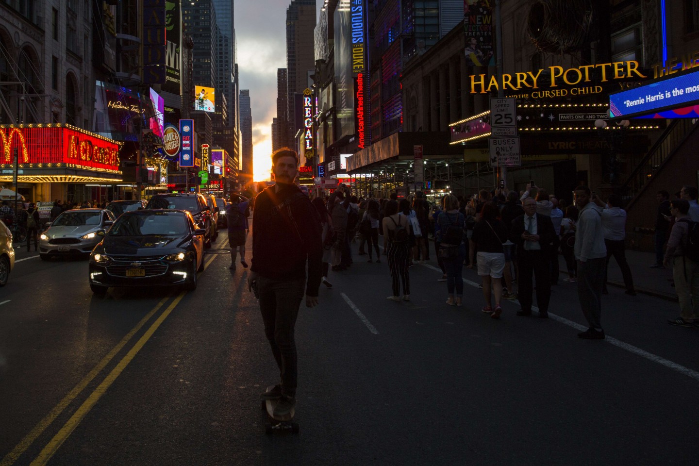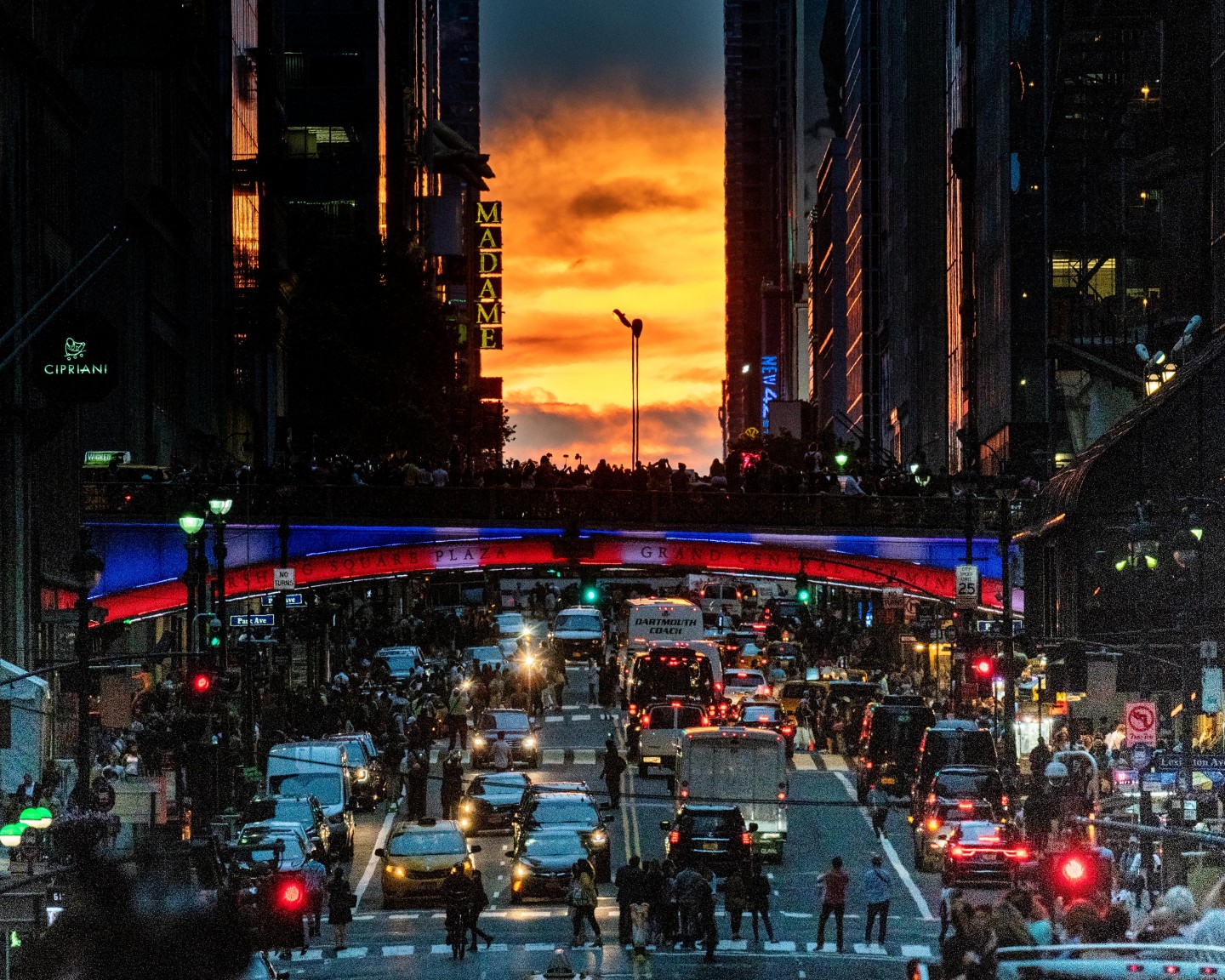 ''Manhattanhenge'' ir unikāls brīdis, kurš Ņujorkā notiek divreiz gadā, kad saule atrodas vienā līmenī ar Taimskvēras austrumrietumu ielām.