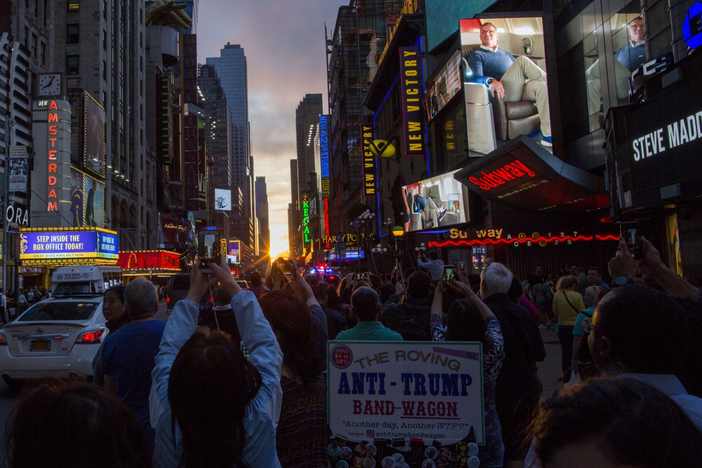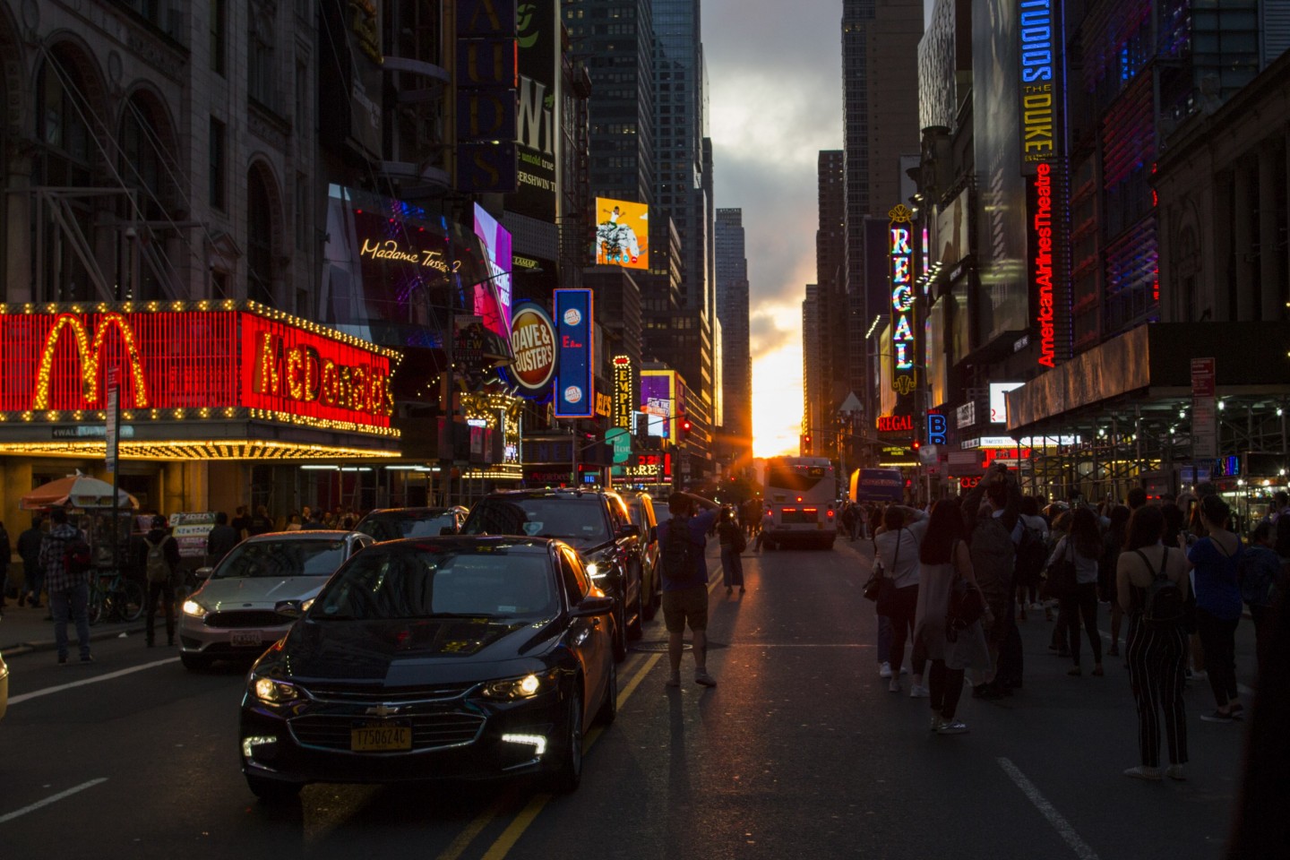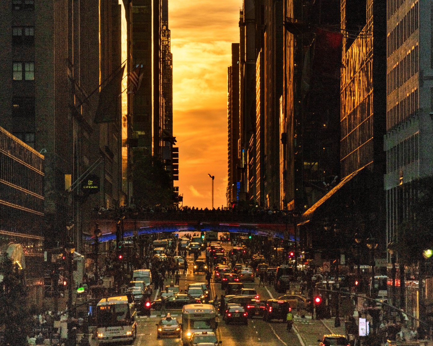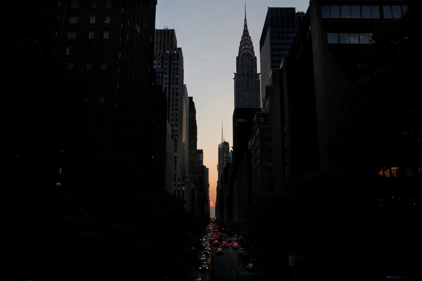 ''Manhattanhenge'' ir unikāls brīdis, kurš Ņujorkā notiek divreiz gadā, kad saule atrodas vienā līmenī ar Taimskvēras austrumrietumu ielām.