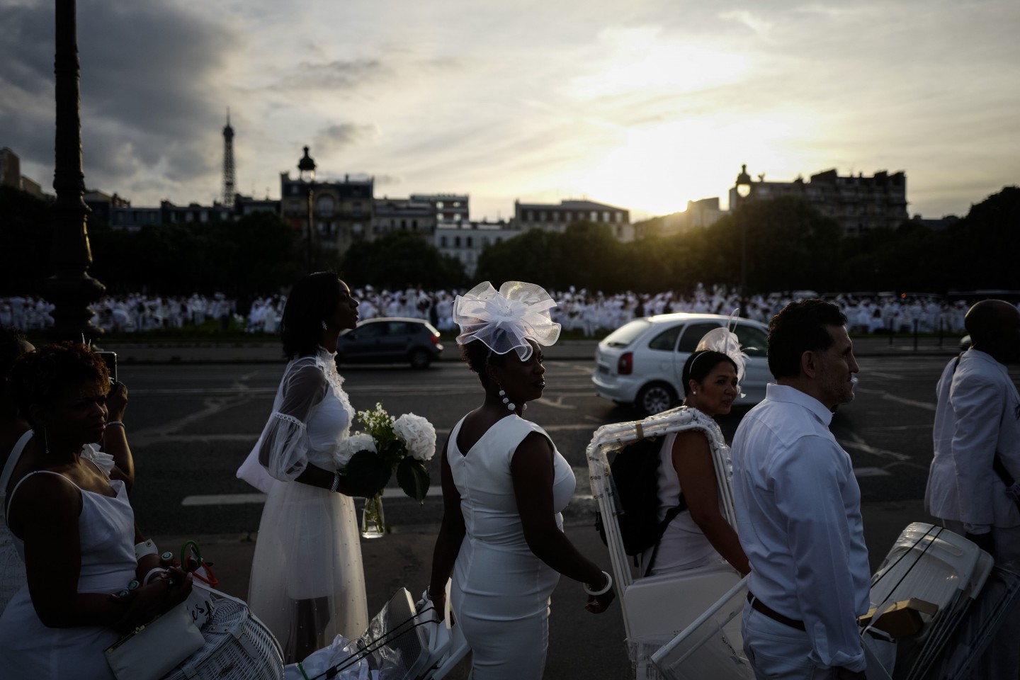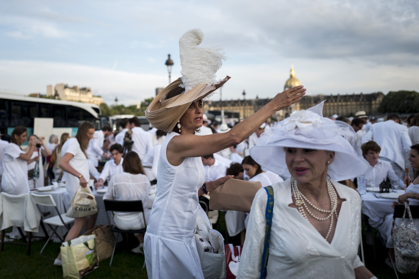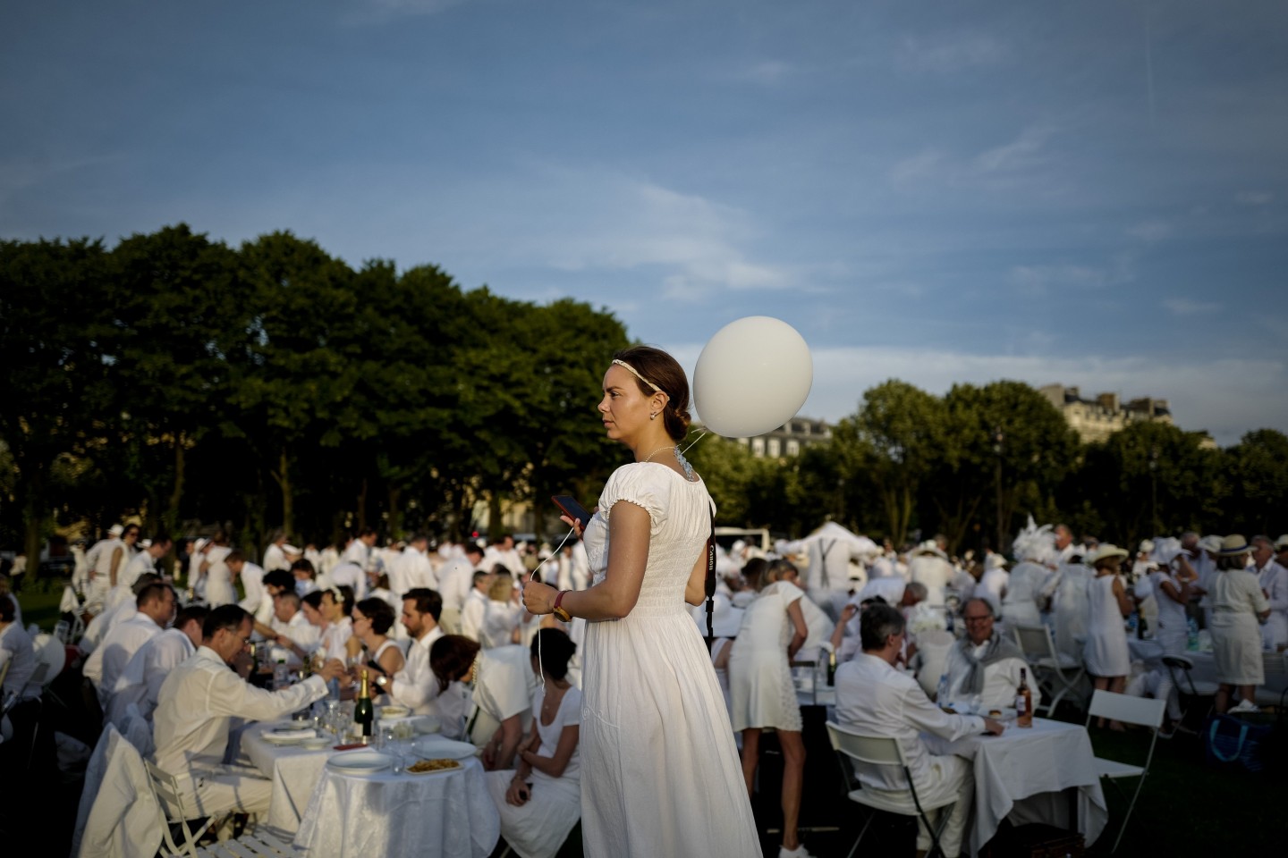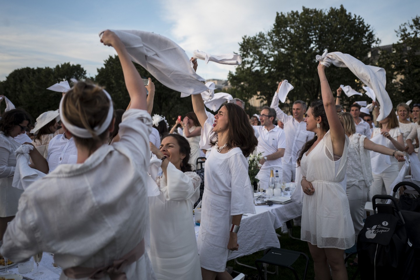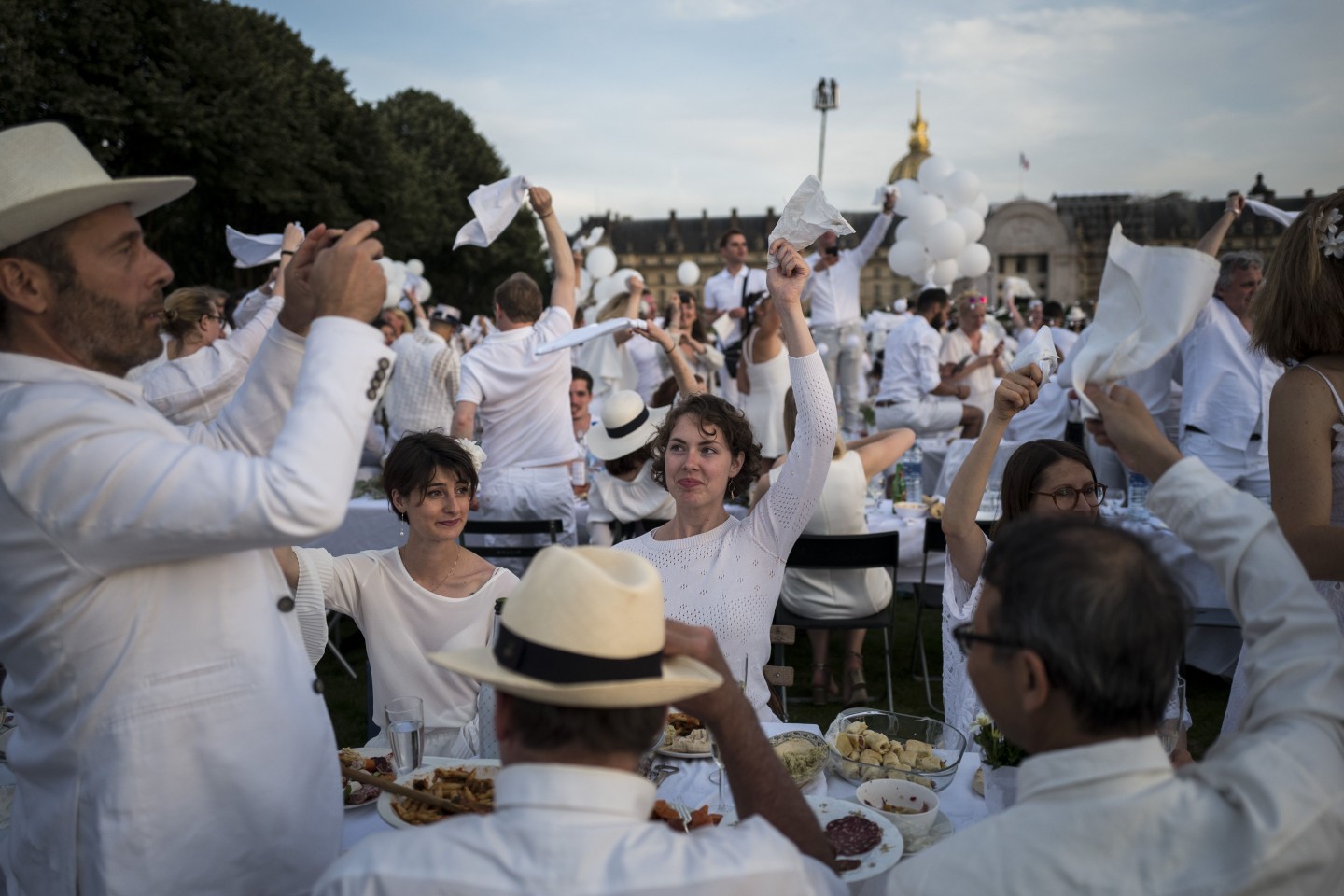 Svētdienas vakarā simtiem baltā tērptu ļaužu jau 30.reizi Parīzē piedalījās tradicionālajās "Diner en Blanc" vakariņās.