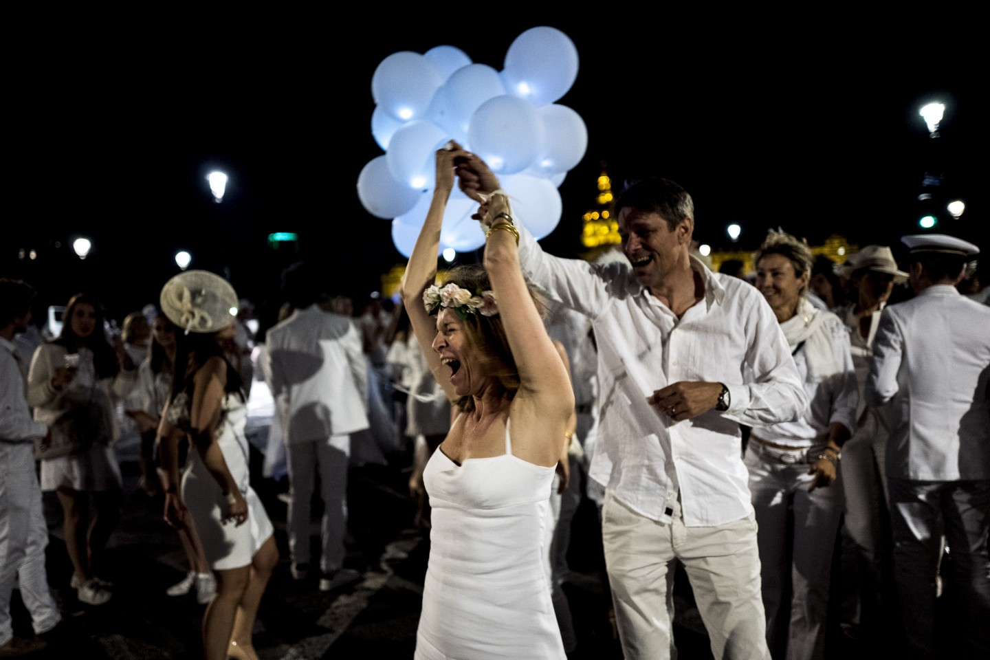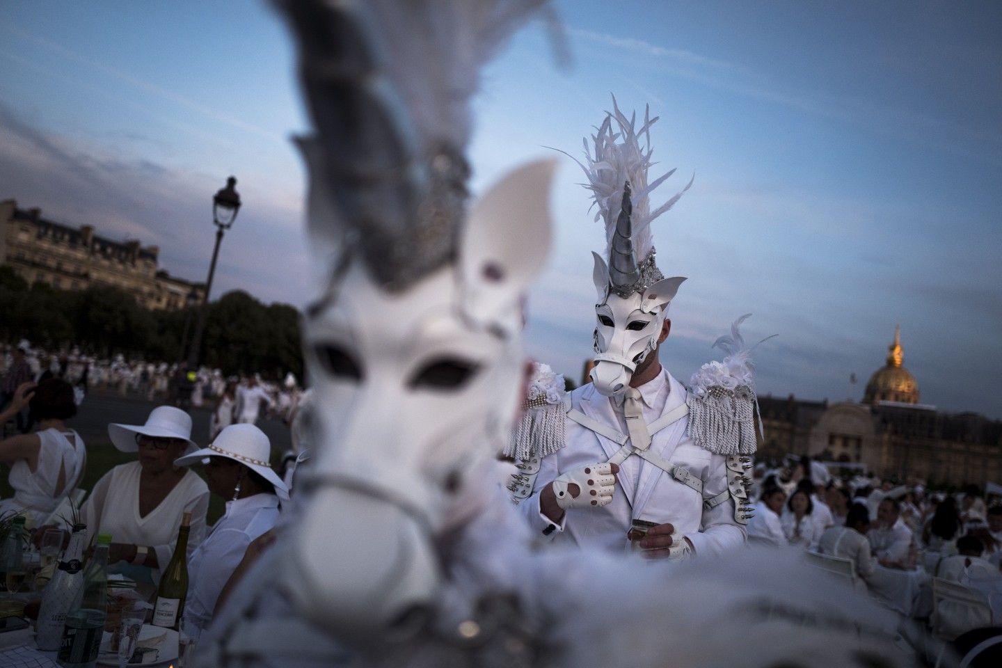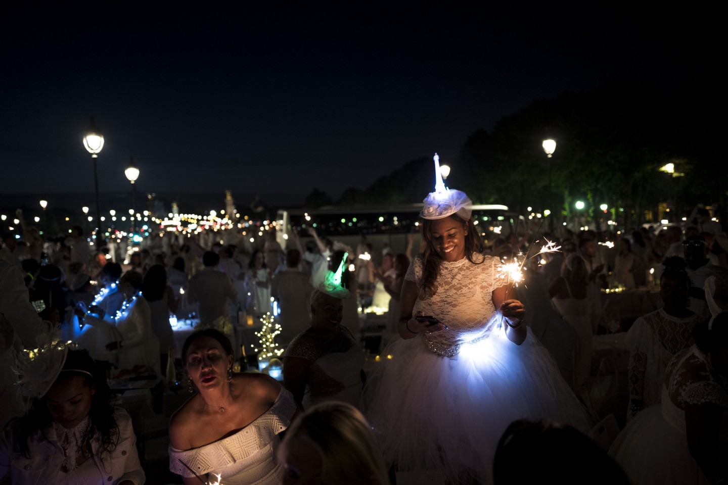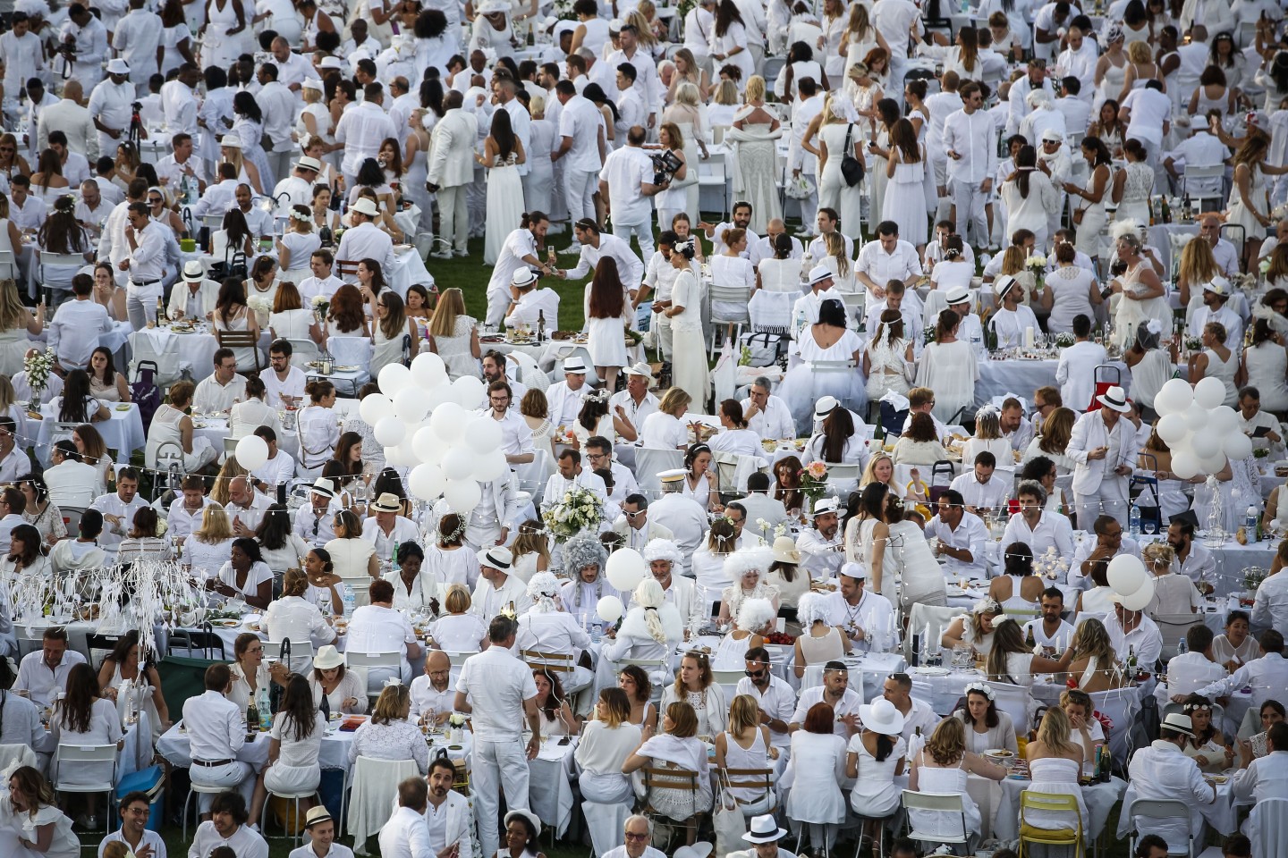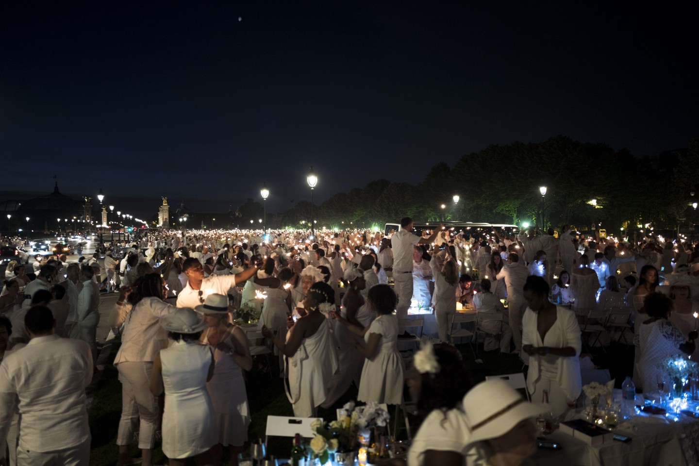 Svētdienas vakarā simtiem baltā tērptu ļaužu jau 30.reizi Parīzē piedalījās tradicionālajās "Diner en Blanc" vakariņās.