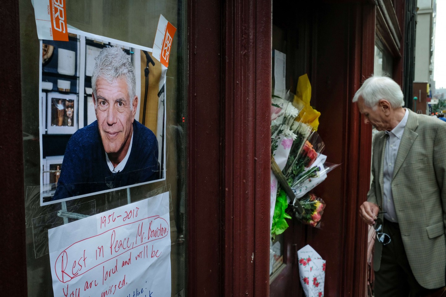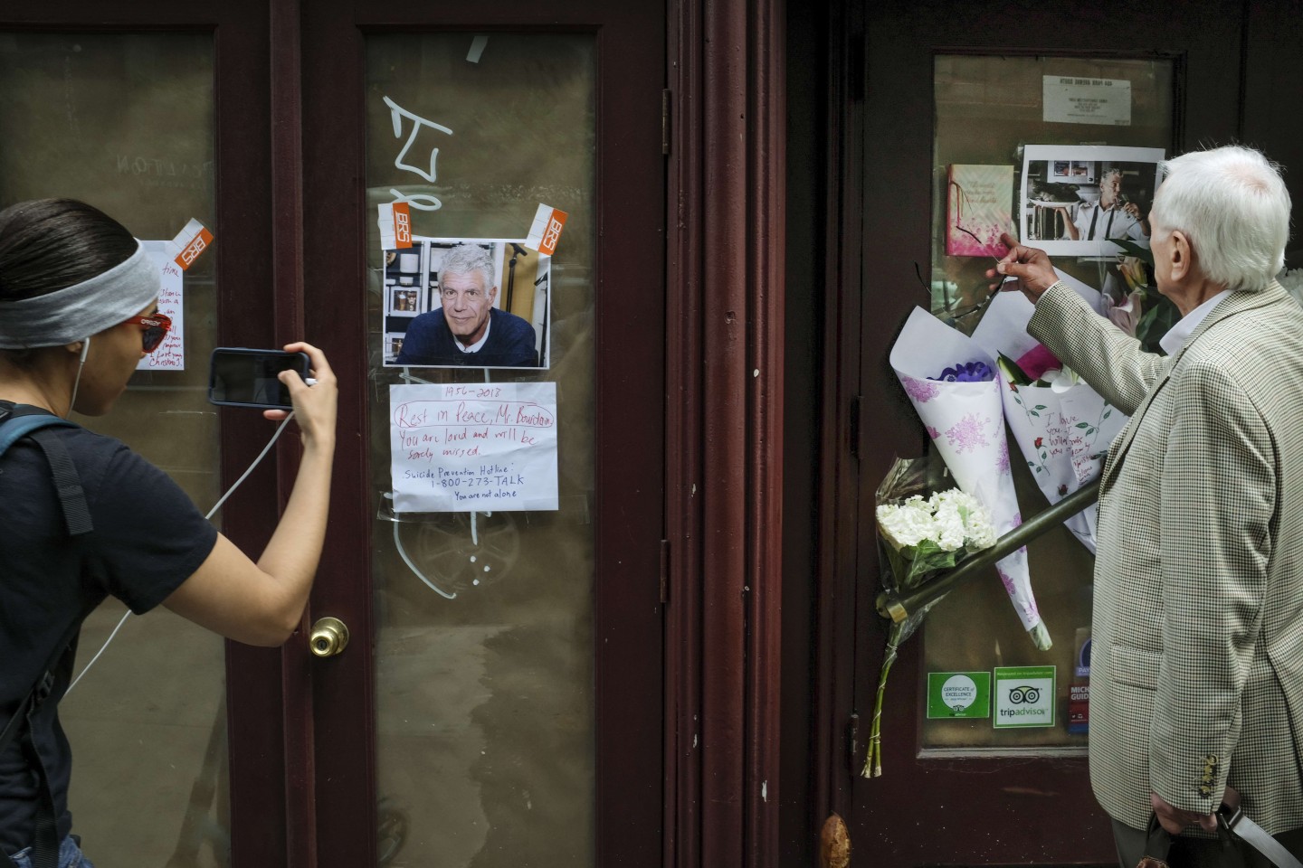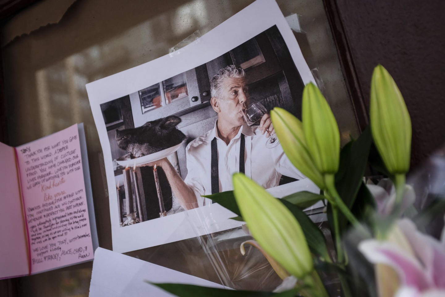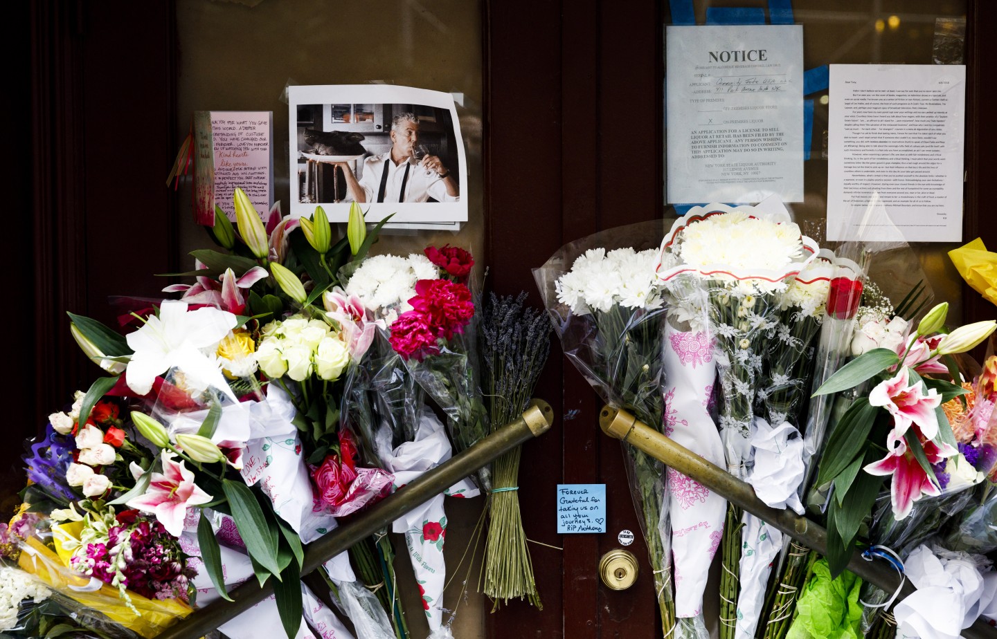 Pēc tam, kad vakar, 8.jūnijā, kļuva zināms, ka pavārs un televīzijas personība Entonijs Burdēns veicis pašnāvību, cilvēki steiguši nolikt ziedus un piemiņas lietas pie viņa slēgtā restorāna ''Les Halles'' Ņujorkā.