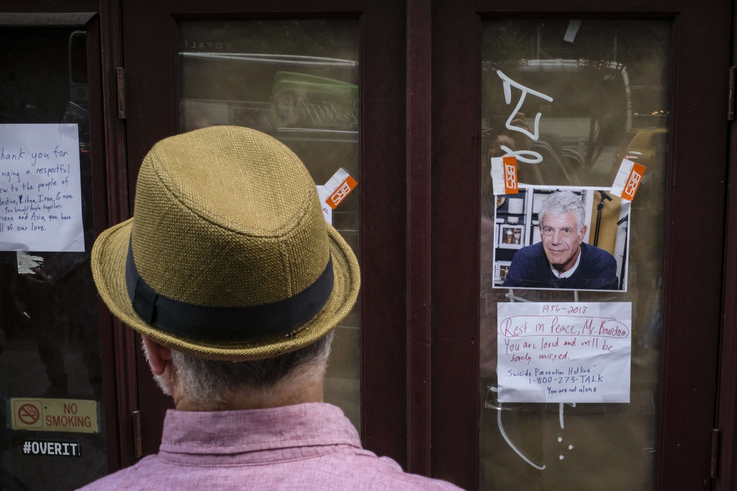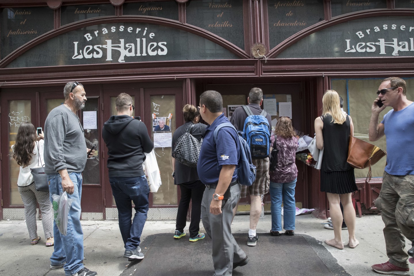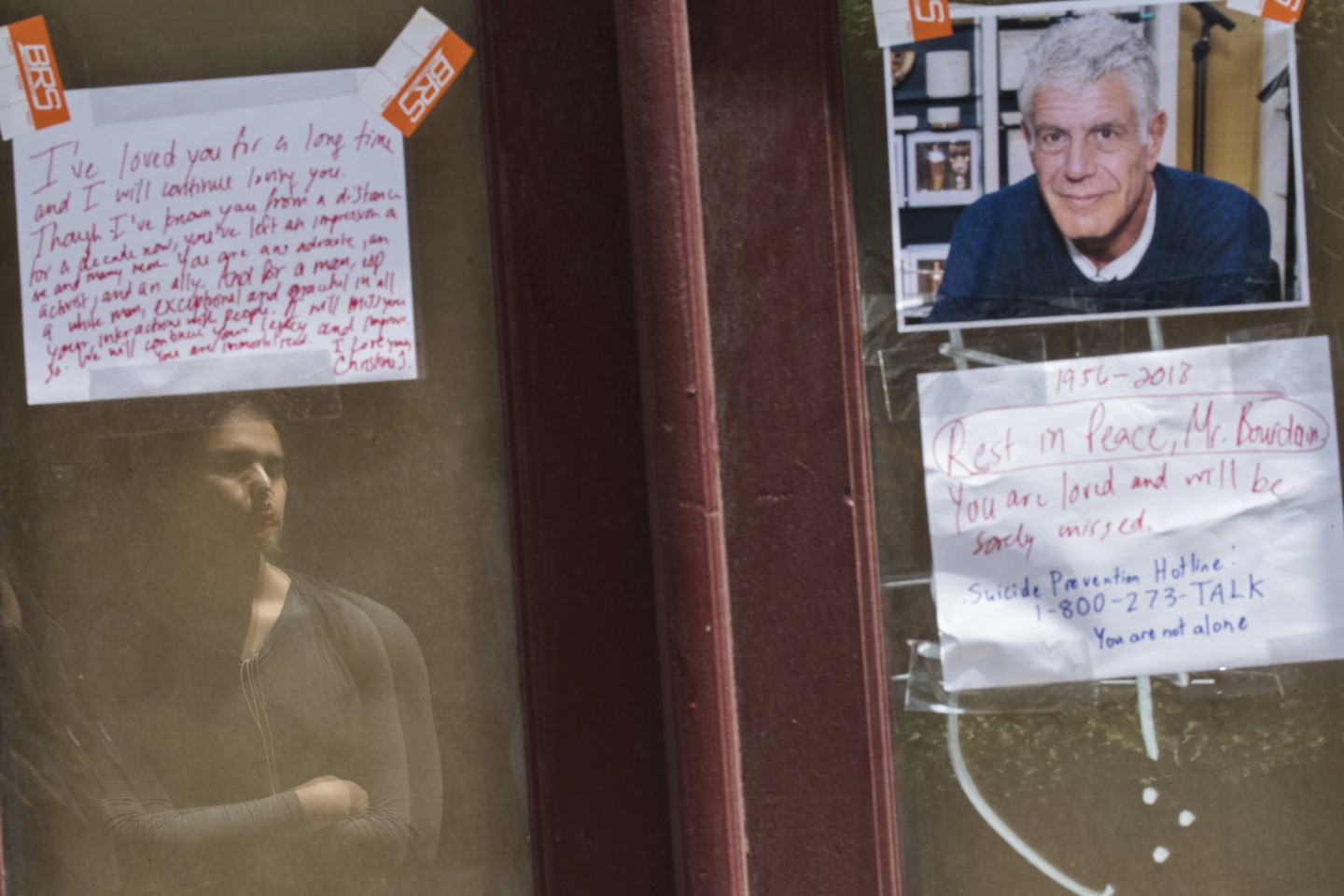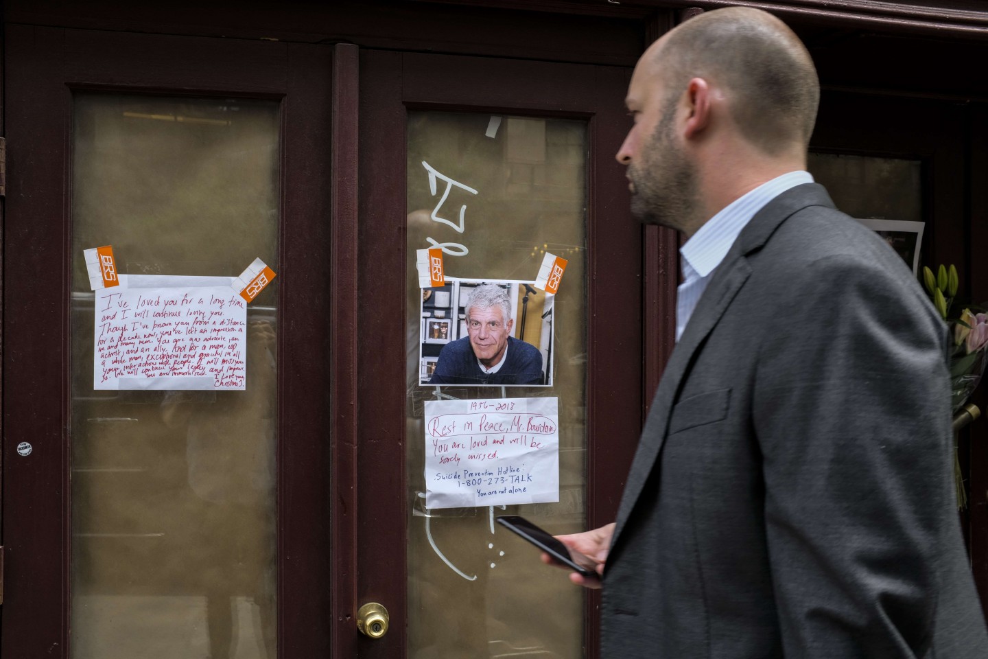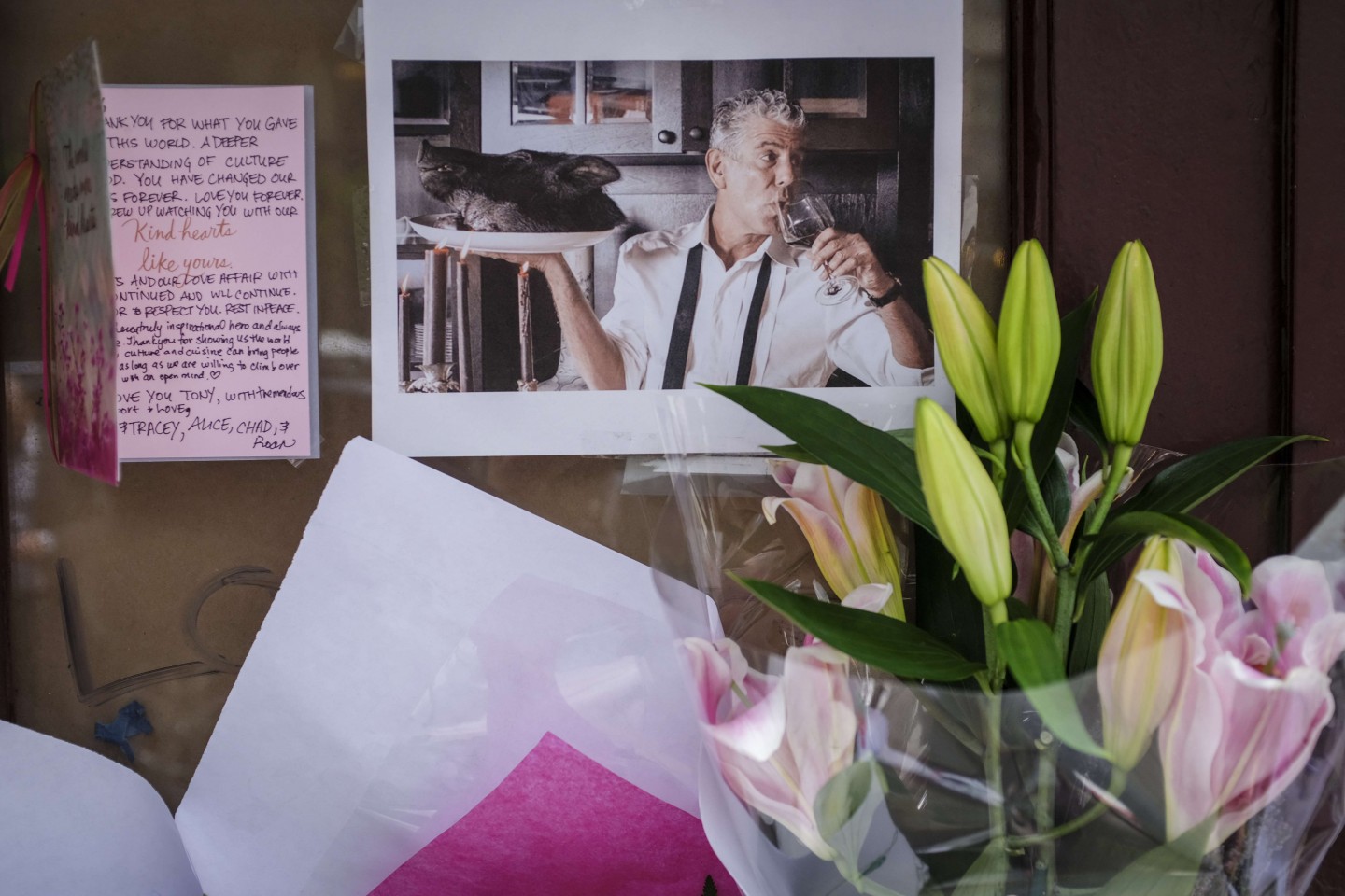 Pēc tam, kad vakar, 8.jūnijā, kļuva zināms, ka pavārs un televīzijas personība Entonijs Burdēns veicis pašnāvību, cilvēki steiguši nolikt ziedus un piemiņas lietas pie viņa slēgtā restorāna ''Les Halles'' Ņujorkā.