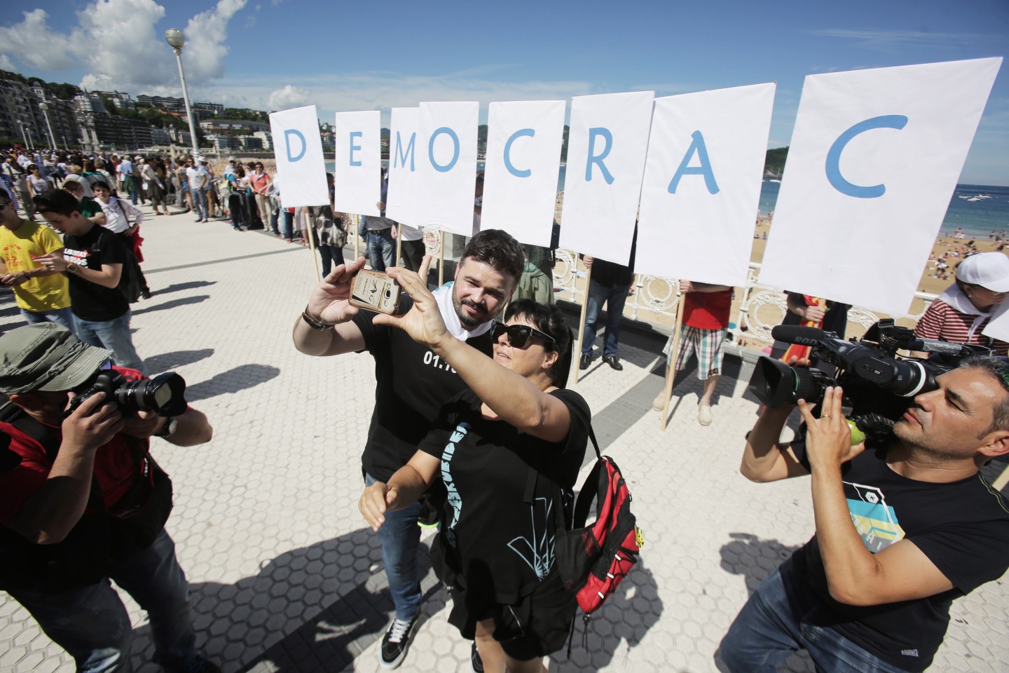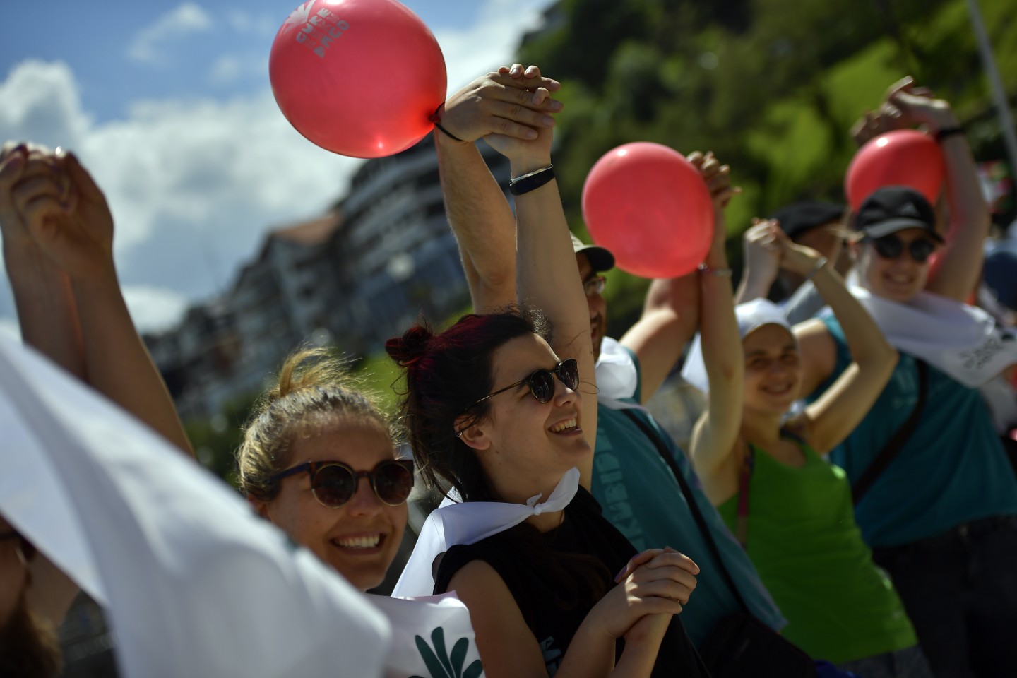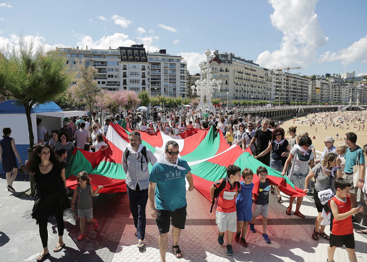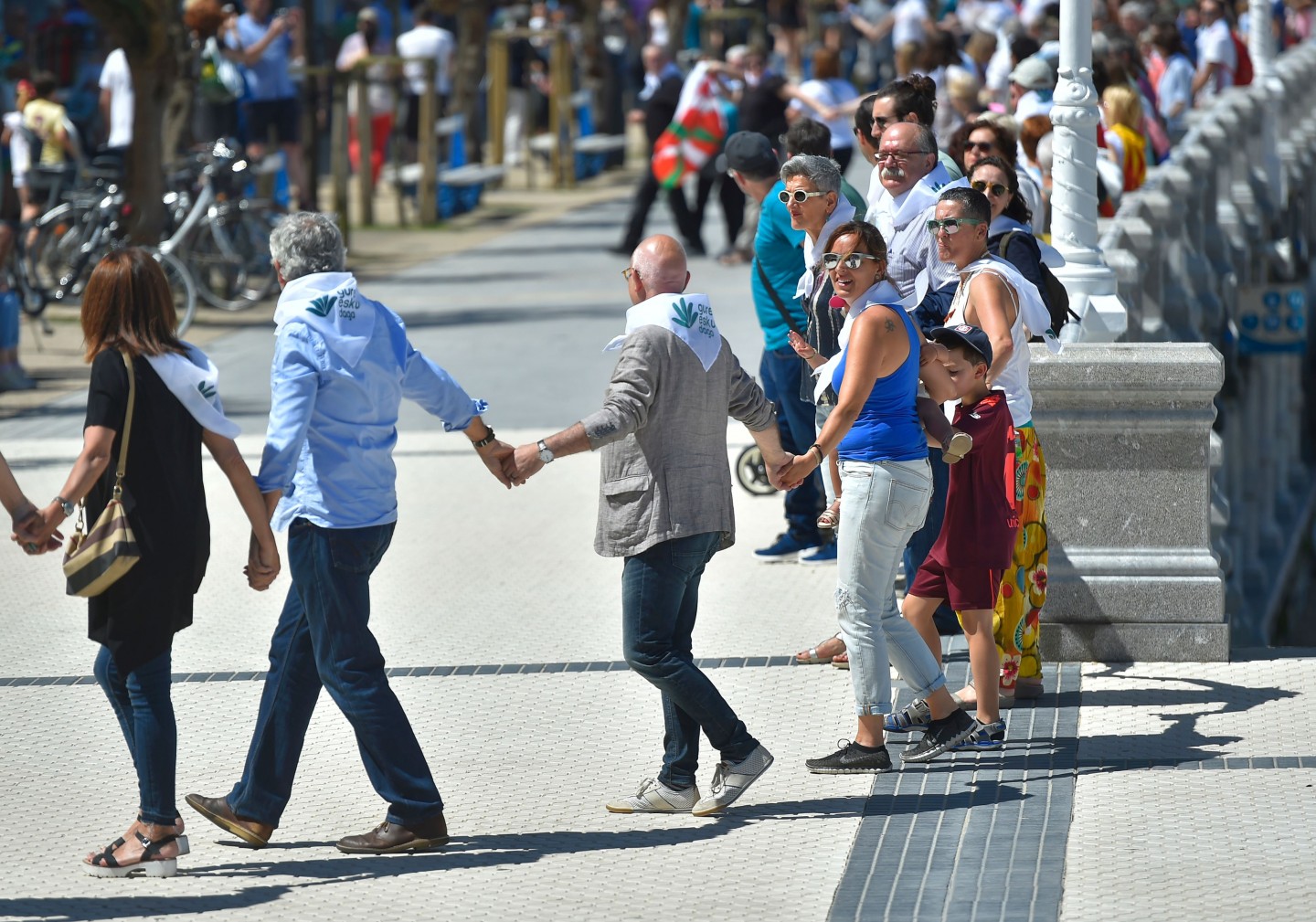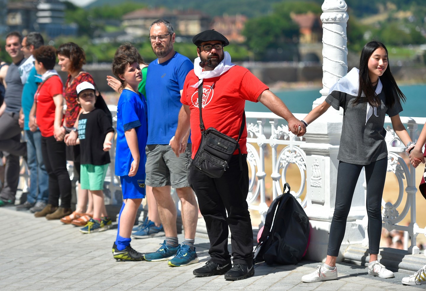 Spānijas Basku Zemē svētdien aptuveni 175 000 aktīvistu sadevušies rokās 202 kilometrus garā cilvēku ķēdē, pieprasot balsojumu par neatkarību, pavēstīja organizatori. Akcijas maršruts vijās no piekrastes kūrorta Sansebastjanas caur biznesa centru Bilbao uz reģiona galvaspilsētu Vitoriju. "Mēs esam pierādījuši, ka mēs gribam izlemt šīs zemes politisko likteni," uzrunājot akcijas dalībniekus Vitorijā, sacīja akcijas rīkotāju organizācijas "Gure Esku Dago" (Tas ir mūsu rokās") pārstāvis Angels Oiarbide. Akcijai pievienojās vairākas neatkarības atbalstītāju politikās organizācijas un savienības, arī valdošā Basku nacionālā partija. Šī demonstrācija pierāda, ka mums ir "aktīva un vitāla tauta, kas vēlas pieņemt lēmumus demokrātiskā ceļā", sacīja basku reģionālā parlamenta prezidente Bakarco Tejerija. "Gure Esku Dago" līdzīgas akcijas rīkoja arī 2014. un 2015.gadā, cenšoties panākt referenduma sarīkošanu par plašākas politiskās brīvības nodrošināšanu šajā reģionā, kuram jau atbilstoši Spānijas konstitūcijai ir zināma politiskā un kultūras autonomija.