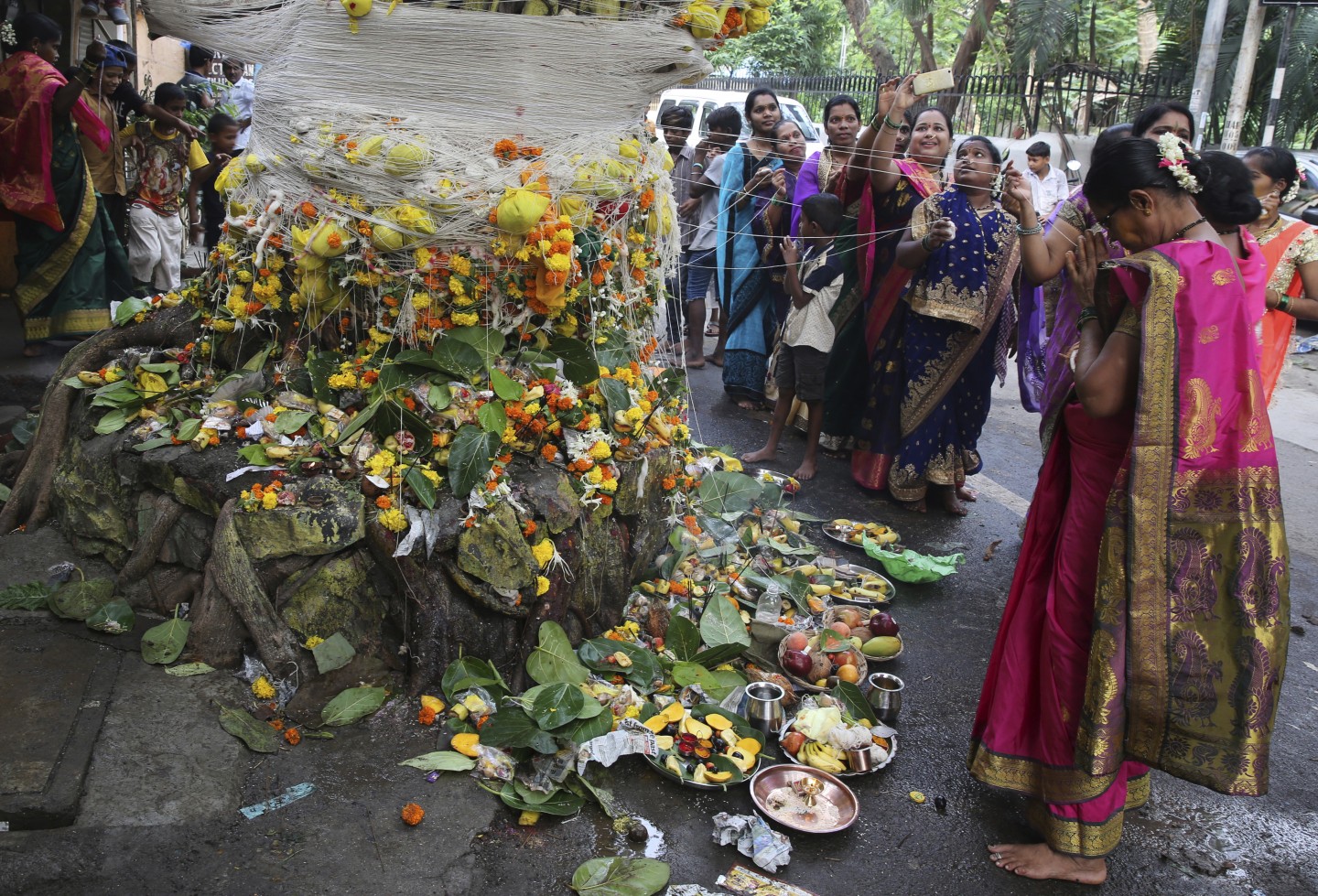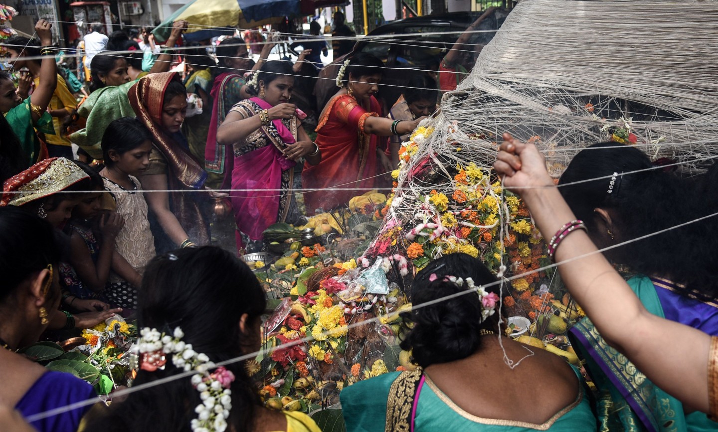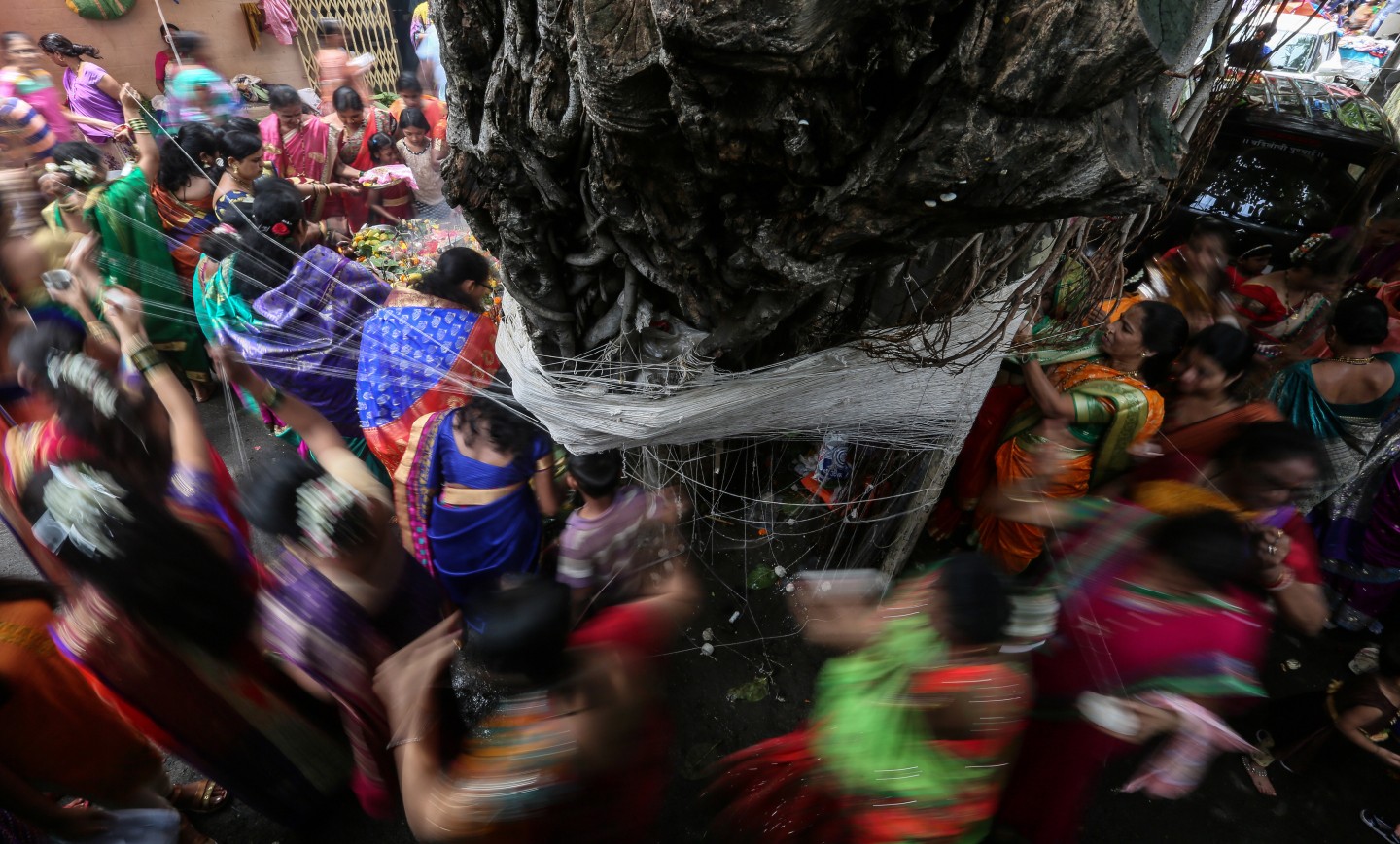 Festivāls Indijā (Mumbajā), kur precētas sievas lūdz "Banjana kokam" ilgu dzīvi saviem vīriem.