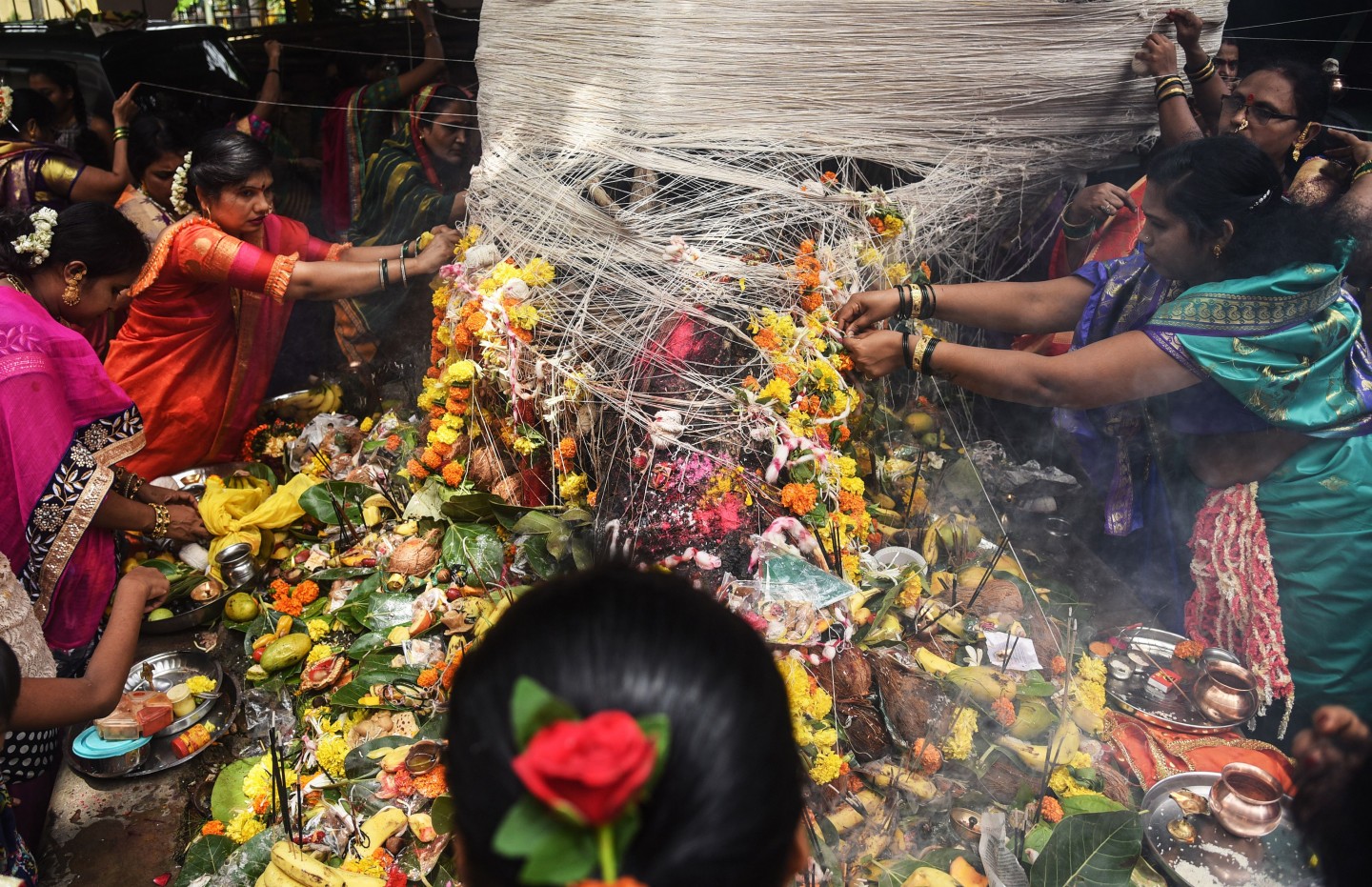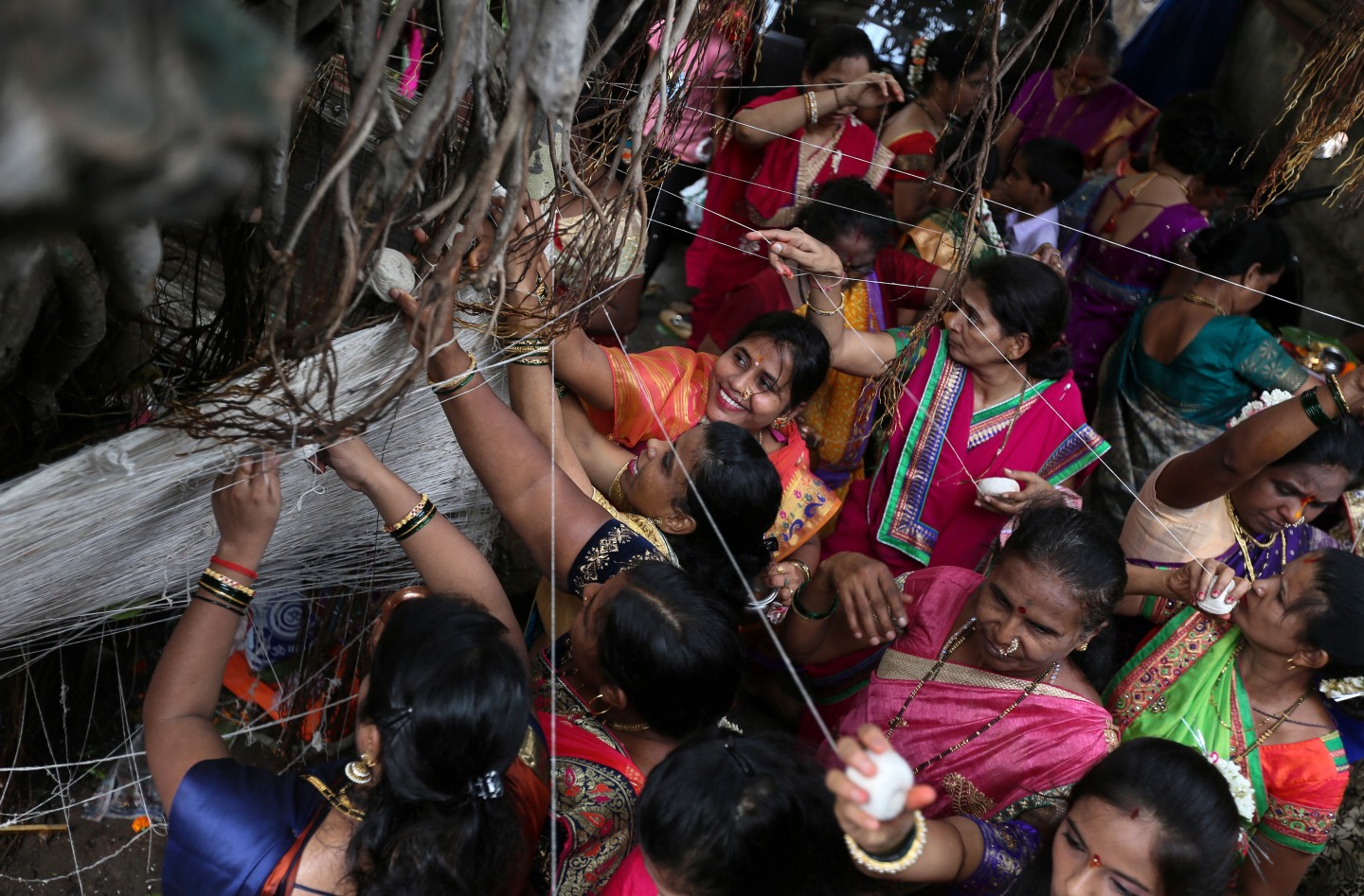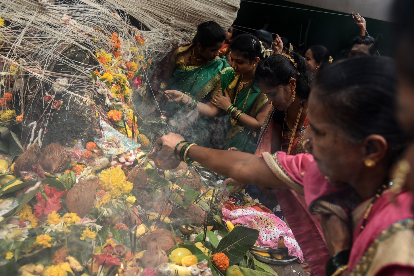Festivāls Indijā (Mumbajā), kur precētas sievas lūdz "Banjana kokam" ilgu dzīvi saviem vīriem.