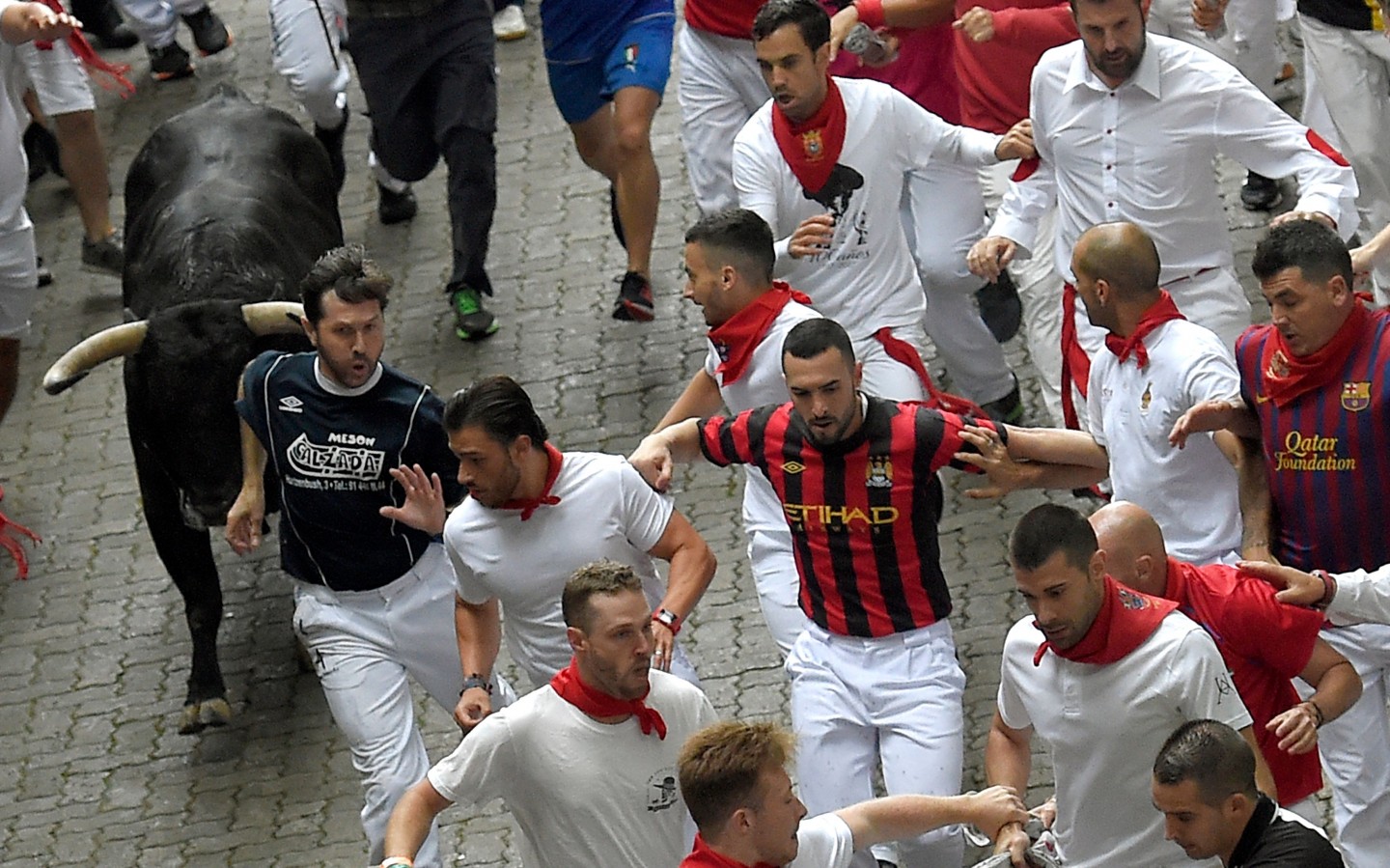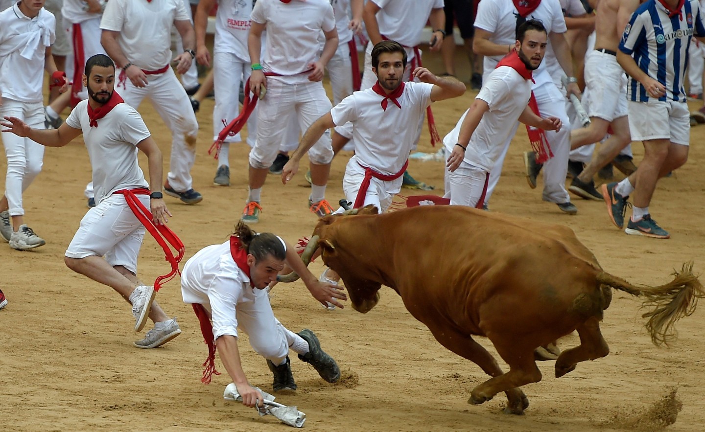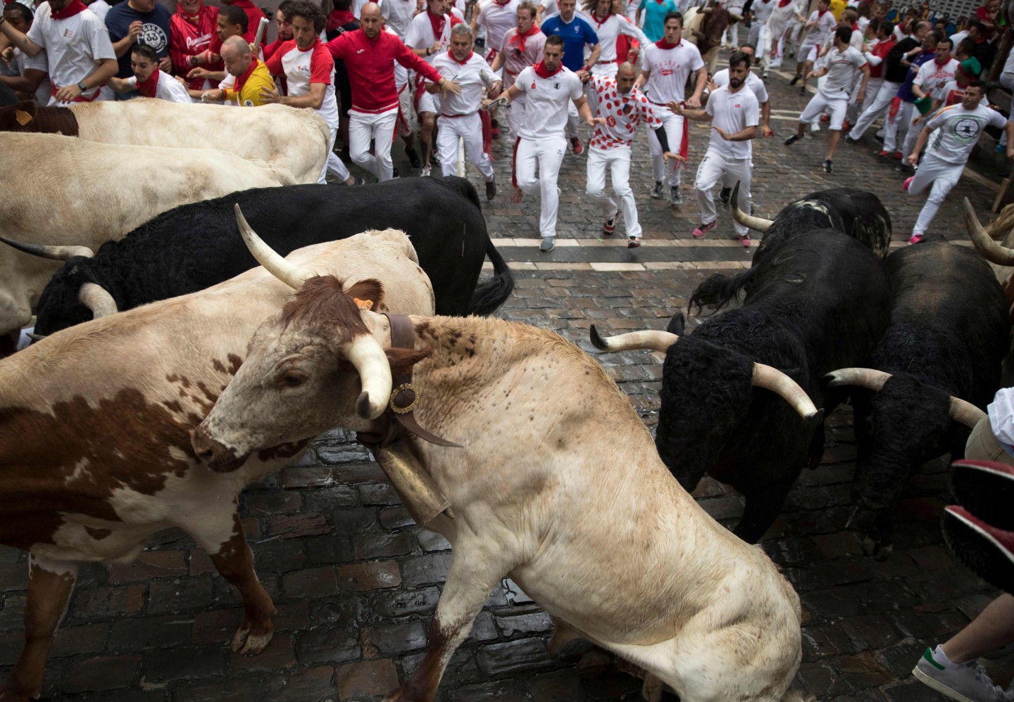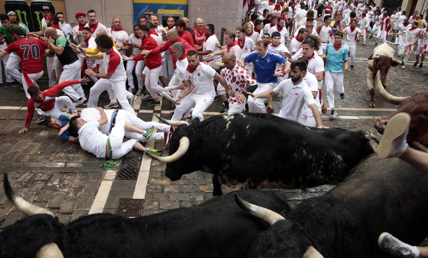 Ikgadējā Svētā Fermina festivāla vēršu skrējienā Pamplonā sestdien ievainoti pieci cilvēki, tostarp vismaz vienu sabadījis vērsis, paziņojuši mediķi. Šis bija festivāla pirmais vēršu skrējiens, kuru 550 līdz 630 kilogramus smagie vērši mēroja aptuveni divās minūtēs. Lietus pirms skrējiena sākuma padarīja slidenas šaurās ieliņas, pa kuriem vērši skrēja uz arēnu, kur vakarā tiks nogalināti vēršu cīņā un vēlāk servēti pilsētas restorānos. Vēršu skrējieni Pamplonā notiek kopš 1911.gada. Katru rītu plkst.8 seši cīņu vērši tiek izlaisti brīvībā senās pilsētas centra ielās, pa kurām skrien uz arēnu. Drosminieki skrien līdzās vēršiem, apbruņojušies ar sarullētām avīzēm, tomēr daudzi dalībnieki pārkāpj noteikumus un pieskaras dzīvniekiem ar rokām. Tiek uzskatīts, ka vēršu skrējieni aizsākušies XVI gadsimtā. Pasākums kļuva slavens, pateicoties Ernesta Hemingveja 1926.gada romānam "Un saule lec", un tagad uz pilsētu, kurā dzīvo ap 200 000 cilvēku, ik gadu dodas simtiem tūkstošu apmeklētāju no visas pasaules. Turklāt vēl vairāki miljoni cilvēku pie televīzijas ekrāniem ik gadu vēro atklāšanas ceremoniju un ikrīta vēršu skrējienus. Kopš 1911.gada vēršu skrējienu laikā dzīvību zaudējuši 15 cilvēki. Pēdējais letālais gadījums bija 2009.gadā, kad vērsis sabadīja kādu 27 gadus vecu spāni kaklā, sirdī un plaušās.