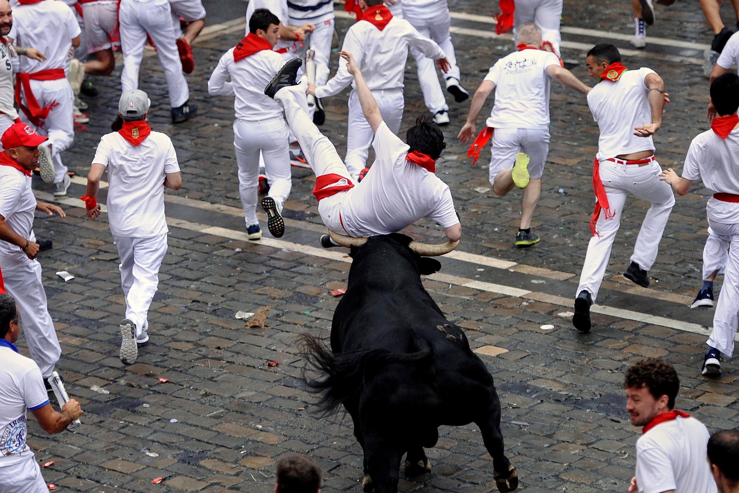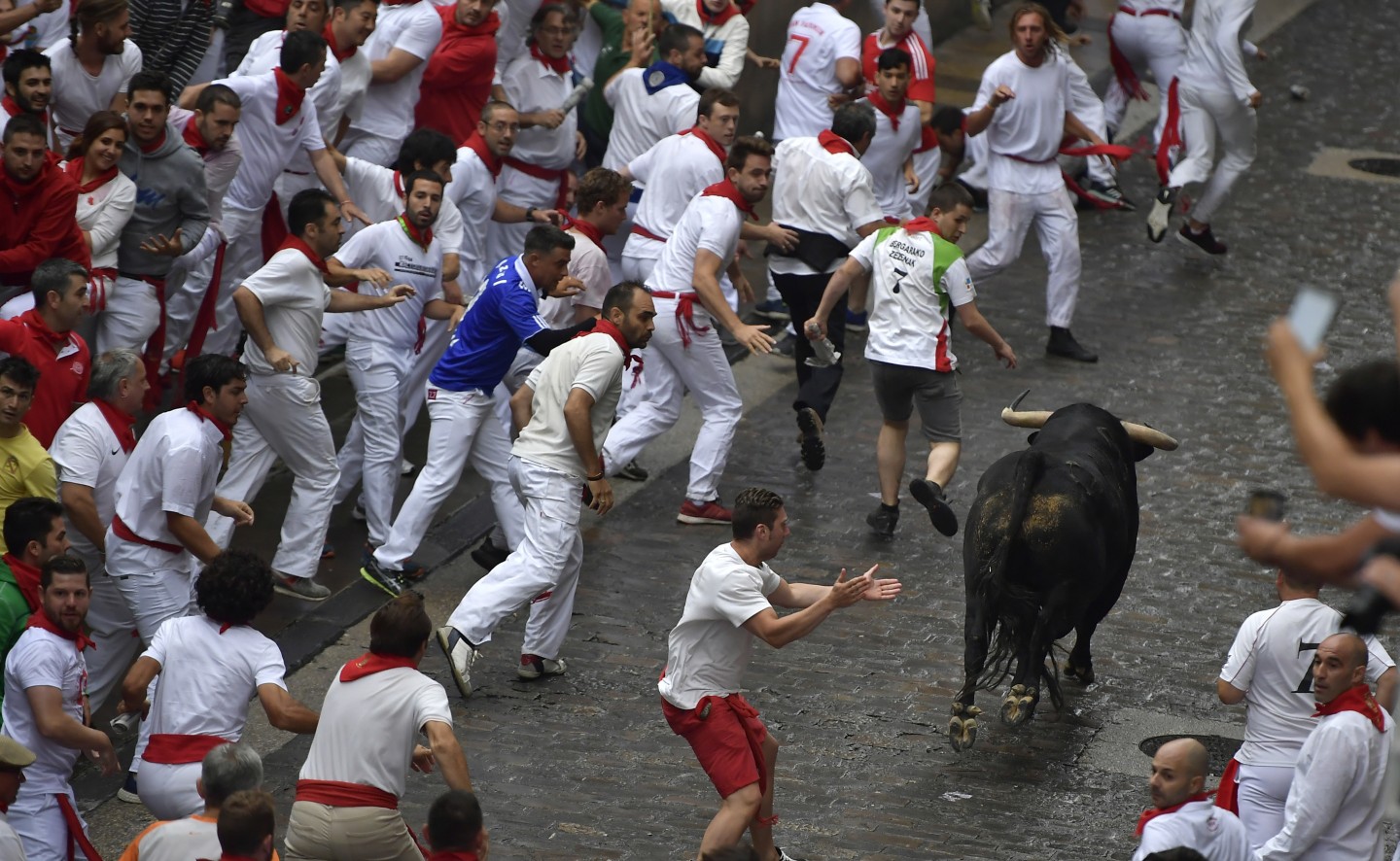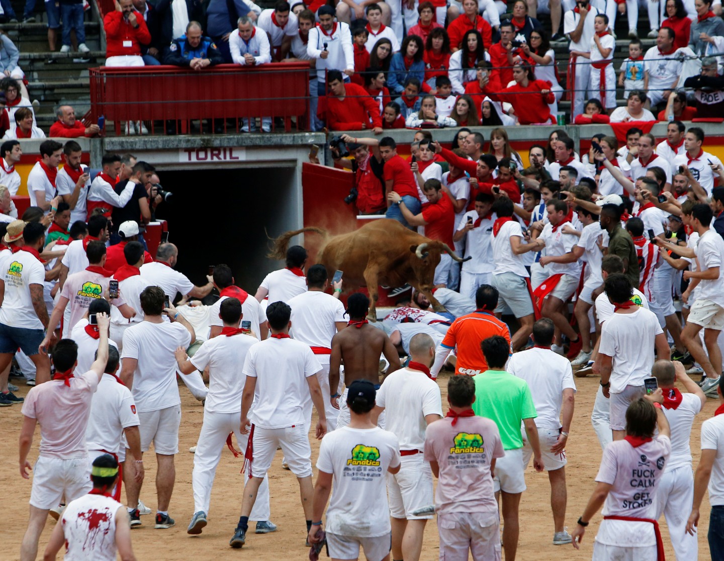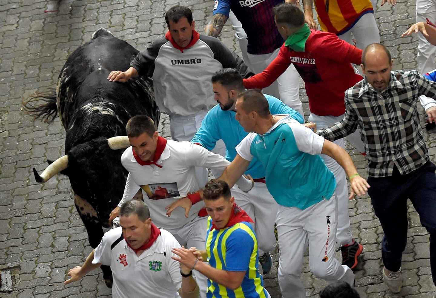 Ikgadējā Svētā Fermina festivāla vēršu skrējienā Pamplonā sestdien ievainoti pieci cilvēki, tostarp vismaz vienu sabadījis vērsis, paziņojuši mediķi. Šis bija festivāla pirmais vēršu skrējiens, kuru 550 līdz 630 kilogramus smagie vērši mēroja aptuveni divās minūtēs. Lietus pirms skrējiena sākuma padarīja slidenas šaurās ieliņas, pa kuriem vērši skrēja uz arēnu, kur vakarā tiks nogalināti vēršu cīņā un vēlāk servēti pilsētas restorānos. Vēršu skrējieni Pamplonā notiek kopš 1911.gada. Katru rītu plkst.8 seši cīņu vērši tiek izlaisti brīvībā senās pilsētas centra ielās, pa kurām skrien uz arēnu. Drosminieki skrien līdzās vēršiem, apbruņojušies ar sarullētām avīzēm, tomēr daudzi dalībnieki pārkāpj noteikumus un pieskaras dzīvniekiem ar rokām. Tiek uzskatīts, ka vēršu skrējieni aizsākušies XVI gadsimtā. Pasākums kļuva slavens, pateicoties Ernesta Hemingveja 1926.gada romānam "Un saule lec", un tagad uz pilsētu, kurā dzīvo ap 200 000 cilvēku, ik gadu dodas simtiem tūkstošu apmeklētāju no visas pasaules. Turklāt vēl vairāki miljoni cilvēku pie televīzijas ekrāniem ik gadu vēro atklāšanas ceremoniju un ikrīta vēršu skrējienus. Kopš 1911.gada vēršu skrējienu laikā dzīvību zaudējuši 15 cilvēki. Pēdējais letālais gadījums bija 2009.gadā, kad vērsis sabadīja kādu 27 gadus vecu spāni kaklā, sirdī un plaušās.