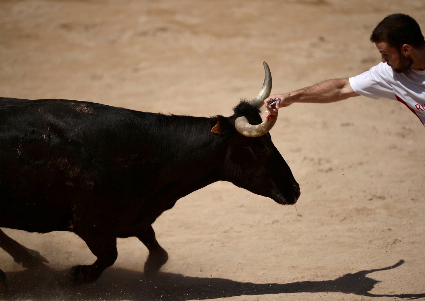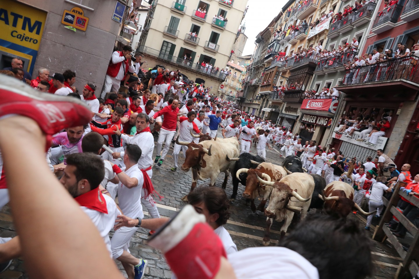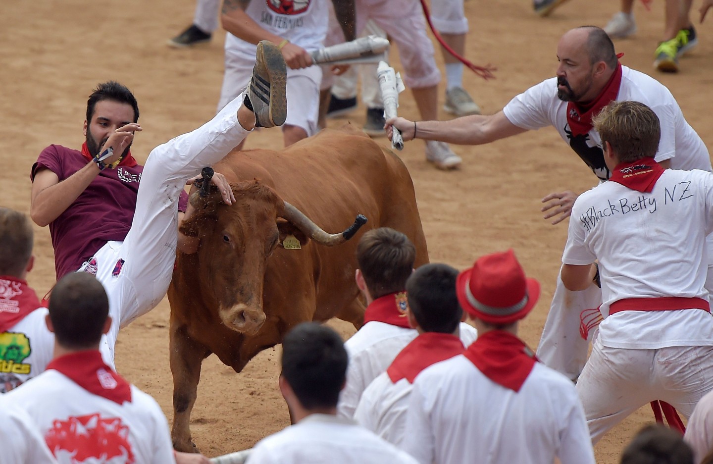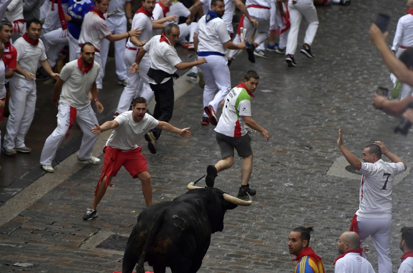 Ikgadējā Svētā Fermina festivāla vēršu skrējienā Pamplonā sestdien ievainoti pieci cilvēki, tostarp vismaz vienu sabadījis vērsis, paziņojuši mediķi. Šis bija festivāla pirmais vēršu skrējiens, kuru 550 līdz 630 kilogramus smagie vērši mēroja aptuveni divās minūtēs. Lietus pirms skrējiena sākuma padarīja slidenas šaurās ieliņas, pa kuriem vērši skrēja uz arēnu, kur vakarā tiks nogalināti vēršu cīņā un vēlāk servēti pilsētas restorānos. Vēršu skrējieni Pamplonā notiek kopš 1911.gada. Katru rītu plkst.8 seši cīņu vērši tiek izlaisti brīvībā senās pilsētas centra ielās, pa kurām skrien uz arēnu. Drosminieki skrien līdzās vēršiem, apbruņojušies ar sarullētām avīzēm, tomēr daudzi dalībnieki pārkāpj noteikumus un pieskaras dzīvniekiem ar rokām. Tiek uzskatīts, ka vēršu skrējieni aizsākušies XVI gadsimtā. Pasākums kļuva slavens, pateicoties Ernesta Hemingveja 1926.gada romānam "Un saule lec", un tagad uz pilsētu, kurā dzīvo ap 200 000 cilvēku, ik gadu dodas simtiem tūkstošu apmeklētāju no visas pasaules. Turklāt vēl vairāki miljoni cilvēku pie televīzijas ekrāniem ik gadu vēro atklāšanas ceremoniju un ikrīta vēršu skrējienus. Kopš 1911.gada vēršu skrējienu laikā dzīvību zaudējuši 15 cilvēki. Pēdējais letālais gadījums bija 2009.gadā, kad vērsis sabadīja kādu 27 gadus vecu spāni kaklā, sirdī un plaušās.