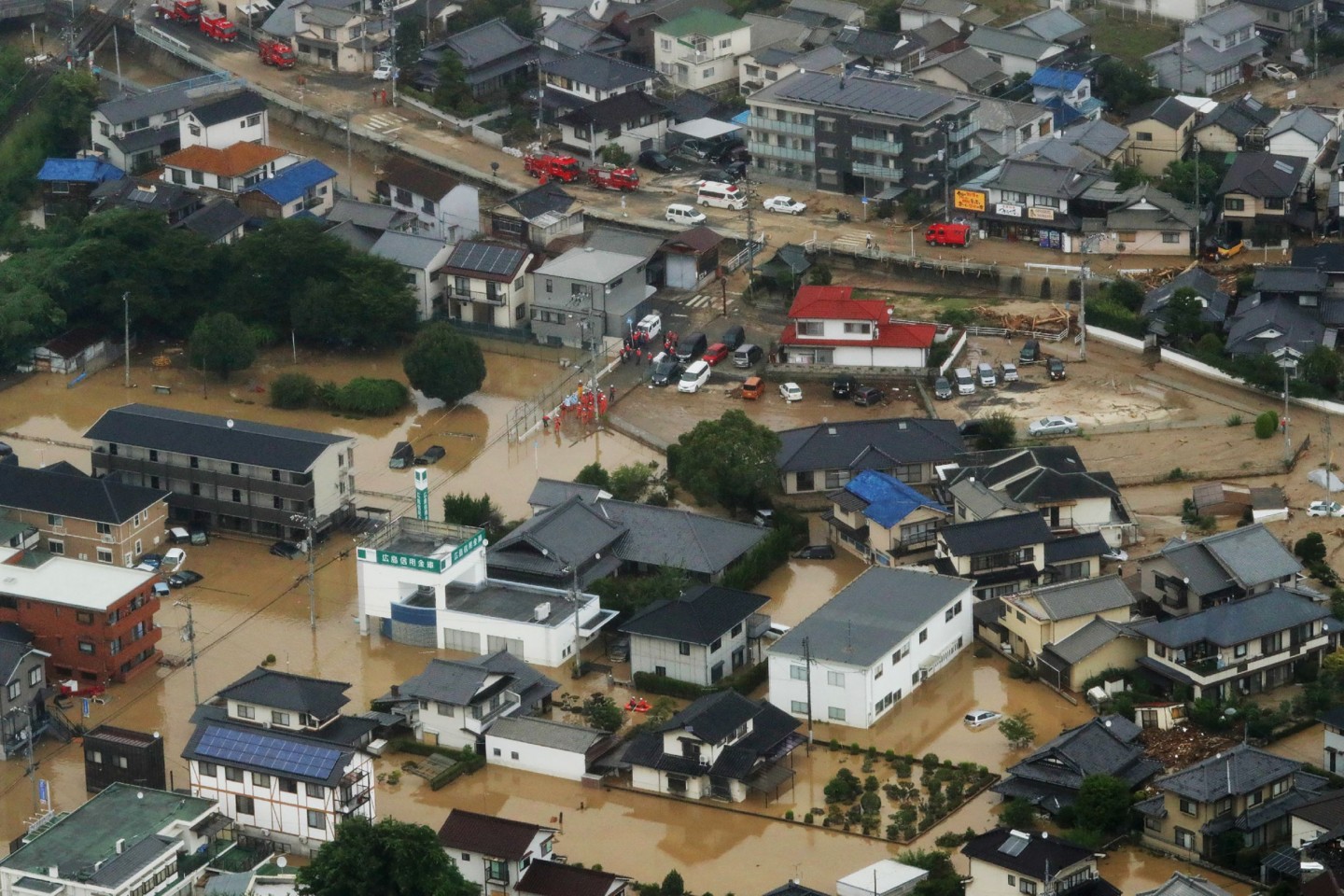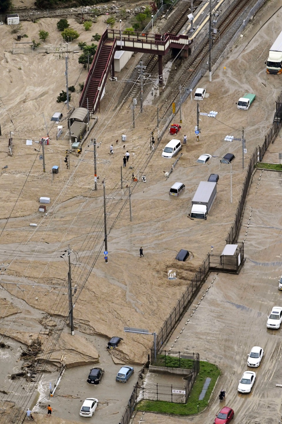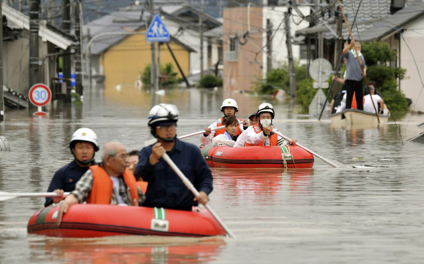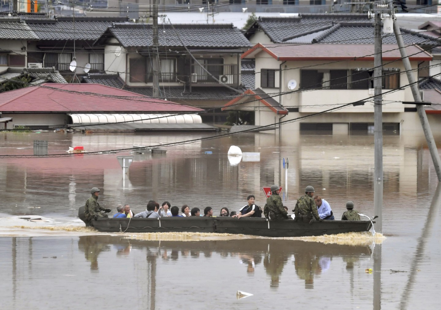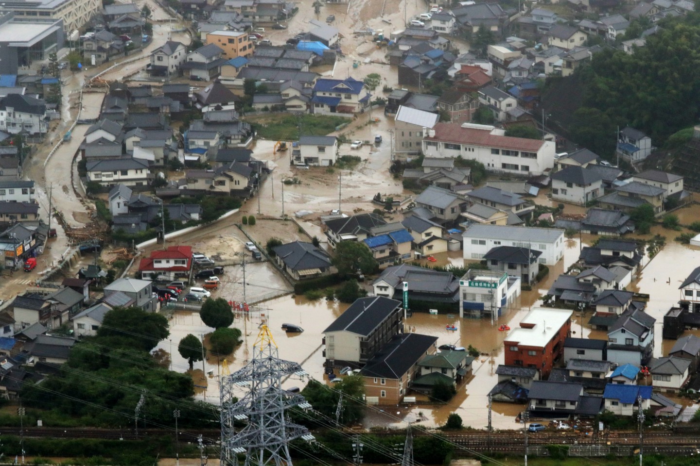 Lietusgāžu izraisītos plūdos Japānā bojāgājušo cilvēku skaits pieaudzis līdz 46, un aptuveni 50 cilvēki ir pazuduši, vēsta Japānas mediji. Raidorganizācija NHK vēsta, ka pieci cilvēki atrodas kritiskā stāvoklī slimnīcās. Hirosimas prefektūrā apstiprināts, ka miruši vismaz 22 cilvēki un 23 ir pazuduši, bet Ehimes prefektūrā Šikoku salā gājuši bojā 18 cilvēki un septiņi ir pazuduši, ziņo NHK. Japānas rietumos šīs nedēļas laikā daudzviet nolijis rekordliels daudzums nokrišņu, izraisot plūdus un dubļu nogruvumus. Miljoniem cilvēku dots rīkojums evakuēties un glābšanas darbos iesaistīta armija. Japānas premjerministrs Sindzo Abe valdības ārkārtas sēdē devis rīkojumu ministriem "noteikt par prioritāti dzīvību glābšanu un nekavējoties nosūtīt glābšanas komandas". Mobilizēti desmitiem tūkstoši glābēju, tostarp karavīru un policistu, lai meklētu un sniegtu palīdzību cietušajiem. Kioto prefektūras varasiestādes ziņoja, ka mēģina kontrolēt plūdus vairākos aizsprostos. Vairākos apgabalos bloķēti ceļi un meteorologi brīdinājuši, ka plašos valsts apvidos arī turpmāk iespējami dubļu nogruvumi un plūdi, jo lietavas turpināsies. Japānas Meteoroloģiskā aģentūra izsludinājusi brīdinājumu par spēcīgu lietu Kioto un Gifu prefektūrās. Prefektūras skāris "spēcīgs lietus, kādu tās nekad iepriekš nav pieredzējušas," preses konferencē paziņoja aģentūras pārstāvis, piebilstot, ka briesmas ir nopietnas. Šikoku un Kjusju dienvidos meteorologi svētdien prognozē līdz 100 milimetriem lielus nokrišņus, bet Tokai reģionā - līdz 200 milimetriem.