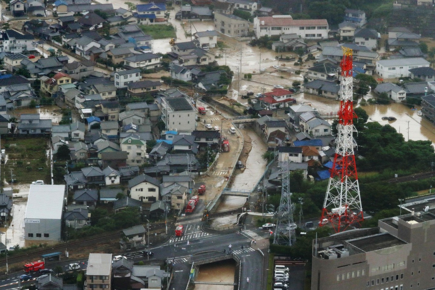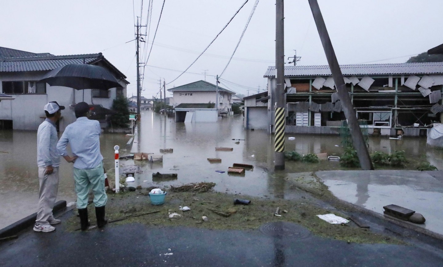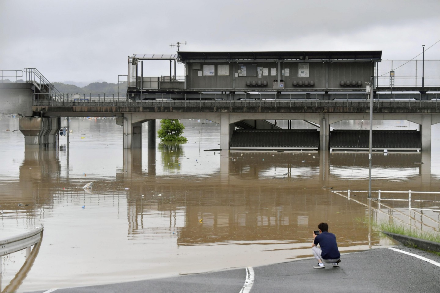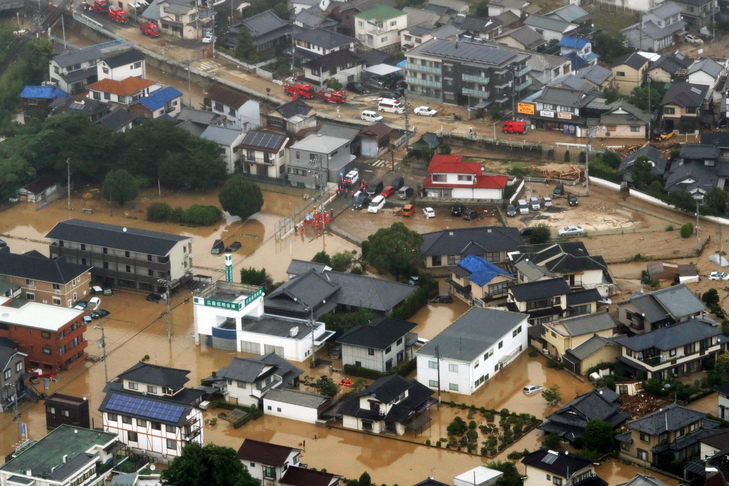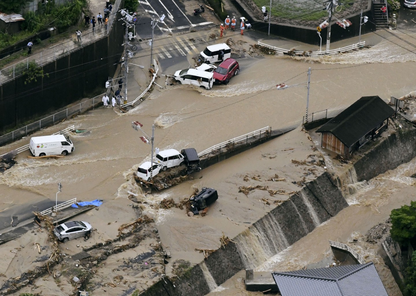Lietusgāžu izraisītos plūdos Japānā bojāgājušo cilvēku skaits pieaudzis līdz 46, un aptuveni 50 cilvēki ir pazuduši, vēsta Japānas mediji. Raidorganizācija NHK vēsta, ka pieci cilvēki atrodas kritiskā stāvoklī slimnīcās. Hirosimas prefektūrā apstiprināts, ka miruši vismaz 22 cilvēki un 23 ir pazuduši, bet Ehimes prefektūrā Šikoku salā gājuši bojā 18 cilvēki un septiņi ir pazuduši, ziņo NHK. Japānas rietumos šīs nedēļas laikā daudzviet nolijis rekordliels daudzums nokrišņu, izraisot plūdus un dubļu nogruvumus. Miljoniem cilvēku dots rīkojums evakuēties un glābšanas darbos iesaistīta armija. Japānas premjerministrs Sindzo Abe valdības ārkārtas sēdē devis rīkojumu ministriem "noteikt par prioritāti dzīvību glābšanu un nekavējoties nosūtīt glābšanas komandas". Mobilizēti desmitiem tūkstoši glābēju, tostarp karavīru un policistu, lai meklētu un sniegtu palīdzību cietušajiem. Kioto prefektūras varasiestādes ziņoja, ka mēģina kontrolēt plūdus vairākos aizsprostos. Vairākos apgabalos bloķēti ceļi un meteorologi brīdinājuši, ka plašos valsts apvidos arī turpmāk iespējami dubļu nogruvumi un plūdi, jo lietavas turpināsies. Japānas Meteoroloģiskā aģentūra izsludinājusi brīdinājumu par spēcīgu lietu Kioto un Gifu prefektūrās. Prefektūras skāris "spēcīgs lietus, kādu tās nekad iepriekš nav pieredzējušas," preses konferencē paziņoja aģentūras pārstāvis, piebilstot, ka briesmas ir nopietnas. Šikoku un Kjusju dienvidos meteorologi svētdien prognozē līdz 100 milimetriem lielus nokrišņus, bet Tokai reģionā - līdz 200 milimetriem.