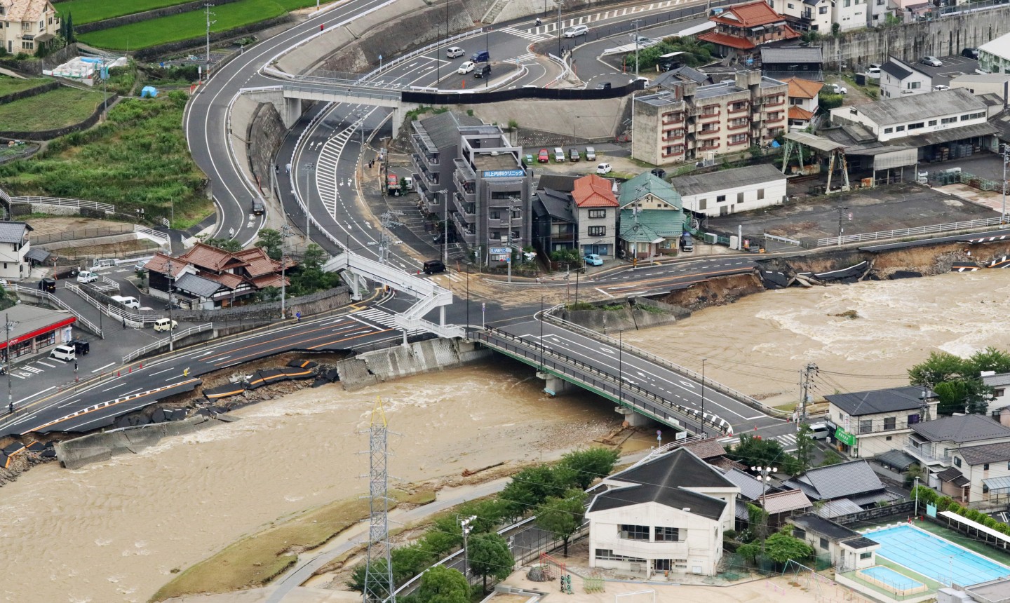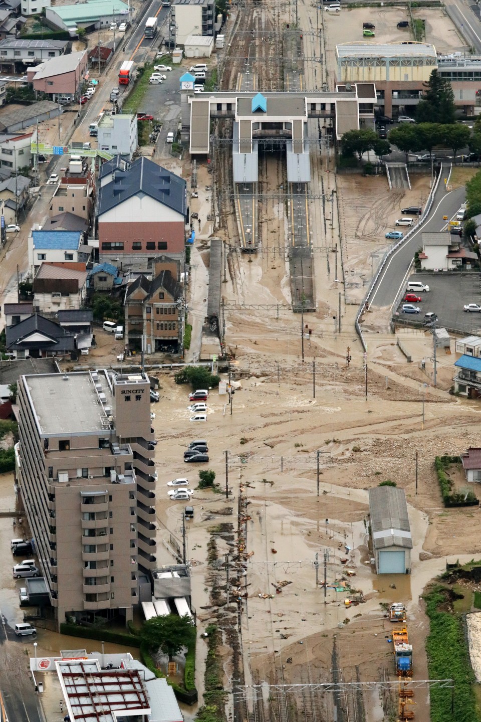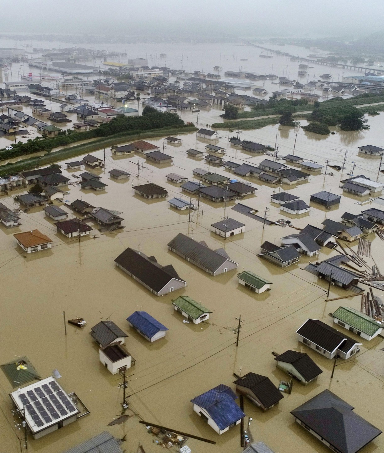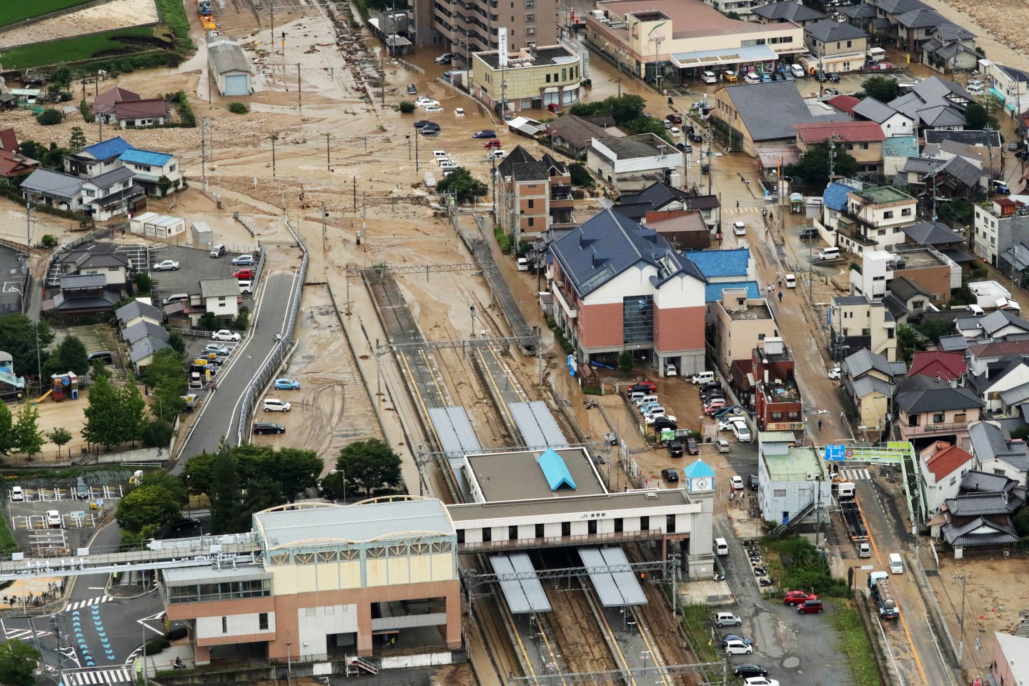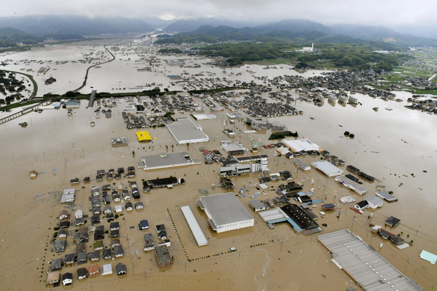 Lietusgāžu izraisītos plūdos Japānā bojāgājušo cilvēku skaits pieaudzis līdz 46, un aptuveni 50 cilvēki ir pazuduši, vēsta Japānas mediji. Raidorganizācija NHK vēsta, ka pieci cilvēki atrodas kritiskā stāvoklī slimnīcās. Hirosimas prefektūrā apstiprināts, ka miruši vismaz 22 cilvēki un 23 ir pazuduši, bet Ehimes prefektūrā Šikoku salā gājuši bojā 18 cilvēki un septiņi ir pazuduši, ziņo NHK. Japānas rietumos šīs nedēļas laikā daudzviet nolijis rekordliels daudzums nokrišņu, izraisot plūdus un dubļu nogruvumus. Miljoniem cilvēku dots rīkojums evakuēties un glābšanas darbos iesaistīta armija. Japānas premjerministrs Sindzo Abe valdības ārkārtas sēdē devis rīkojumu ministriem "noteikt par prioritāti dzīvību glābšanu un nekavējoties nosūtīt glābšanas komandas". Mobilizēti desmitiem tūkstoši glābēju, tostarp karavīru un policistu, lai meklētu un sniegtu palīdzību cietušajiem. Kioto prefektūras varasiestādes ziņoja, ka mēģina kontrolēt plūdus vairākos aizsprostos. Vairākos apgabalos bloķēti ceļi un meteorologi brīdinājuši, ka plašos valsts apvidos arī turpmāk iespējami dubļu nogruvumi un plūdi, jo lietavas turpināsies. Japānas Meteoroloģiskā aģentūra izsludinājusi brīdinājumu par spēcīgu lietu Kioto un Gifu prefektūrās. Prefektūras skāris "spēcīgs lietus, kādu tās nekad iepriekš nav pieredzējušas," preses konferencē paziņoja aģentūras pārstāvis, piebilstot, ka briesmas ir nopietnas. Šikoku un Kjusju dienvidos meteorologi svētdien prognozē līdz 100 milimetriem lielus nokrišņus, bet Tokai reģionā - līdz 200 milimetriem.