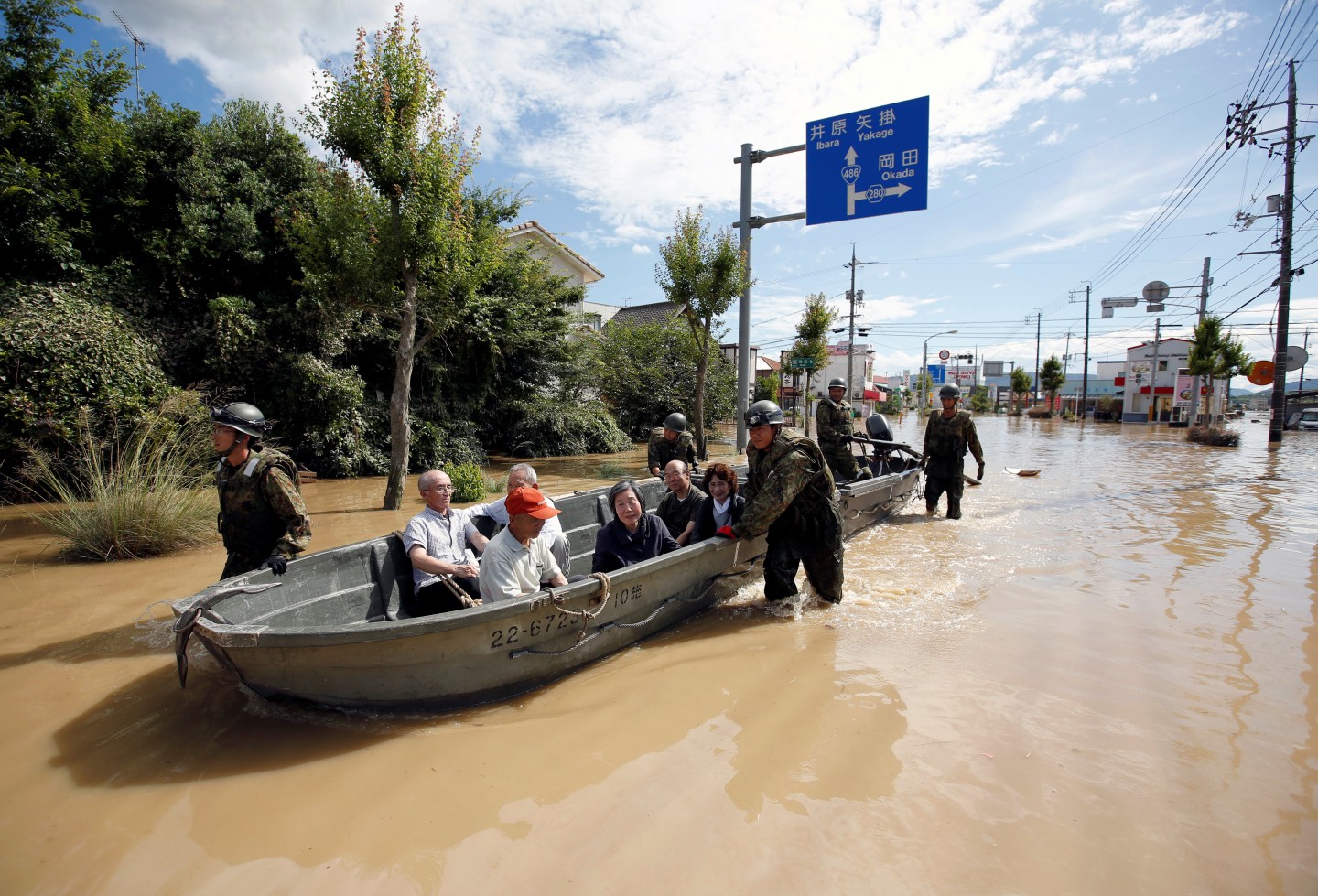 Japānā lietusgāžu izraisītajos plūdos un zemes nogruvumos bojāgājušo skaits pieaudzis līdz 76, bet pazuduši bez vēsts 92 cilvēki, vēsta ziņu aģentūra LETA. Mobilizēti desmitiem tūkstoši glābēju, tostarp karavīri un policisti. Glābšanas darbos iesaistīti 40 helikopteri.