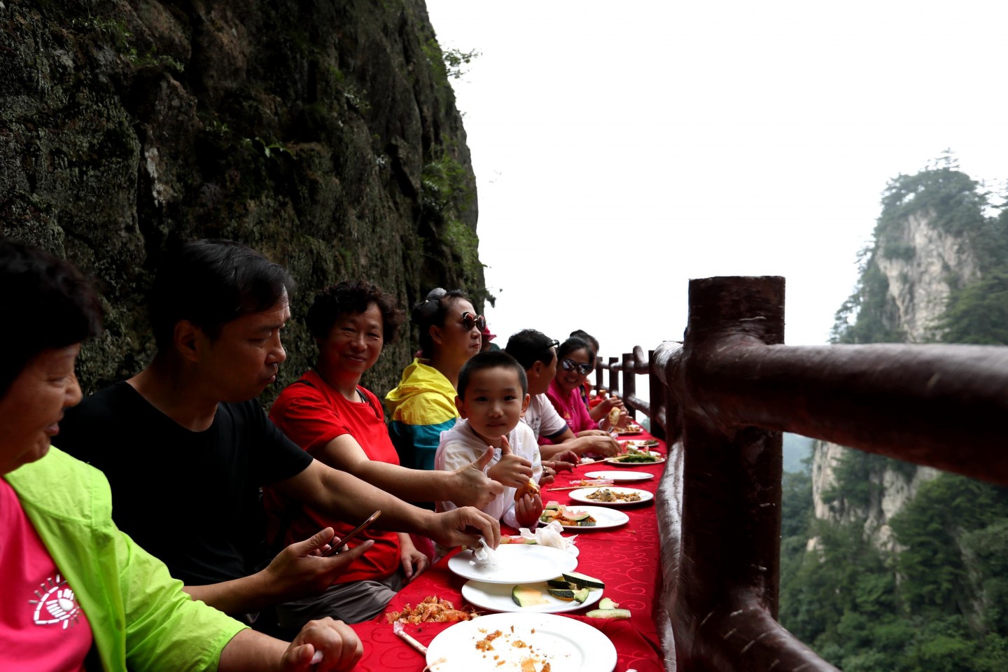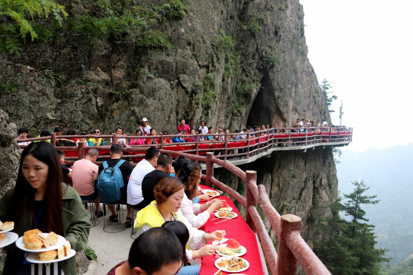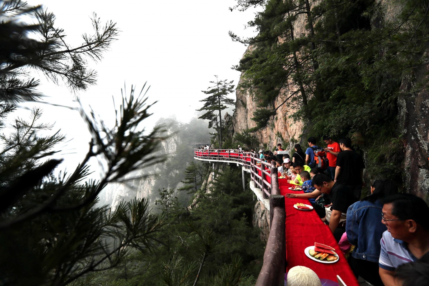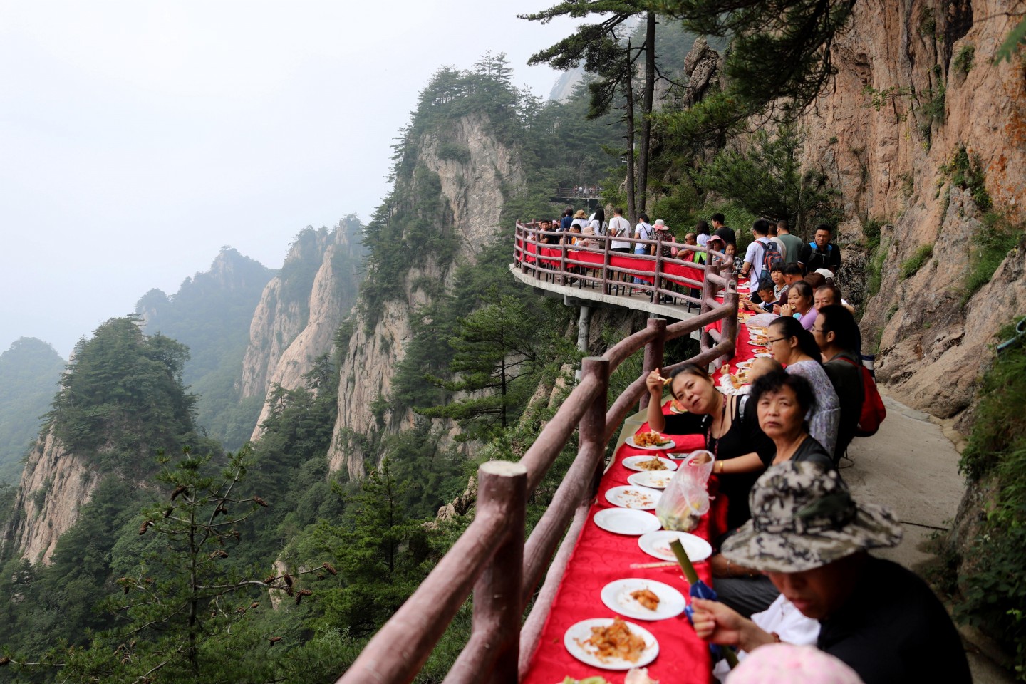 Pie klints pašas malas Henanas provincē Ķīnā noticis vērienīgs bankets.