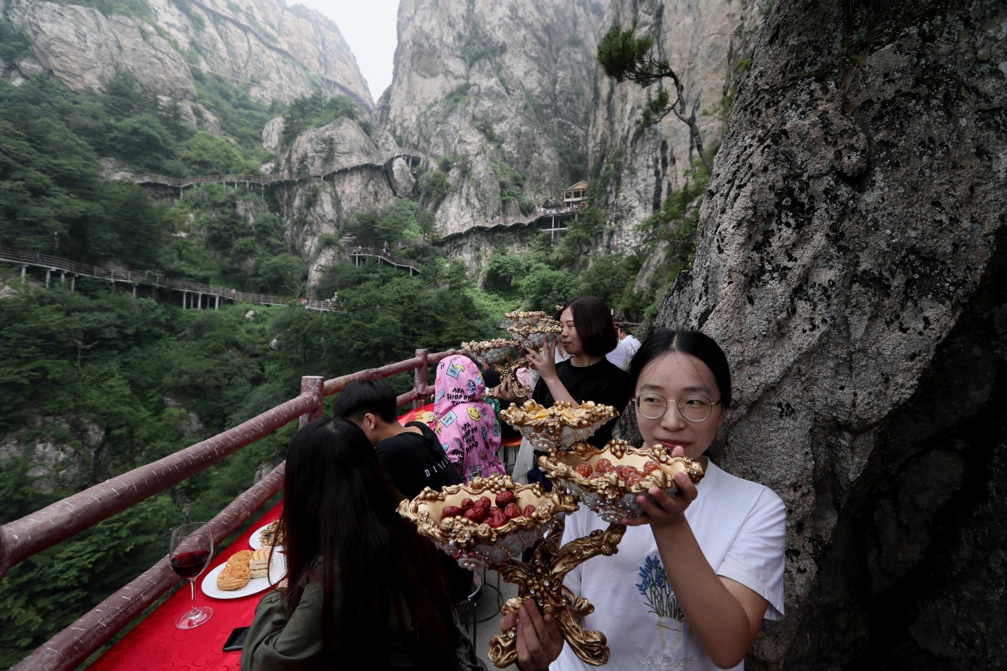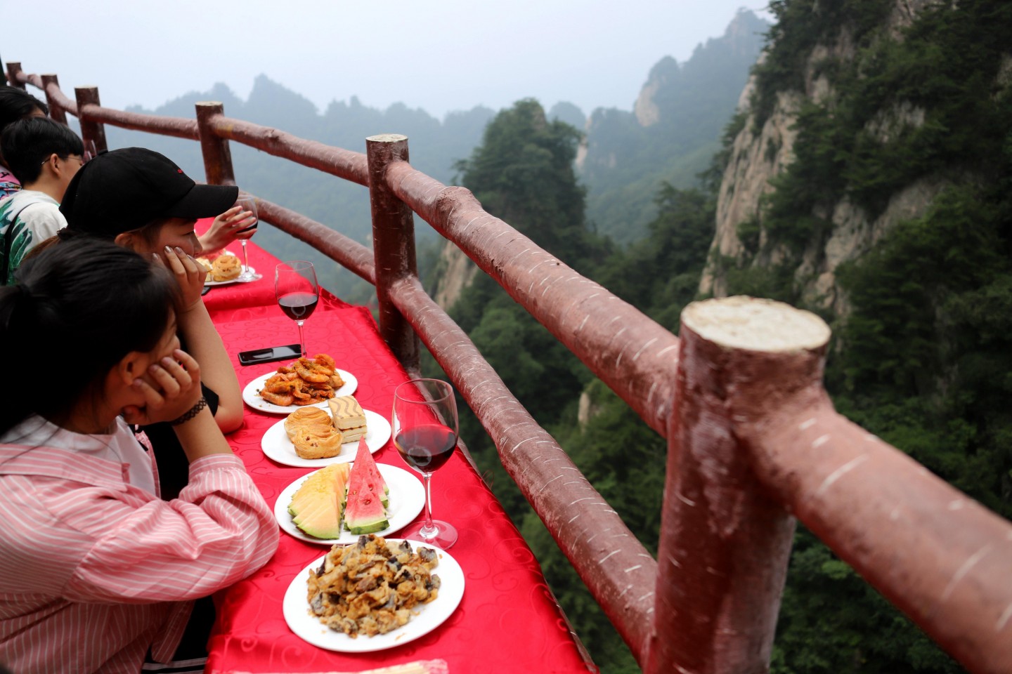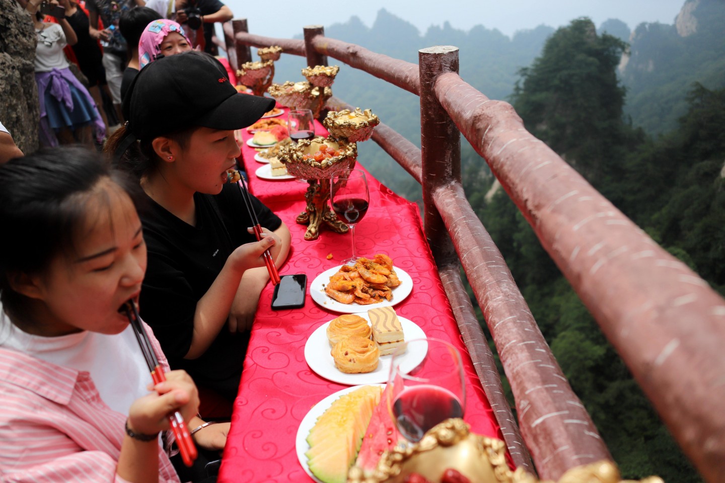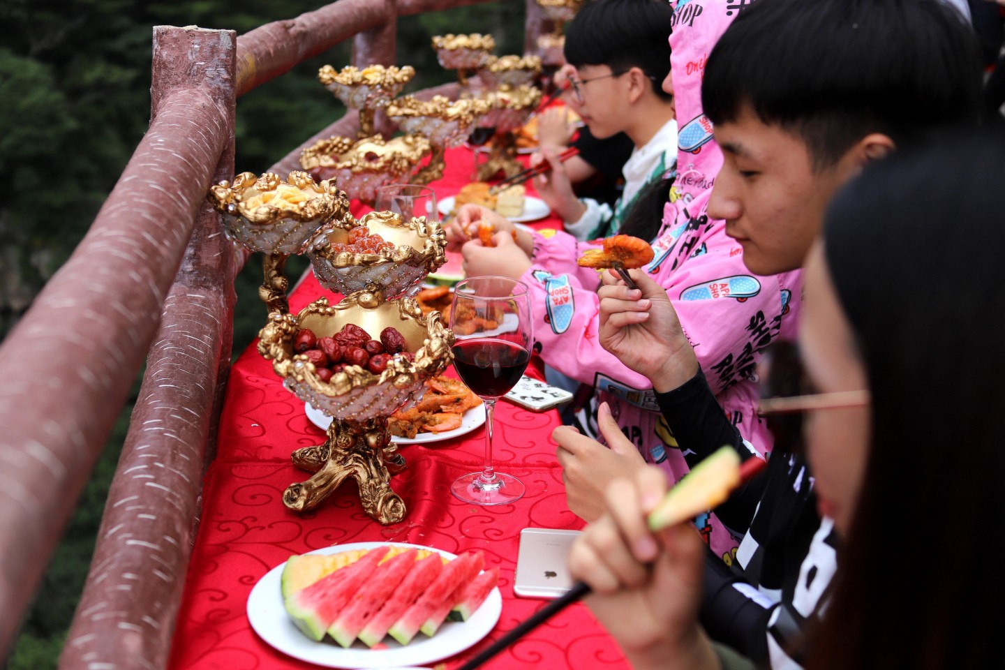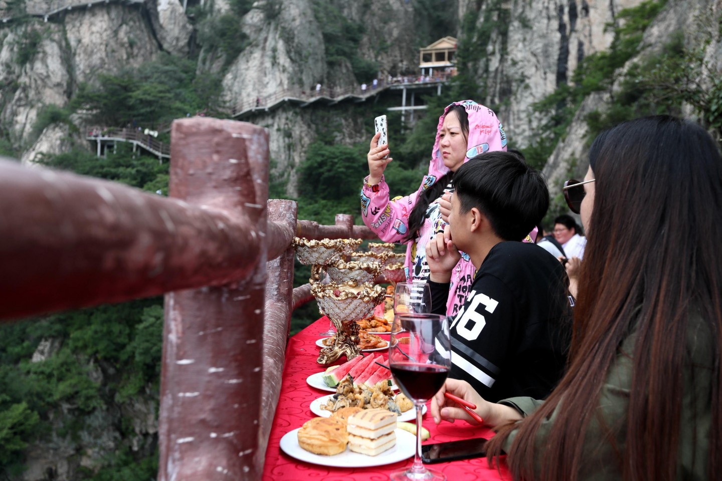 Pie klints pašas malas Henanas provincē Ķīnā noticis vērienīgs bankets.
