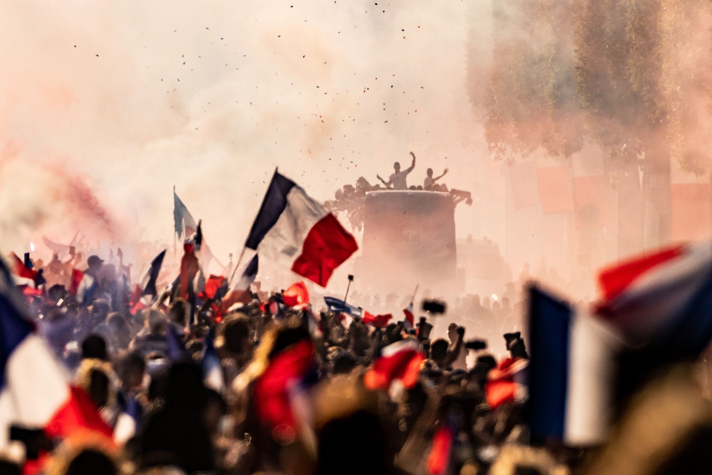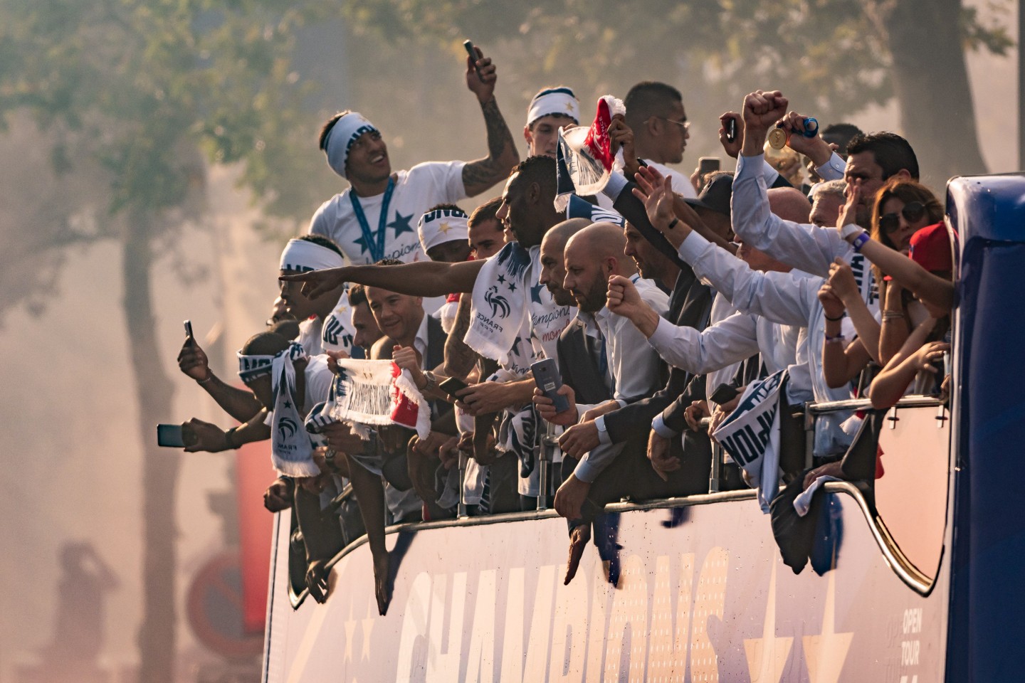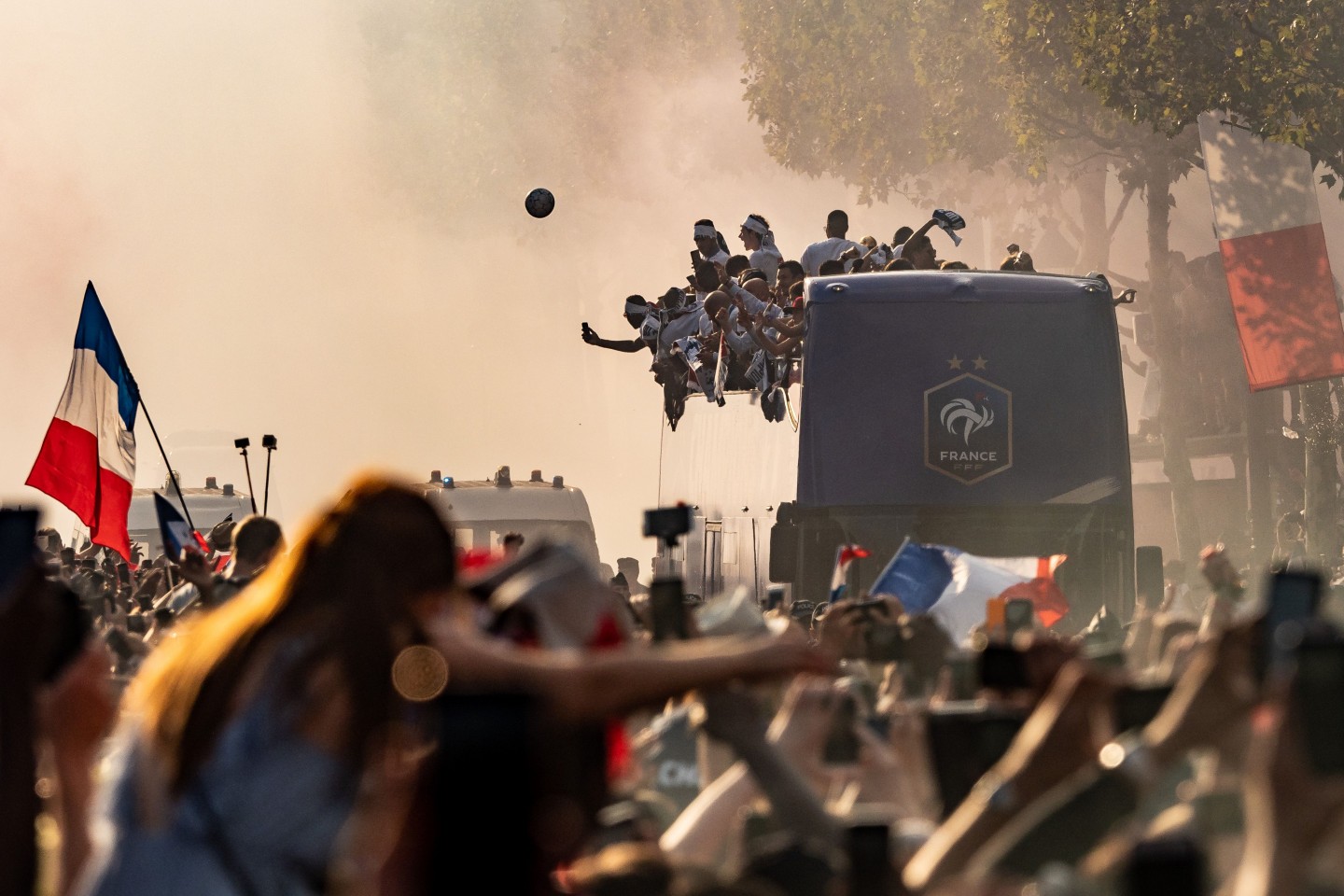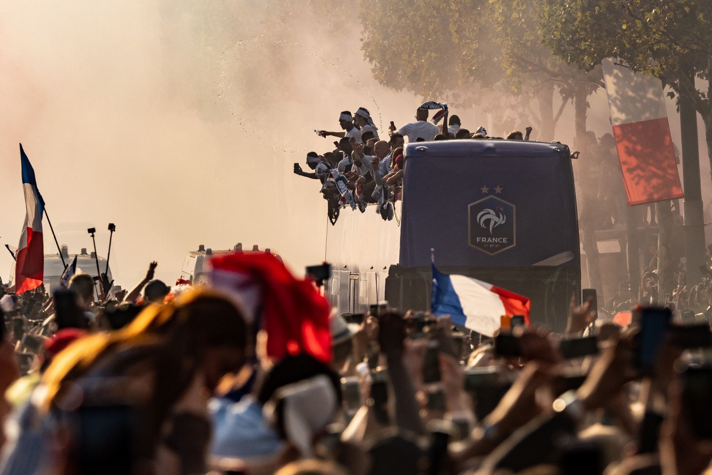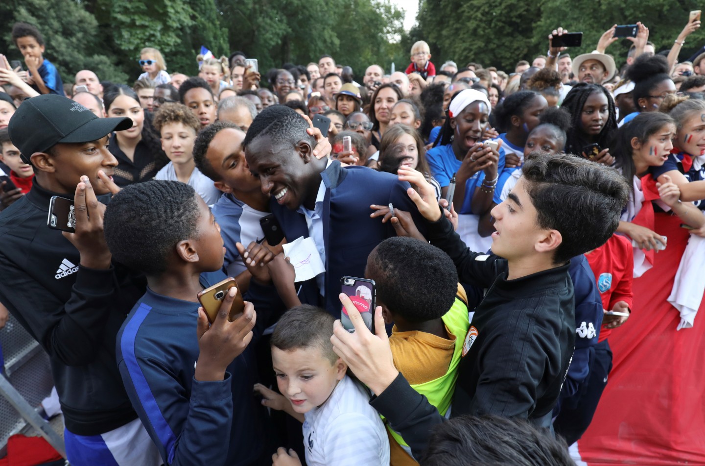 Pirmdienas pēcpusdienā vairāki tūkstoši cilvēku Parīzē sagaidīja Francijas futbola izlasi, kura mājās atgriezās ar Pasaules kausa trofeju.