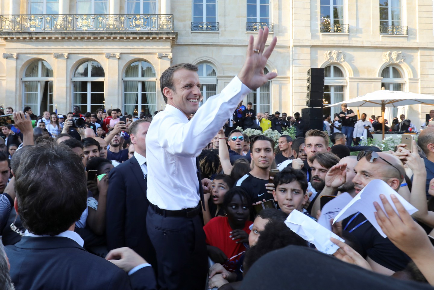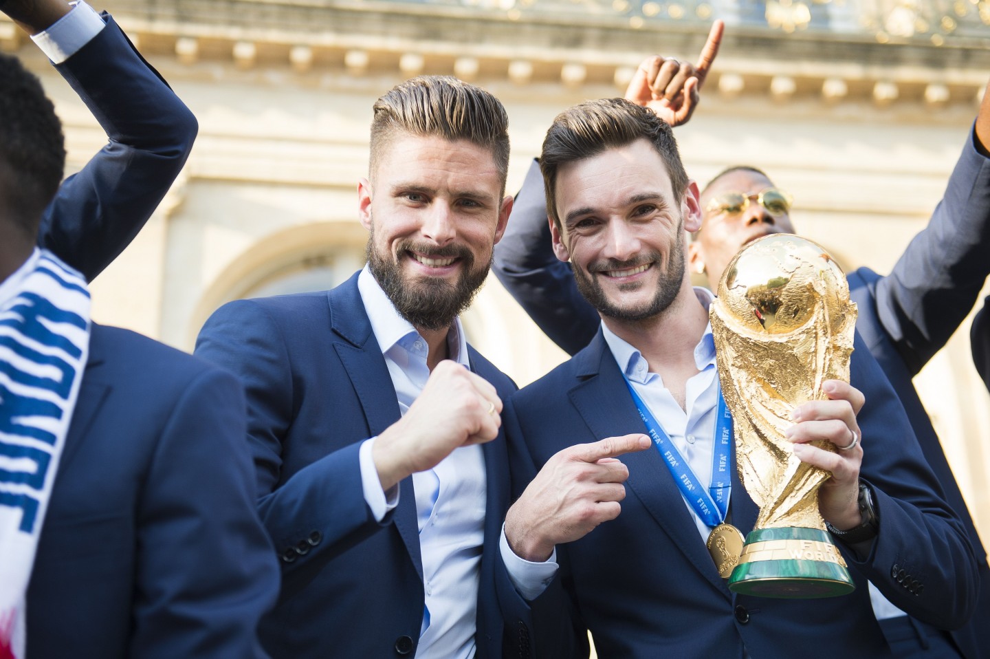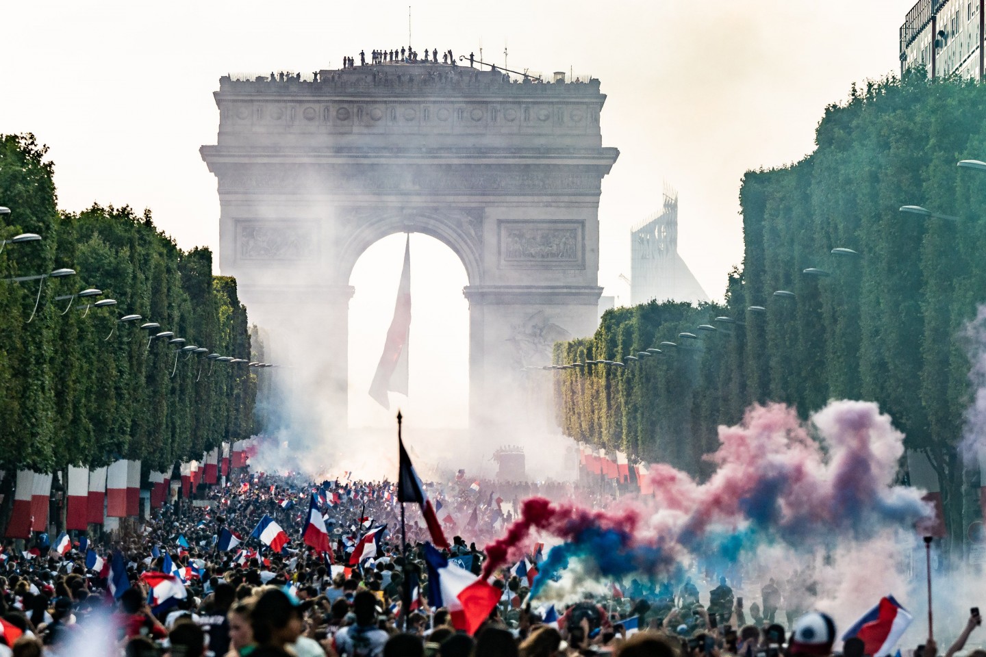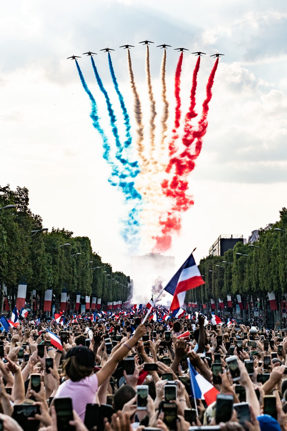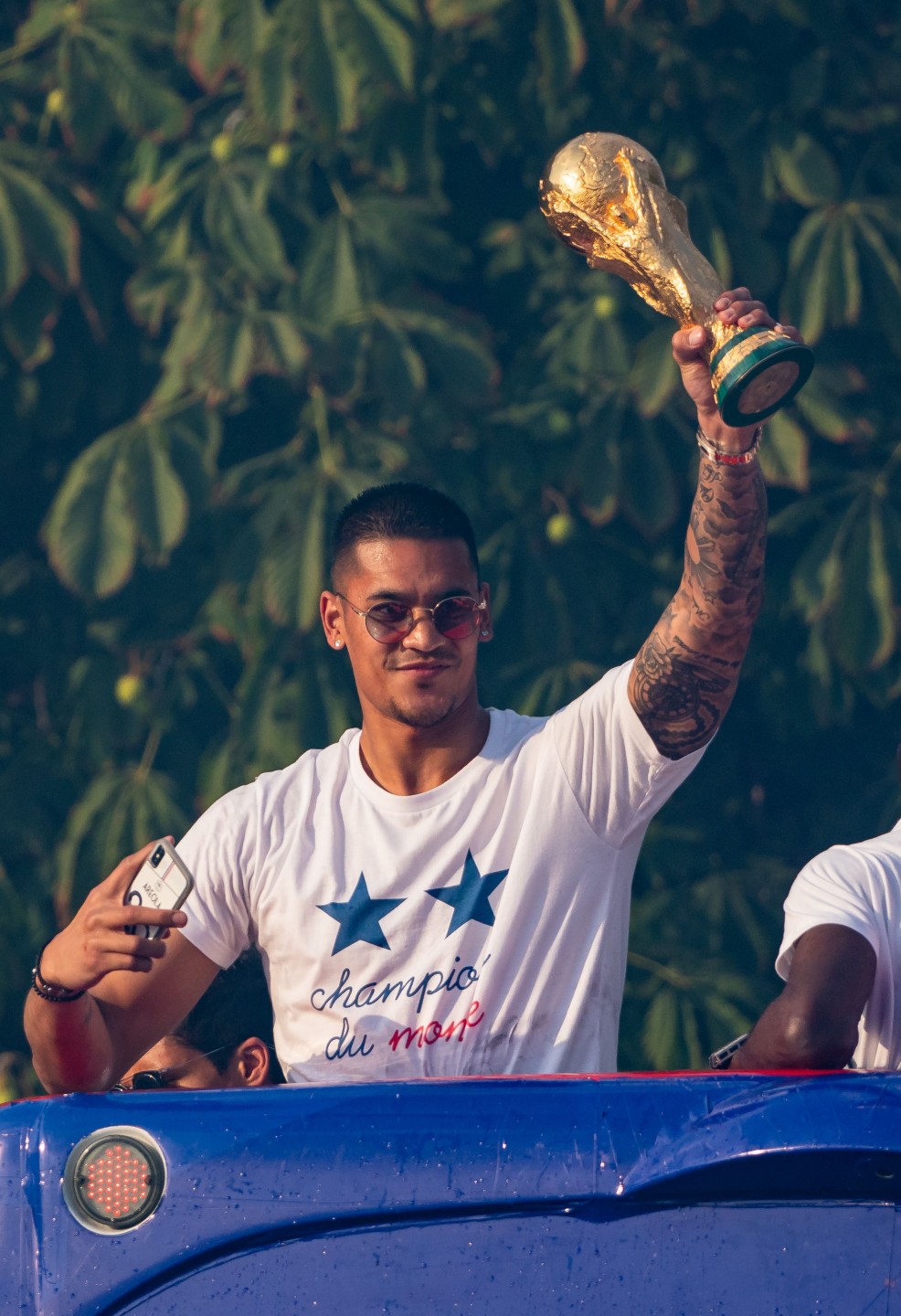 Pirmdienas pēcpusdienā vairāki tūkstoši cilvēku Parīzē sagaidīja Francijas futbola izlasi, kura mājās atgriezās ar Pasaules kausa trofeju.