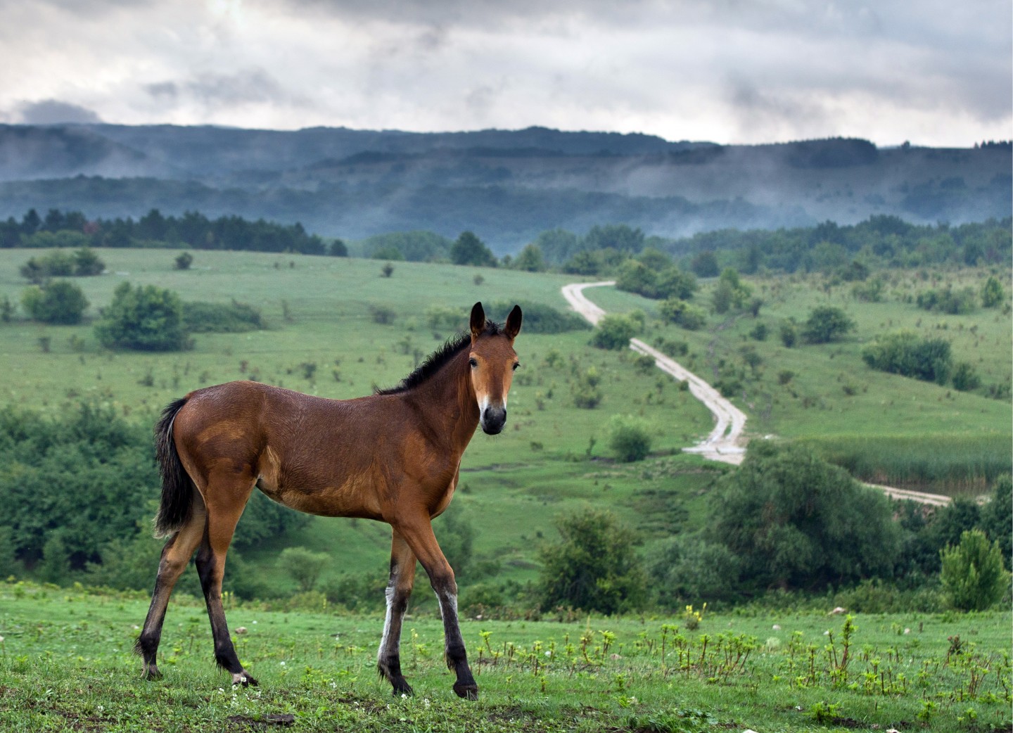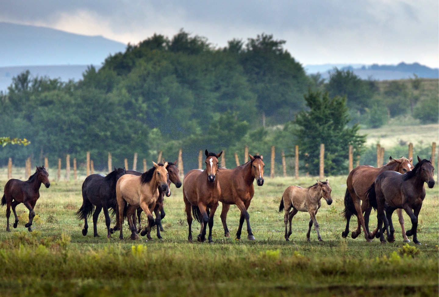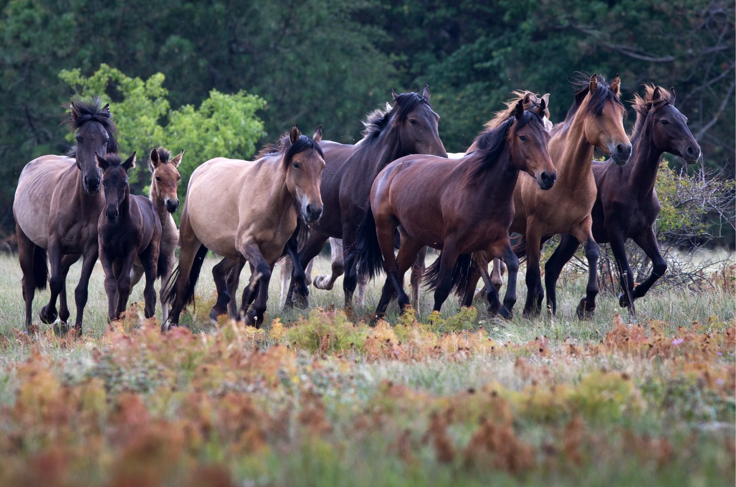 Fotogrāfs iemūžinājis, kā kādam uzņēmuma piederošos laukos Krimā ganās zirgi.