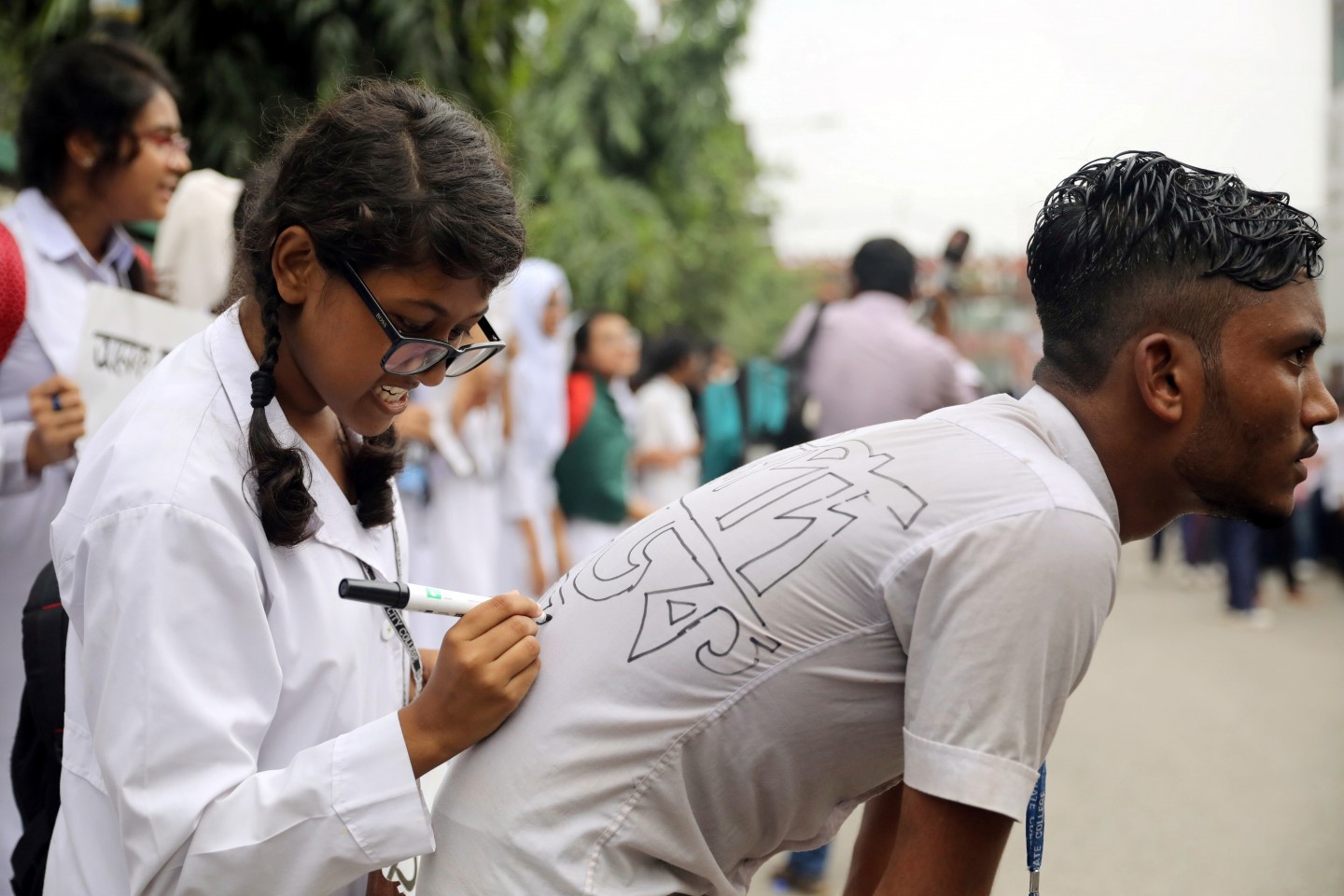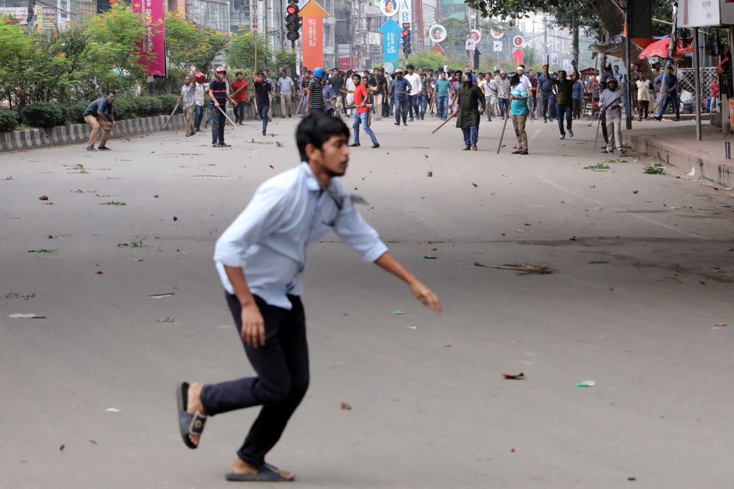 Aptuveni 25 studenti ir ievainoti sadursmēs Bangladešā, kur septīto dienu notiek bezprecedenta jauniešu protesti. Tūkstošiem skolas jauniešu izgājuši Dakas ielās, lai pieprasītu drošības uzlabošanu uz ceļiem pēc tam, kad pagājušajā svētdienā nāvējoši tika notriekti divi jaunieši.