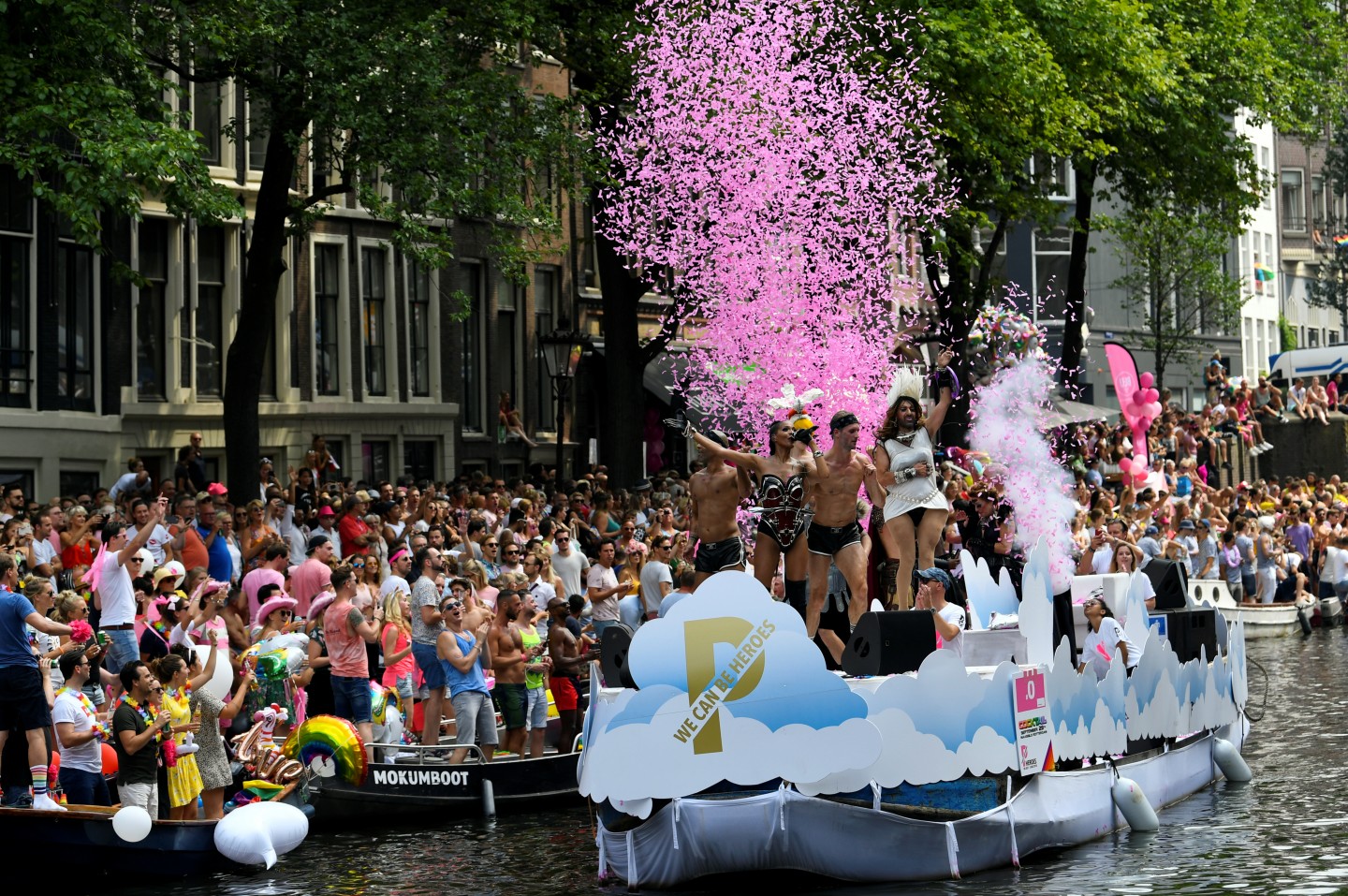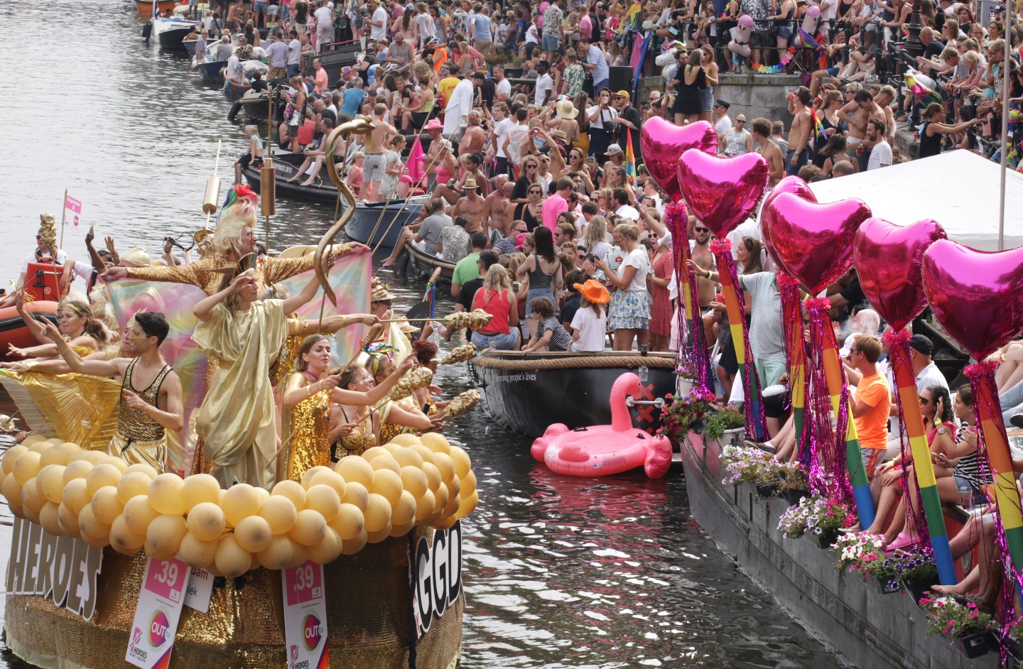 Šajā nedēļas nogalē Amsterdamā noticis praids, kuram par godu rīkota arī krāšņa kanāla regate.
