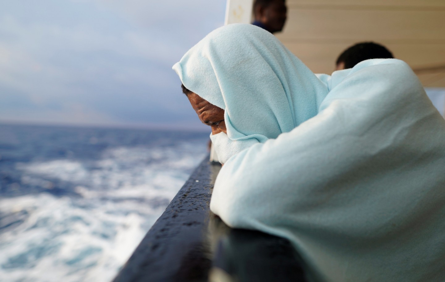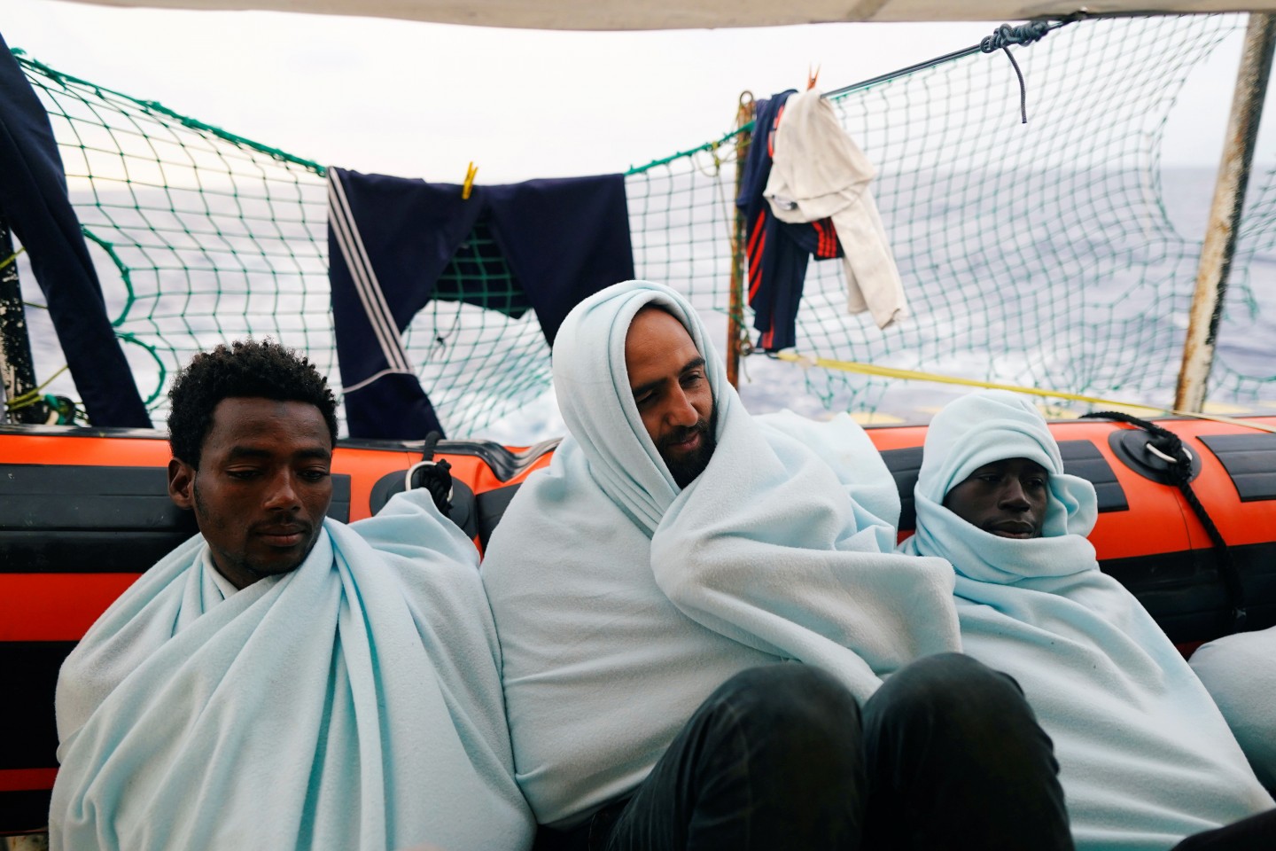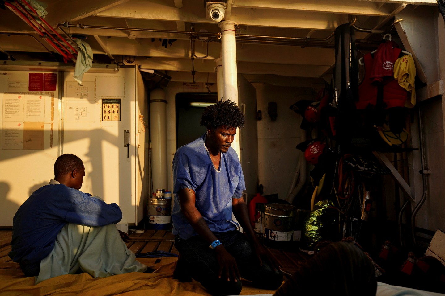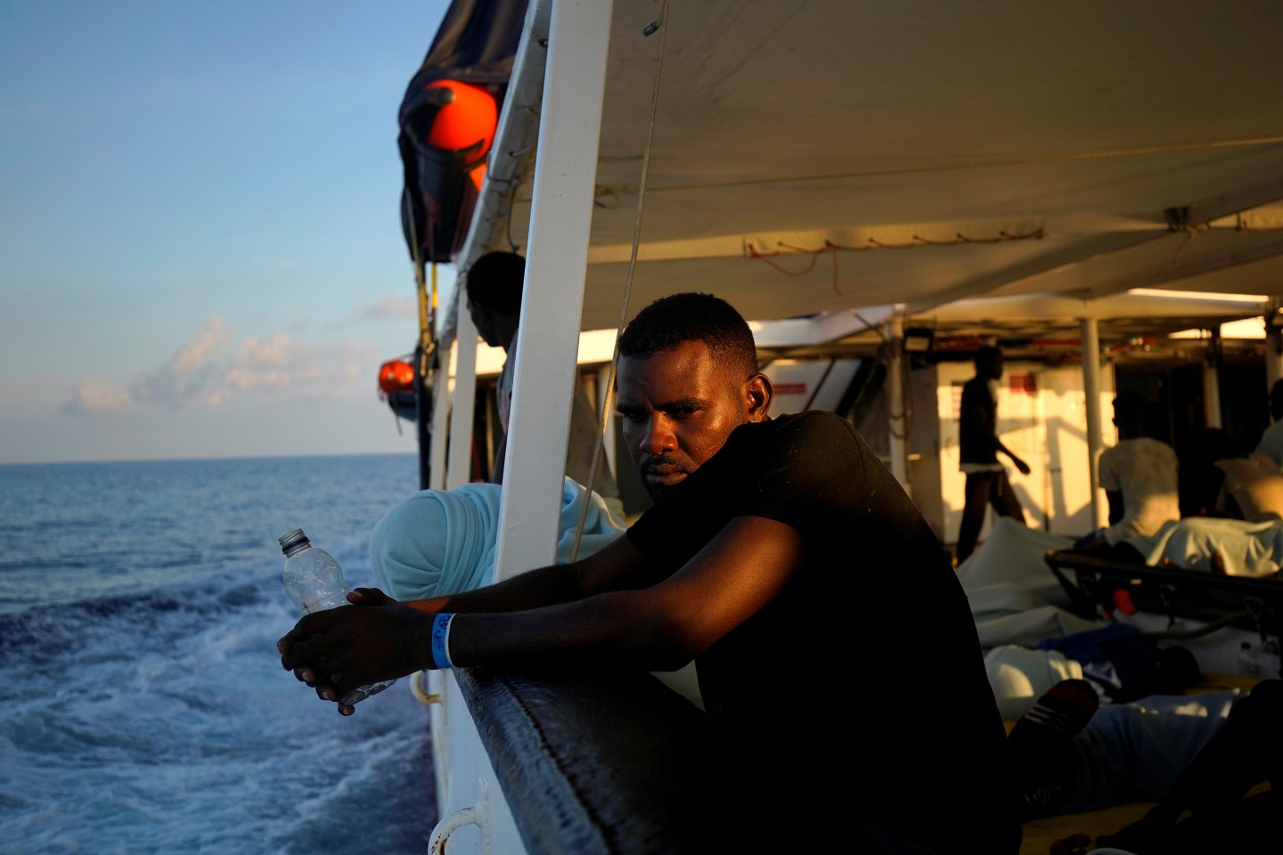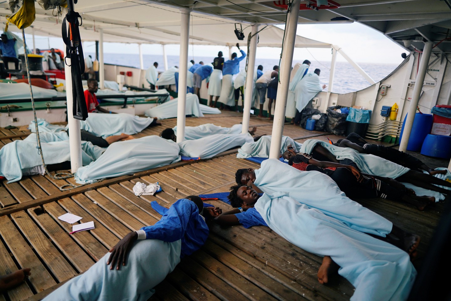 Kārtējā Vidusjūrā izglābtā migrantu grupa iemūžināta fotogrāfijās pirms nonākšanas Eiropā, šajā gadījumā - Spānijas pilsētas Malagas ostā.