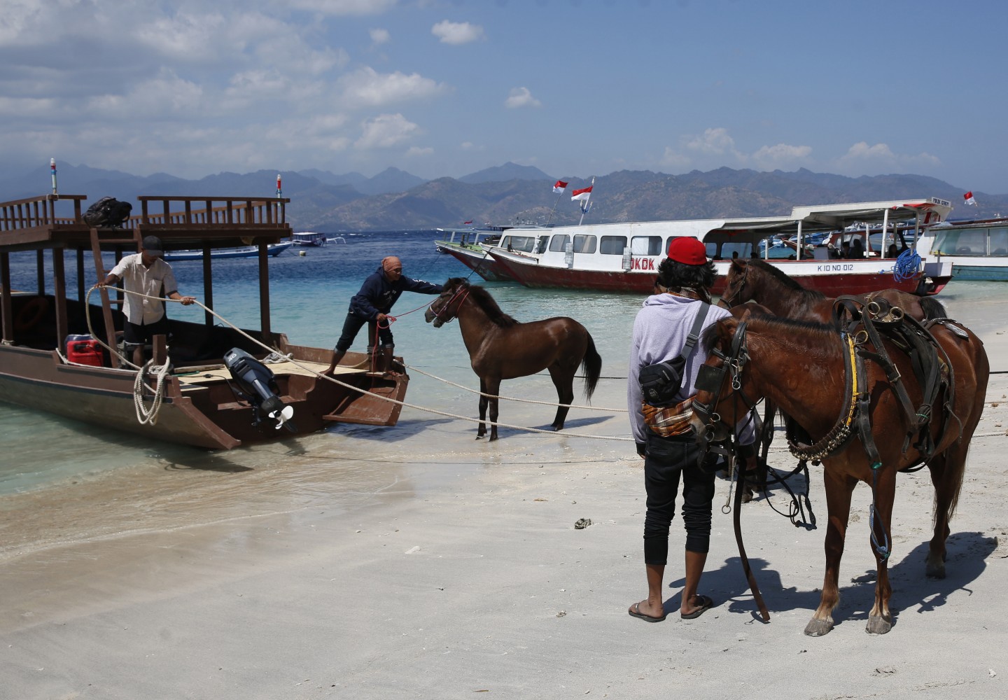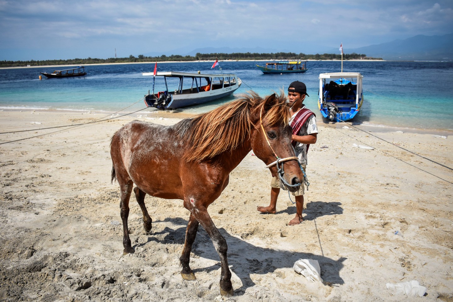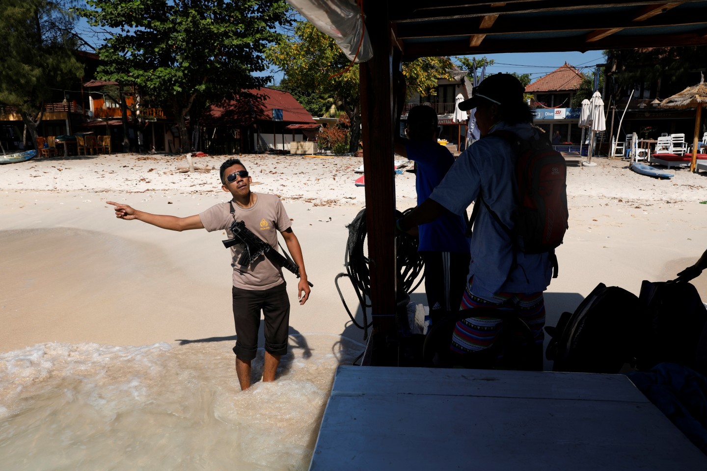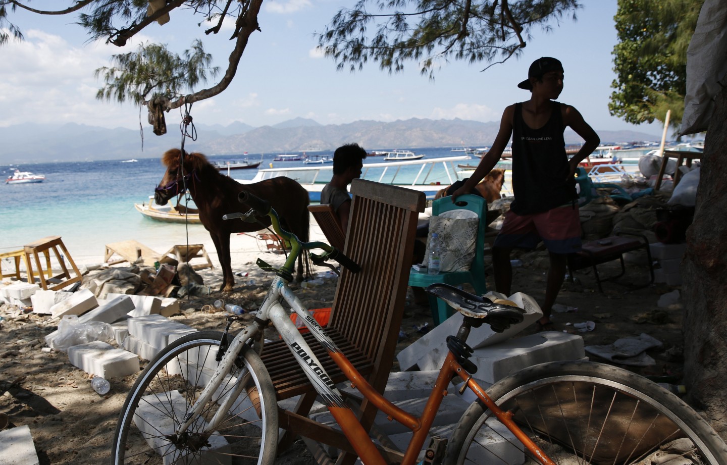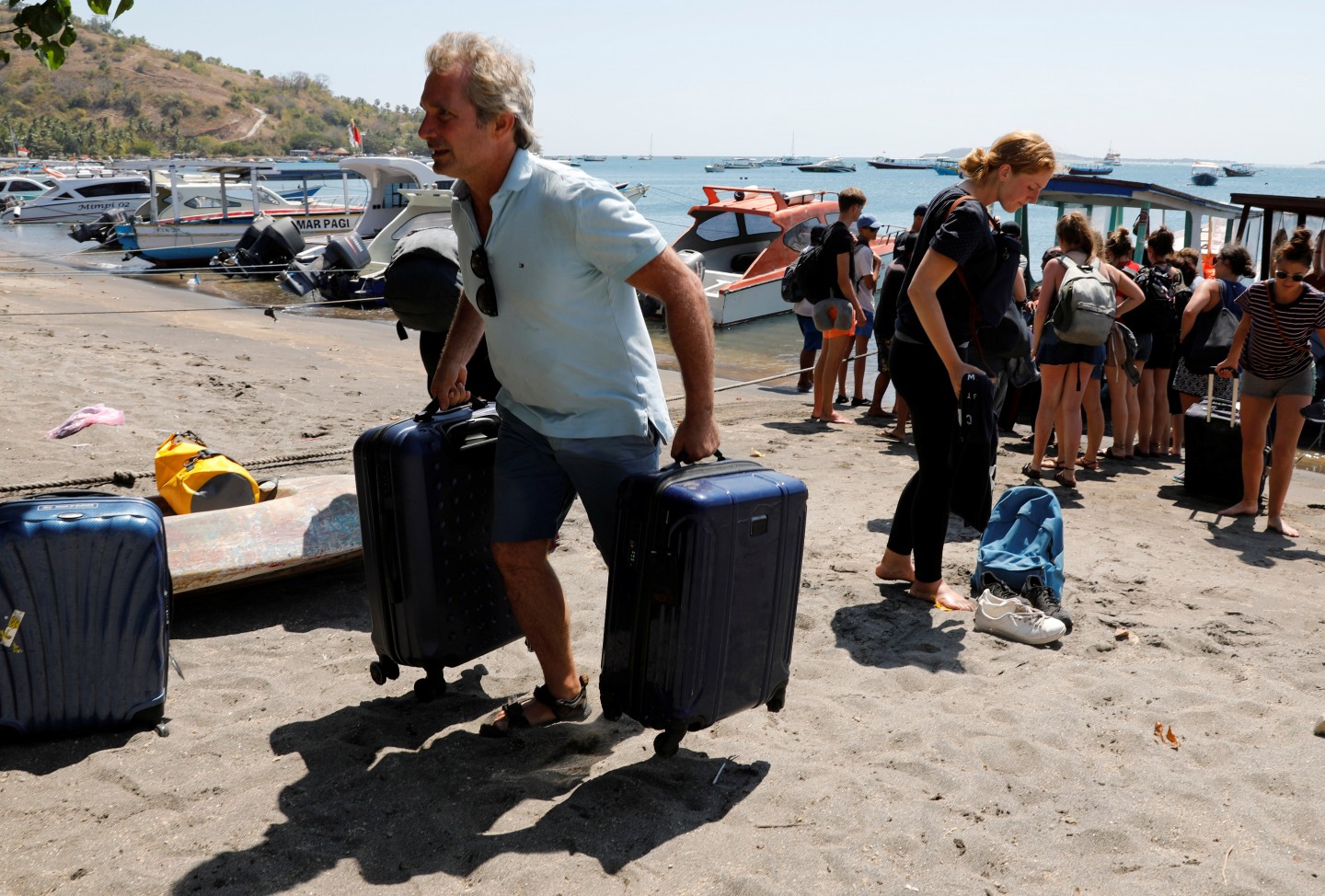Dienu pēc 6,9 magnitūdas spēcīgas zemestrīces, Indonēzijas salas Gili Trawangan tikuši evakuēti iedzīvotāji.
