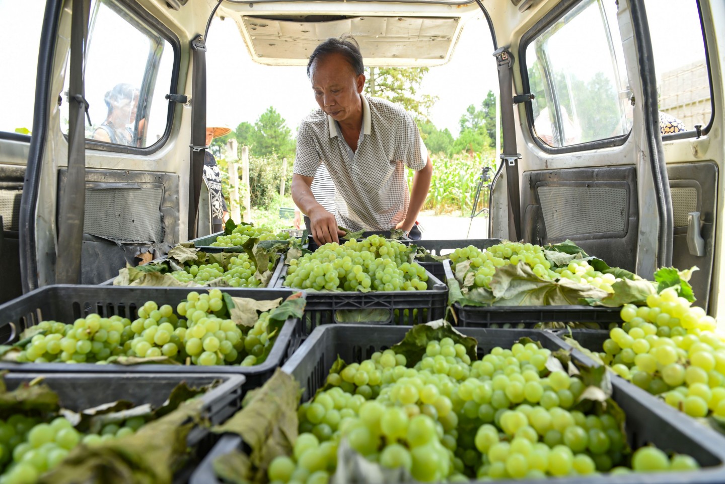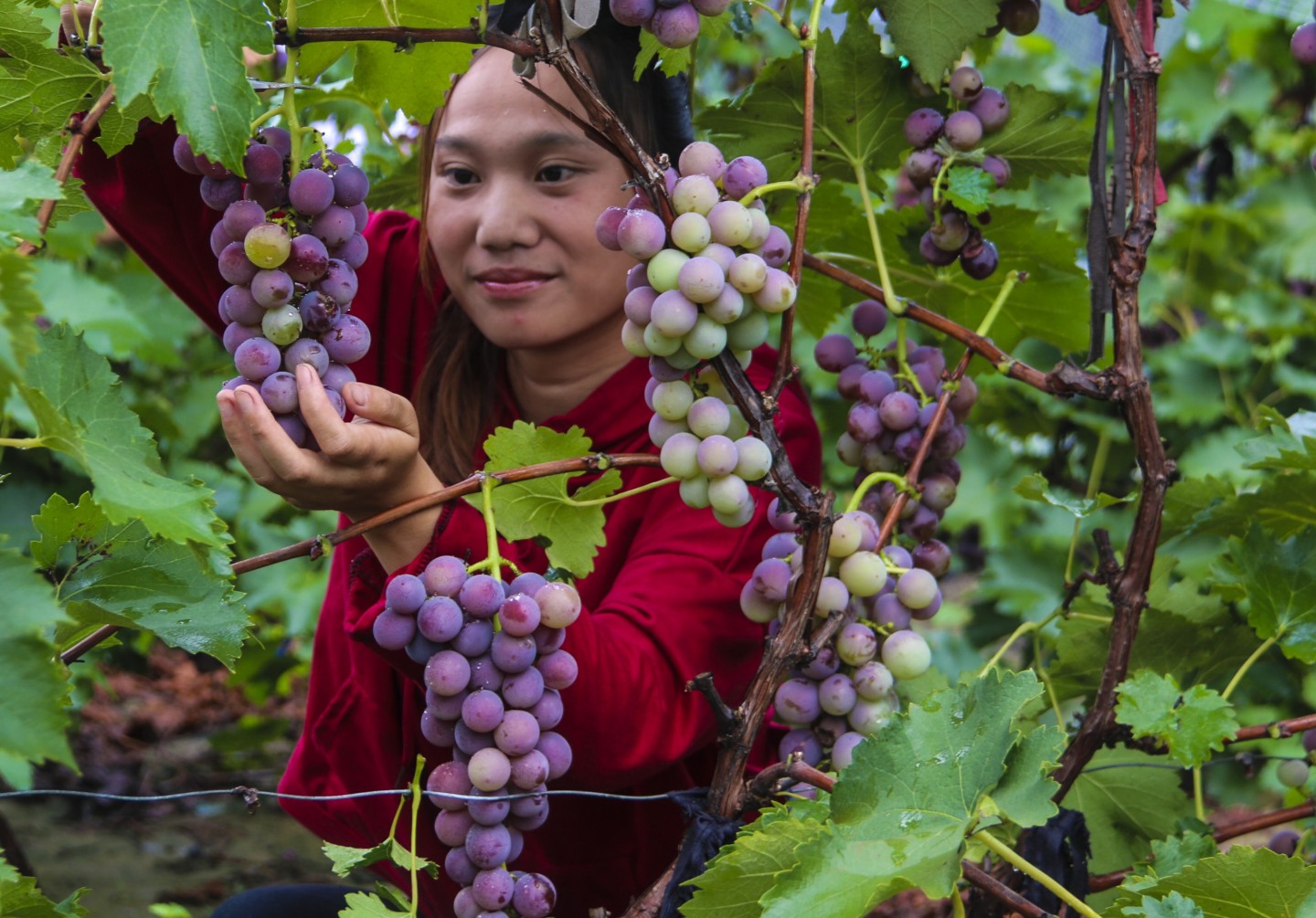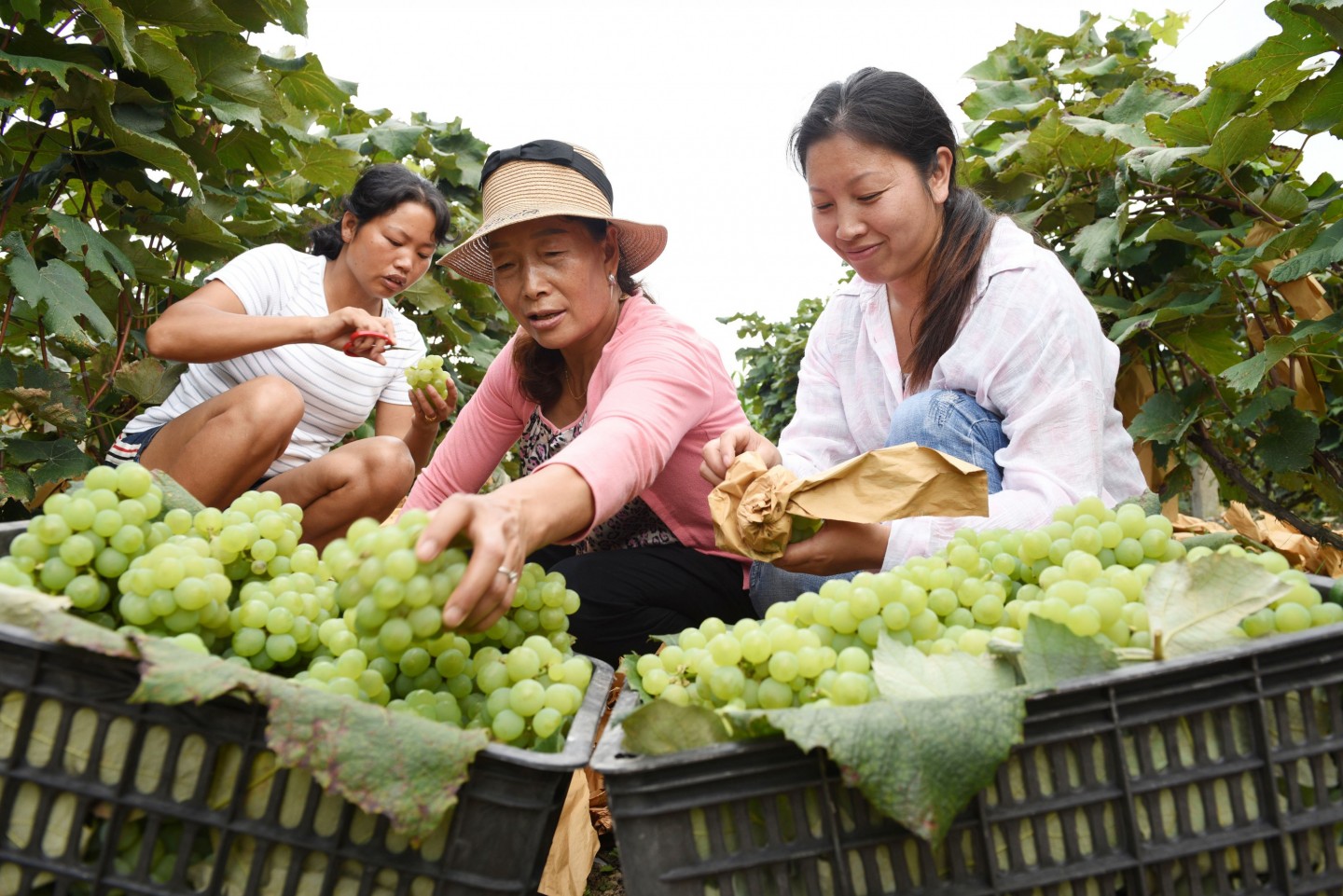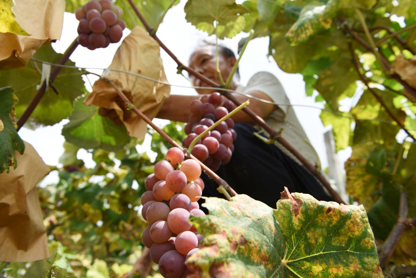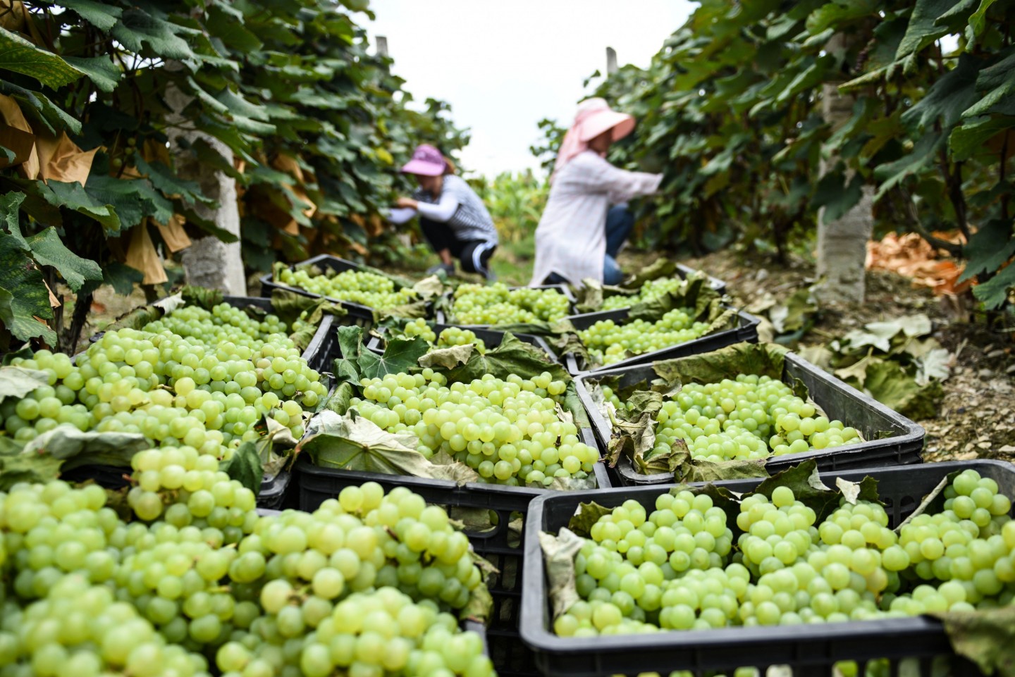 Kādā Ķīnas provincē notikuši vīnogu ražas vākšanas darbi. Gardās ogas tālāk tiks izmantotas pārtikas produktu ražošanai.