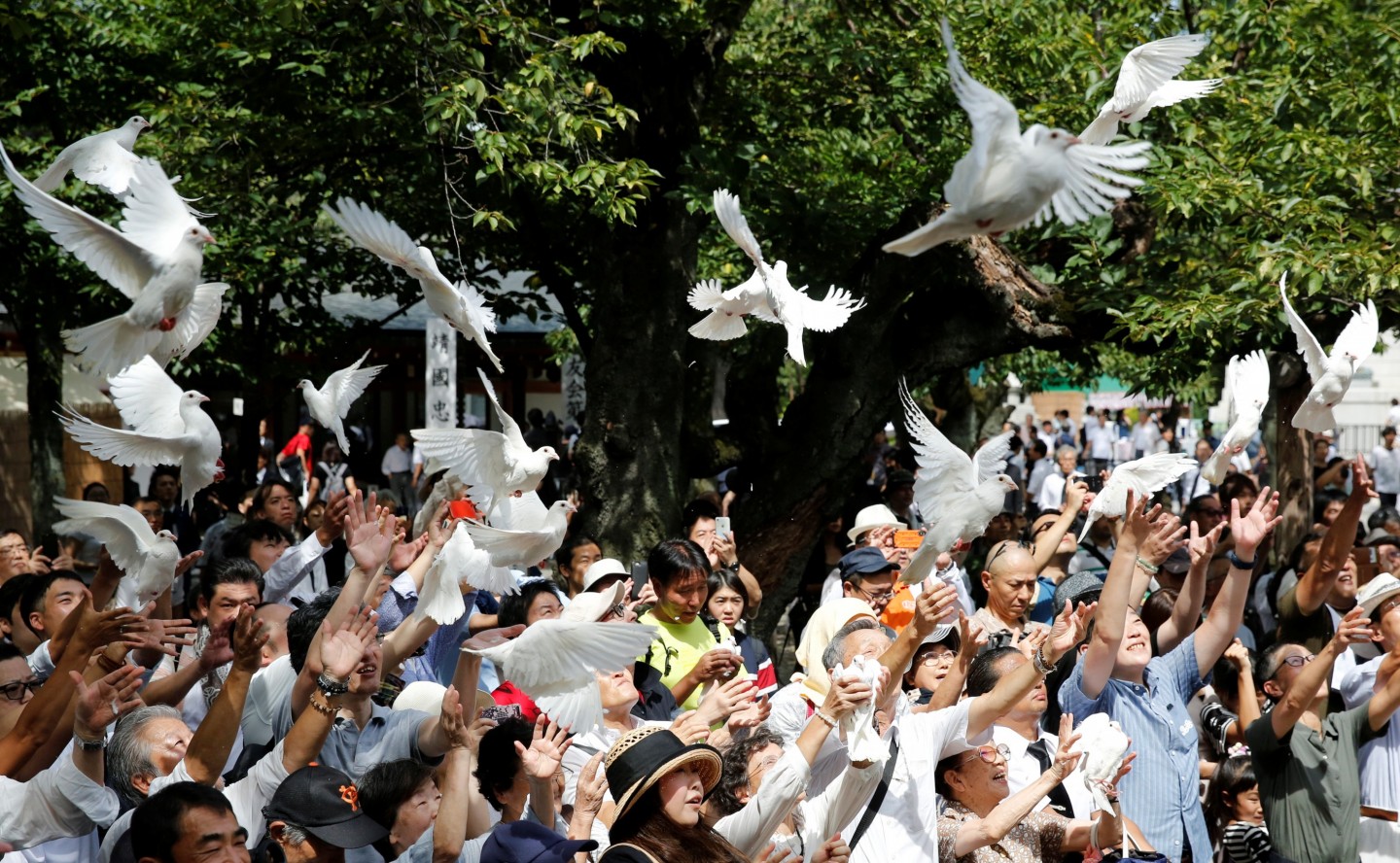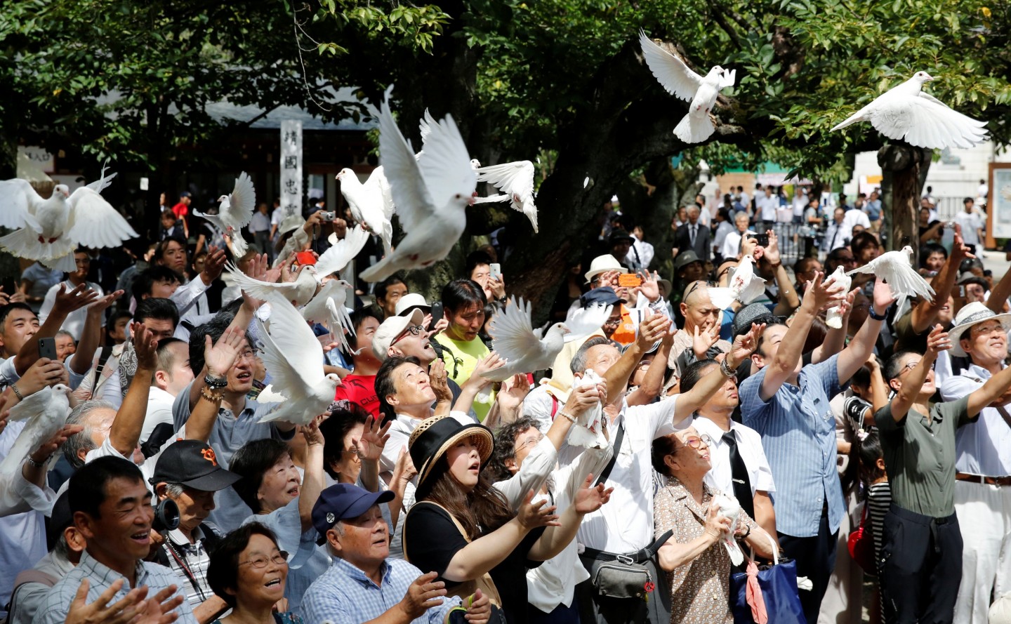 Japānas iedzīvotāji atzīmējuši Otrā pasaules kara beigu 73.gadadienu, gaisā palaižot dūjas, kas ir veltījums bojāgājušajiem.