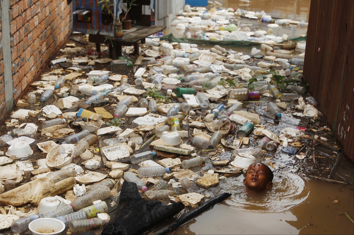 Bērnu ikdiena Kambodžā - peldes atkritumos un beigti lopi