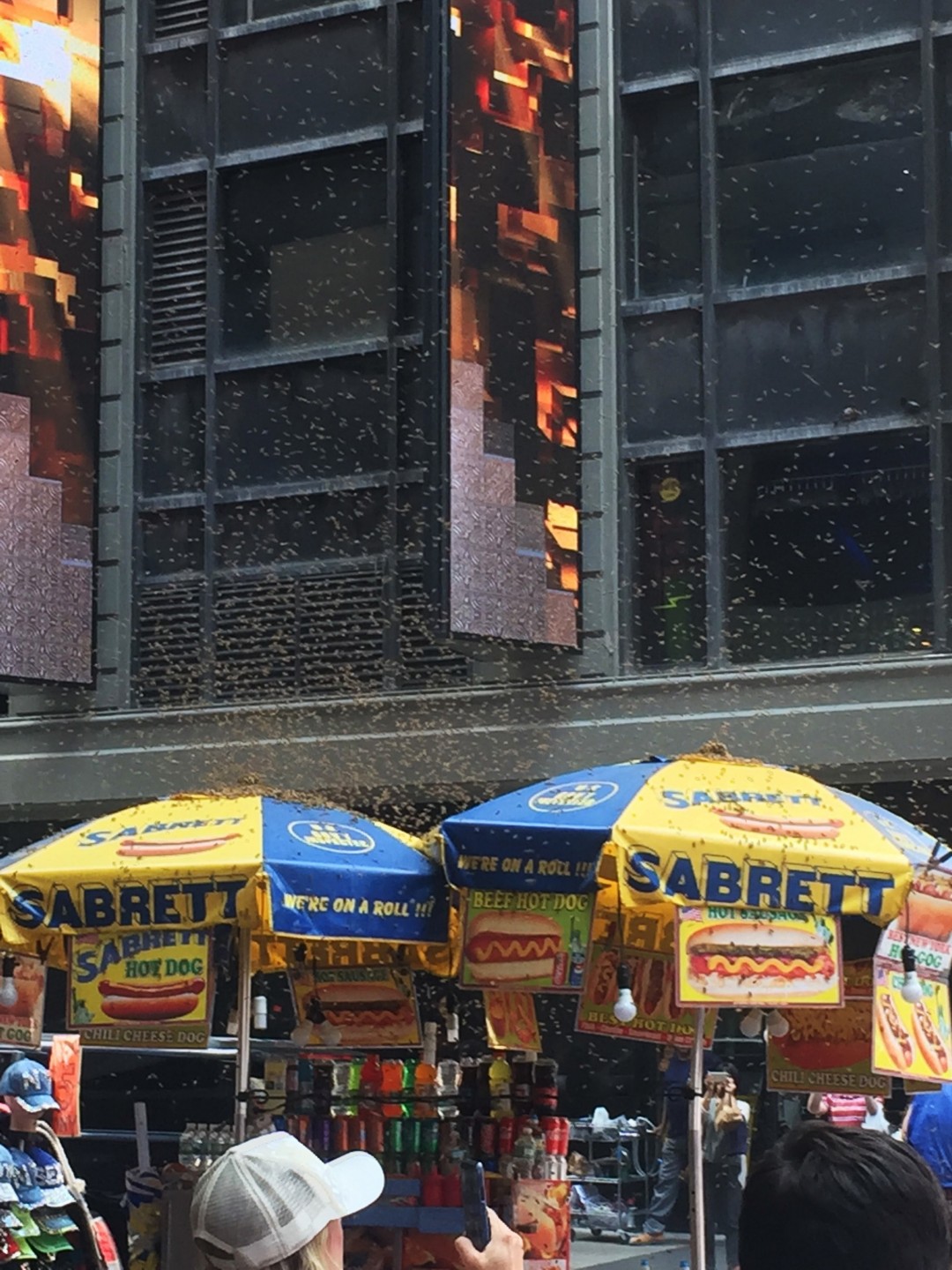 Otrdien Taimskvērā, Ņujorkā, izcēlies haoss, jo bišu bars apsēdis hotdogu stendu, tādejādi liekot slēgt visu ielu. Izrādās, ka teju 25 000 bišu mitruma dēļ bija zaudējušas līdzšinējo dzīvesvietu, tādēļ par pagaidu mītni izvēlējās ēdināšanas stendu.