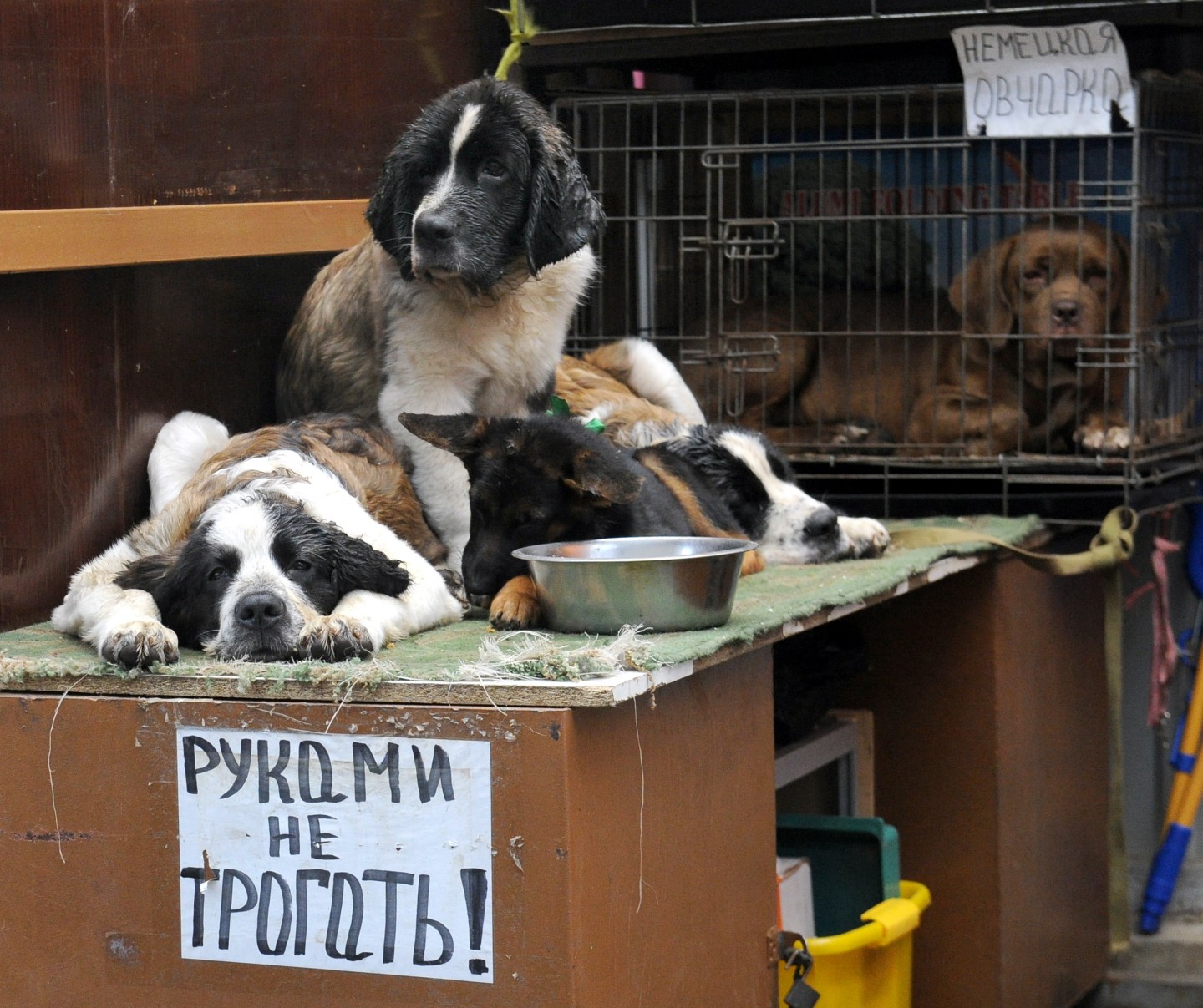 Krievijas galvaspilsētas Maskavas centrā, kādā no tirdzniecības centriem, tiek tirgoti suņi.